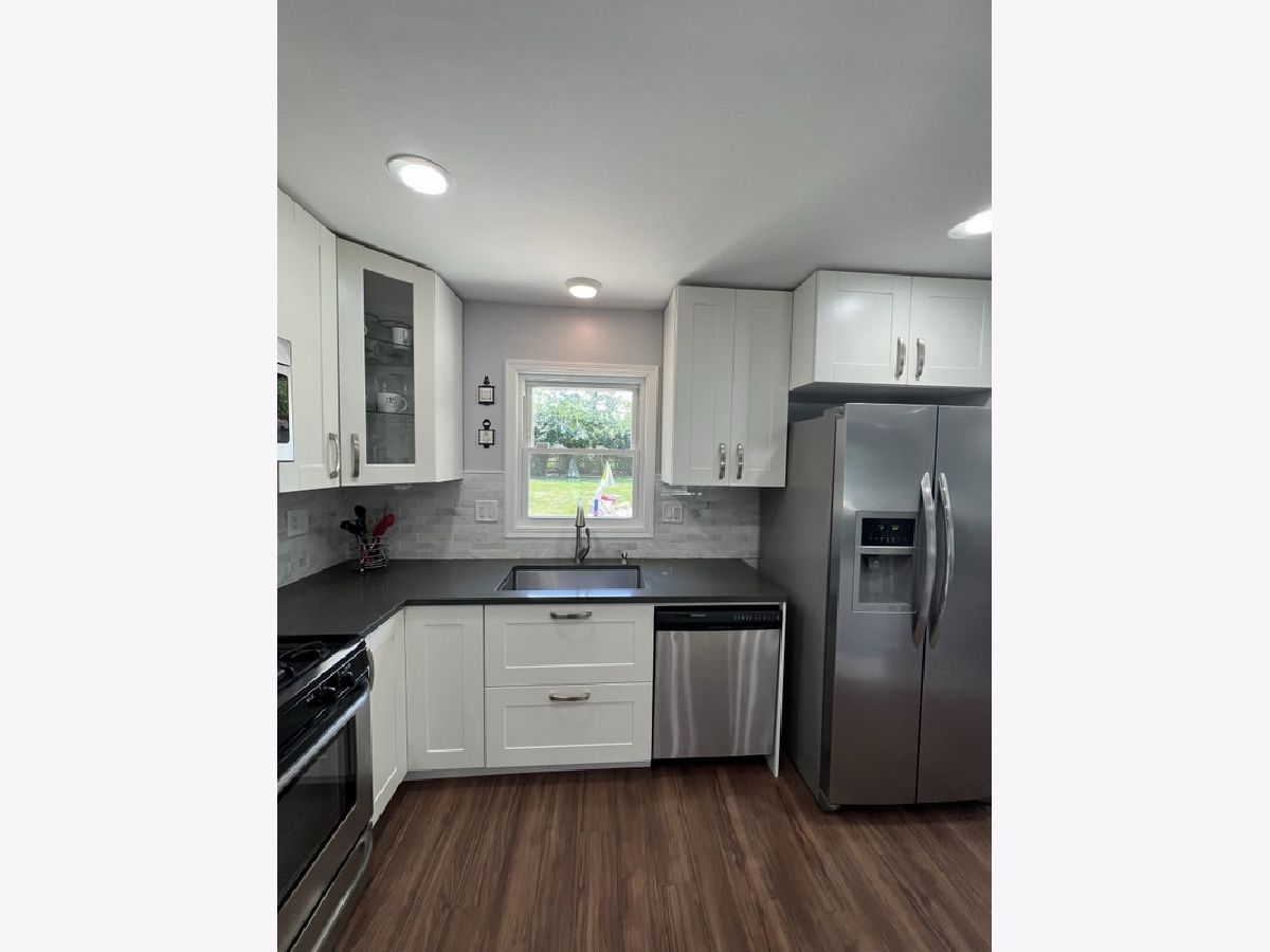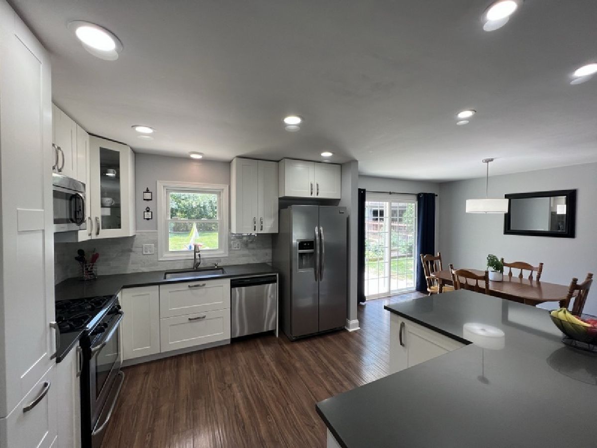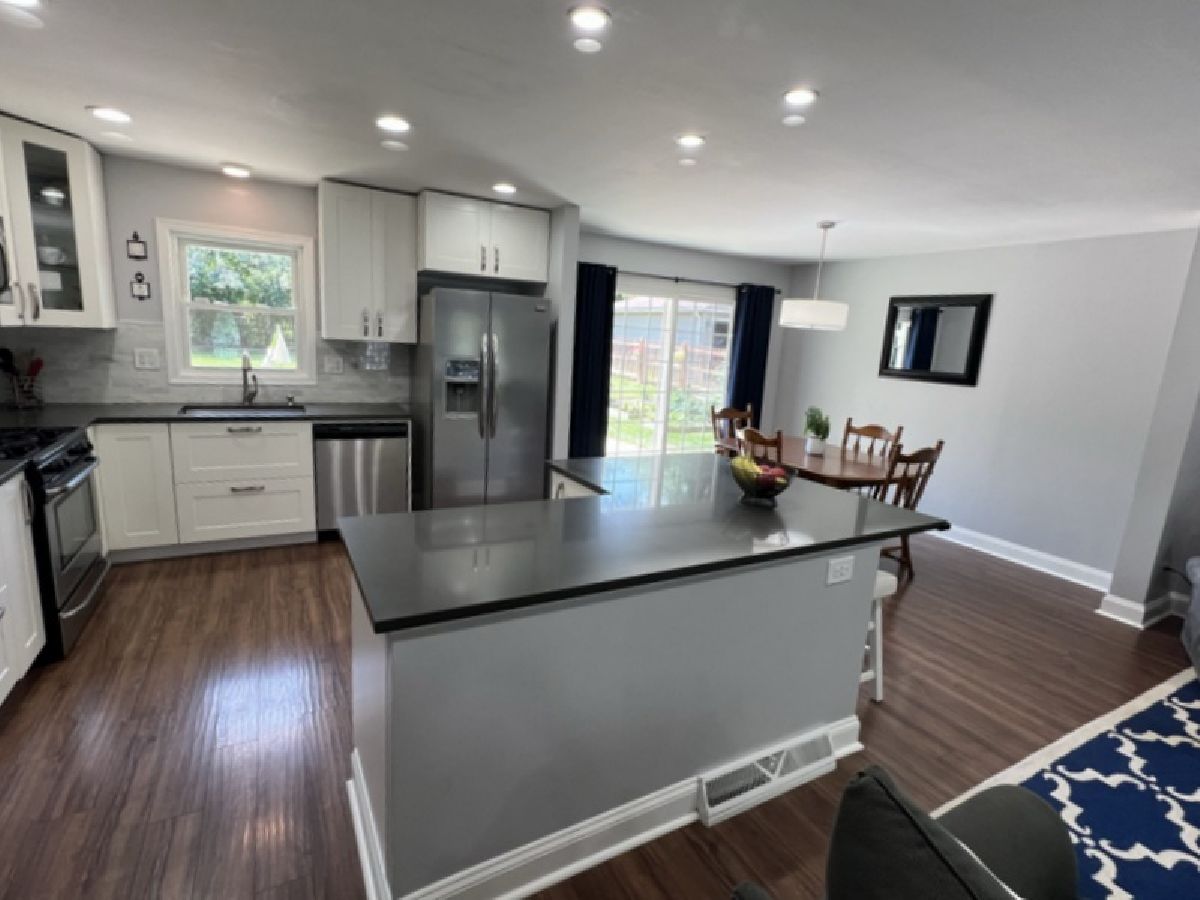Remodeled and Finely Updated 3 BR 2BA split level on a great lot and street in Oak Hills, Burr Ridge. Open concept floor plan for Living Dining & Kitchen. Sharp White Cabinetry with SS appliances, quartz counters and island w/seating. Recessed lighting and new light fixtures. Newer DR sliding door to back yard fun. 3 good size BR's on upper level. Master opens to main bath with double sink, tub & shower. Lower level family room with lots of storage, study desk, updated full bath and updated laundry room. Easy egress to attached 2 car garage. Concrete crawl for extra storage. Large fenced in back yard with big cement patio and garden. Newer windows, siding, doors, GFA/CA, side fence, Most rooms freshly painted. Upper level carpet/floor allowance from seller to complete the home.