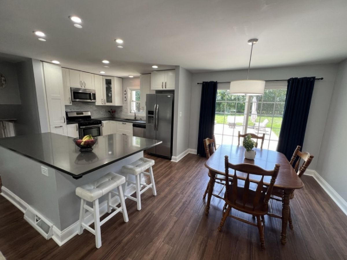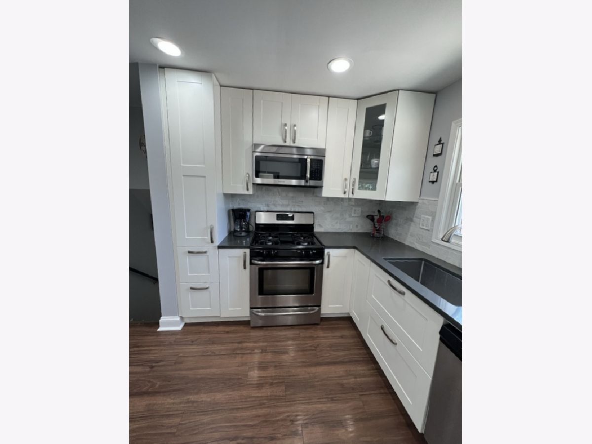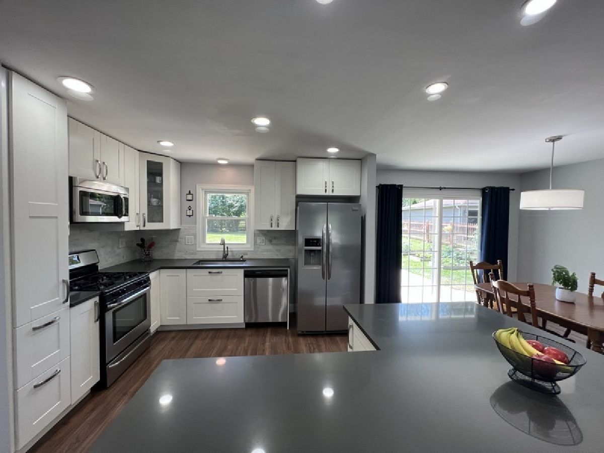 Remodeled and Finely Updated 3 BR 2BA split level on a great lot and street in Oak Hills, Burr Ridge. Open concept floor plan for Living Dining & Kitchen. Sharp White Cabinetry with SS appliances, quartz counters and island w/seating. Recessed lighting and new light fixtures. Newer DR sliding door to back yard fun. 3 good size BR's on upper level. Master opens to main bath with double sink, tub & shower. Lower level family room with lots of storage, study desk, updated full bath and updated laundry room. Easy egress to attached 2 car garage. Concrete crawl for extra storage. Large fenced in back yard with big cement patio and garden. Newer windows, siding, doors, GFA/CA, side fence, Most rooms freshly painted. Upper level carpet/floor allowance from seller to complete the home.