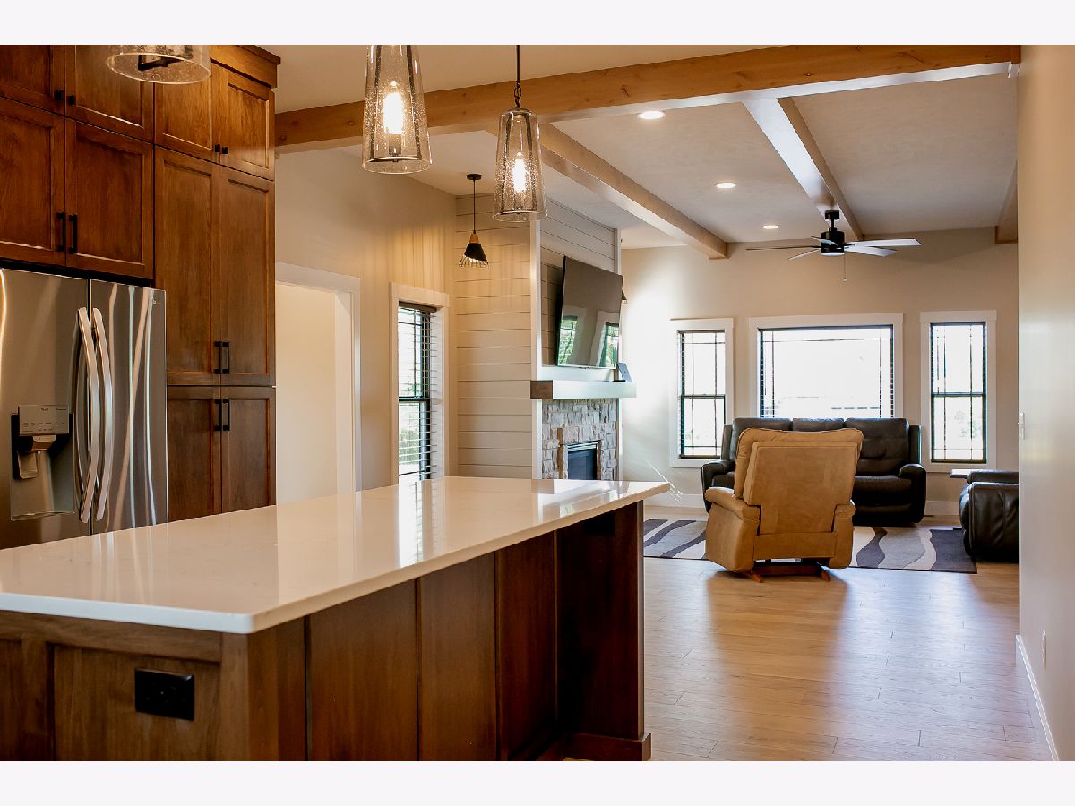 QUALITY & UPGRADES THROUGHOUT this open floor plan home with extravagant Amish made kitchen offering raised island, a multitude of unique features & upgraded appliances, custom lighting & window treatments, solid surface countertops in kitchen & baths, tile showers w/dual heads in master bath, jetted tub, beamed ceiling in living room, open staircase with powder coated handrail, huge space in basement for theatre room, attached 3 car heated garage w/half bath & one of a kind pet grooming shower. 32x50 detached garage with 12' walls. Located on an elevated bluff with beautiful mature oak trees in back yard above El Paso Golf Course. Enjoy privacy & wildlife on a very low traffic culdesac while being conveniently close to shopping & entertainment. Exterior lighting in soffits on a timer. Handicap accessible doors.