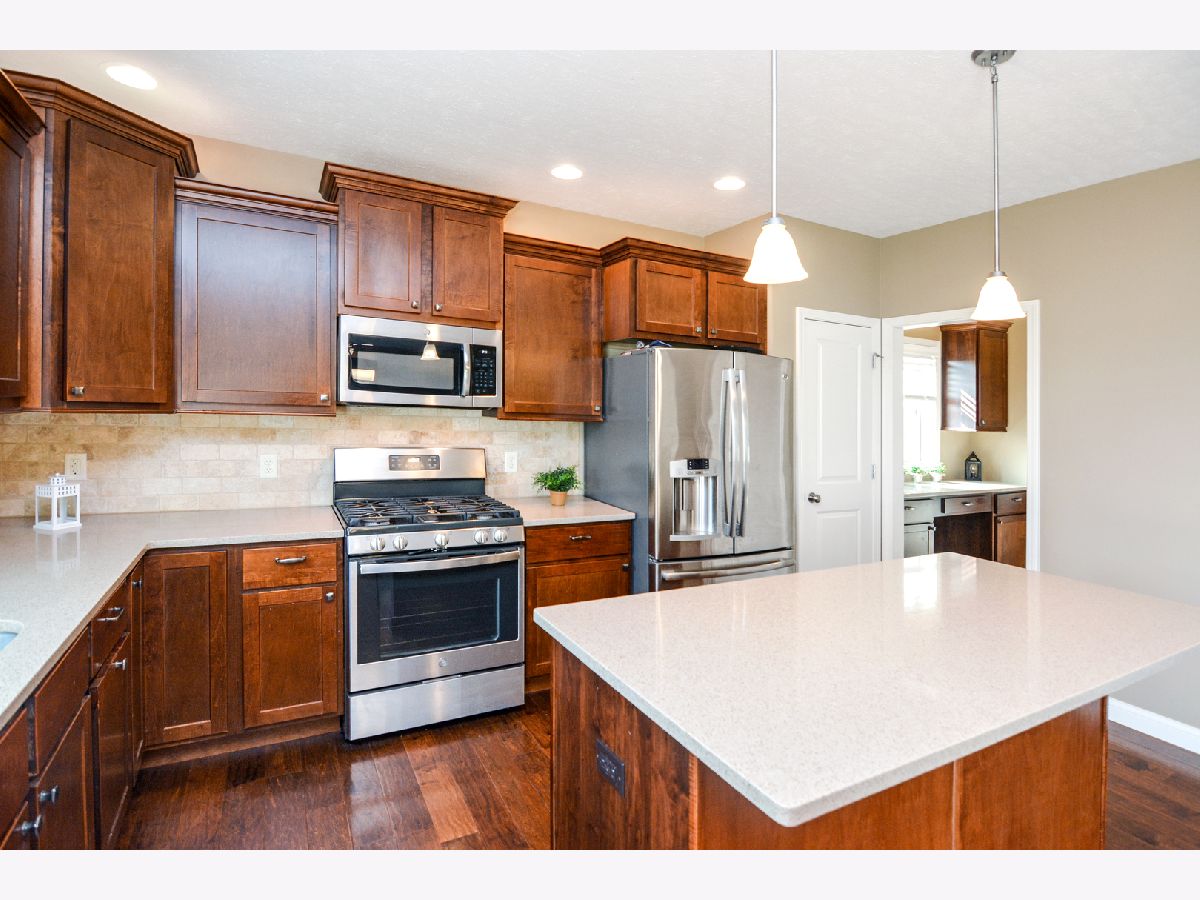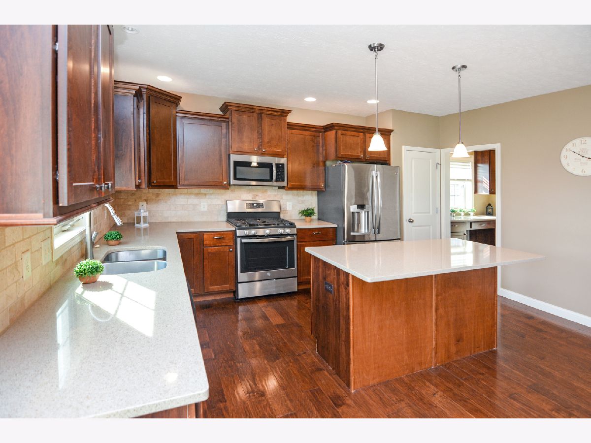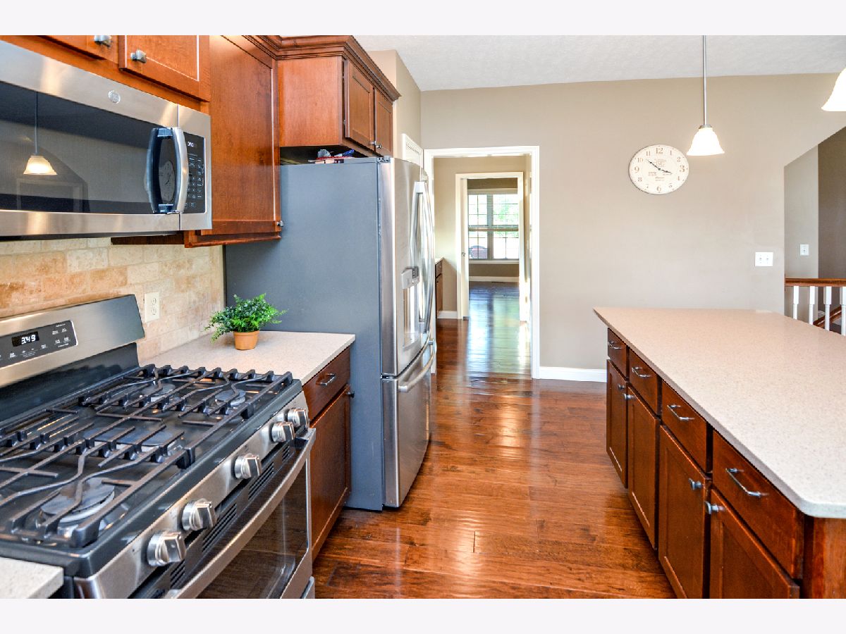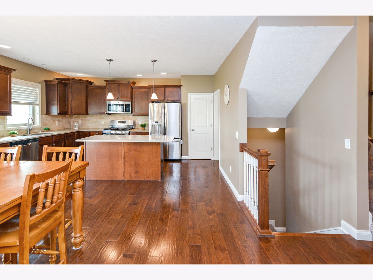 Harvest Pointe 5 bedroom, 3.5 bath gem with a fenced backyard (no backyard neighbors) and a 3-car garage! This beautiful 2-story offers tremendous upgrades including wood flooring throughout most of the main level! Spacious kitchen w/ ample cabinetry, a large island, stainless appliances, Quartz counters, a pantry closet AND a butler's pantry leading to the Flex room (potential to be an office or formal dining! The master suite is located on the 2nd floor and includes a large WIC and en suite bath w/ jetted tub, separate shower & double vanity. Recently finished basement with a huge family room, 5th bedroom & full bath! The beautiful fenced backyard includes a sprawling stamped patio! 1st floor laundry. A must see home that is priced to sell in a fantastic neighborhood!