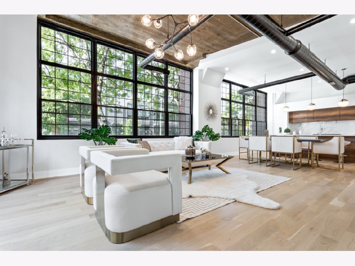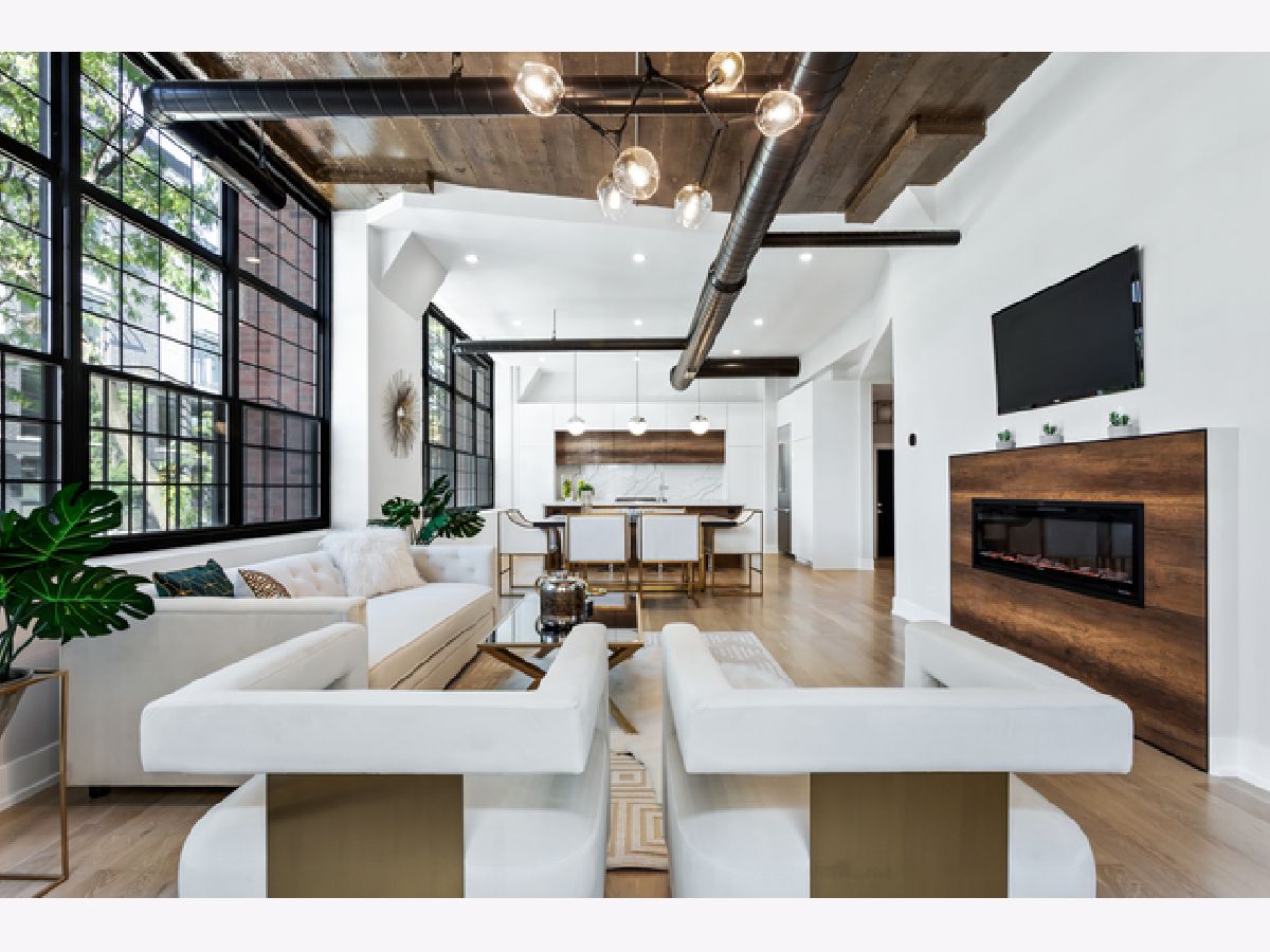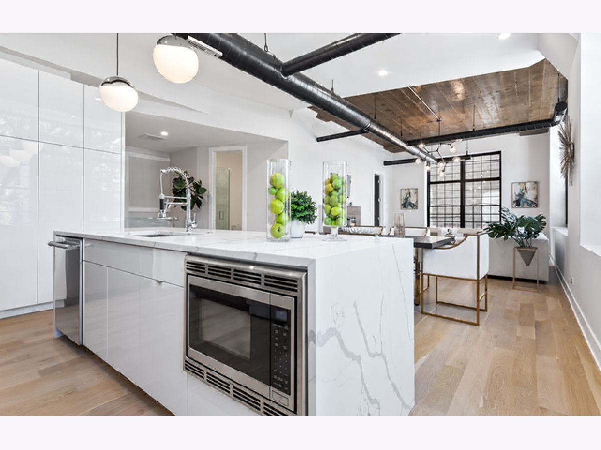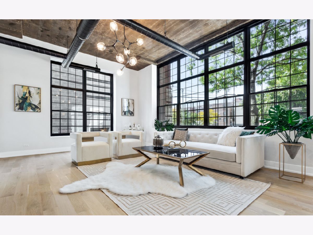 You don't want to miss this fully gutted 3 bed, 3 bath duplex concrete loft in the heart of the West Loop. This modern condo features industrial-style exposed ductwork, tall ceilings, and cutting-edge updates throughout the entire apartment. The white, quartz countertops and waterfall-style island in the kitchen are stunning and perfectly match the quartz backsplash; all are complemented by custom large, white cabinets, which provide ample storage with Thermador appliances throughout. Hardwood floors throughout perfectly match fresh wooden accents on the fireplace, island and lower cabinets in the kitchen. Contemporary light fixtures make a statement in the living room, kitchen, and bedrooms. The master bedroom includes a large custom closets with built-ins and an en-suite master bathroom, which is nothing short of elegant. It includes a double vanity, a glass shower with modern, white tile, a shower mirror, and a separate soaking tub. The second bedroom has a beautiful chandelier, and built-in shelving in the closet. The second bathroom has its touch of artistry, with mosaic tiles and built-in shelves in the glass shower. A small foyer area near the front door provides white cabinets for storage and a wooden coat rack and bench. The third bedroom provides two closets with built-in shelves. The third bathroom includes large, white, subway tiles in the glass shower. There are even extra closets in the hallway, one with built-in shelves, and the other with a washer, dryer, and sink. Car Deeded Parking Space in Building Garage available for additional $35,000. This unit's unique, impeccable beauty makes it stand out from the competition! The building has public rooftop deck with grills and amazing skyline views of the city! The West Loop is steps from Skinner Park and elementary, public transit, and lots of dining, shopping, entertainment.