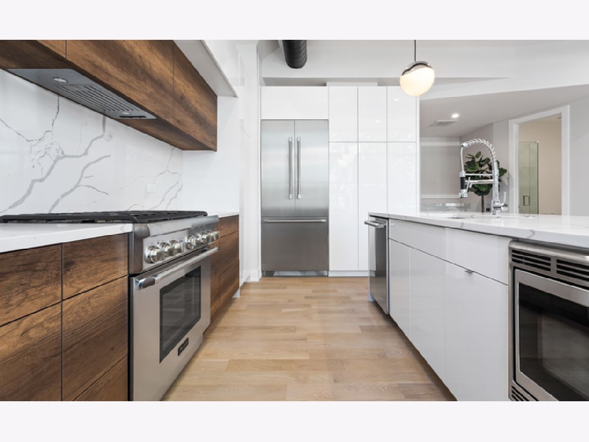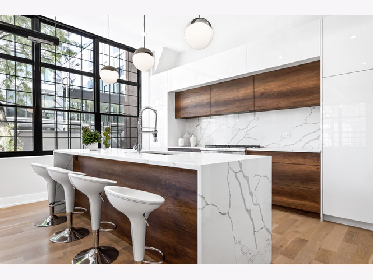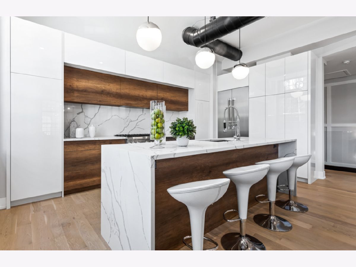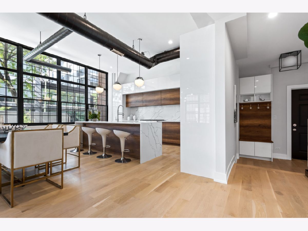 You don't want to miss this fully gutted 3 bed, 3 bath duplex concrete loft in the heart of the West Loop. This modern condo features industrial-style exposed ductwork, tall ceilings, and cutting-edge updates throughout the entire apartment. The white, quartz countertops and waterfall-style island in the kitchen are stunning and perfectly match the quartz backsplash; all are complemented by custom large, white cabinets, which provide ample storage with Thermador appliances throughout. Hardwood floors throughout perfectly match fresh wooden accents on the fireplace, island and lower cabinets in the kitchen. Contemporary light fixtures make a statement in the living room, kitchen, and bedrooms. The master bedroom includes a large custom closets with built-ins and an en-suite master bathroom, which is nothing short of elegant. It includes a double vanity, a glass shower with modern, white tile, a shower mirror, and a separate soaking tub. The second bedroom has a beautiful chandelier, and built-in shelving in the closet. The second bathroom has its touch of artistry, with mosaic tiles and built-in shelves in the glass shower. A small foyer area near the front door provides white cabinets for storage and a wooden coat rack and bench. The third bedroom provides two closets with built-in shelves. The third bathroom includes large, white, subway tiles in the glass shower. There are even extra closets in the hallway, one with built-in shelves, and the other with a washer, dryer, and sink. Car Deeded Parking Space in Building Garage available for additional $35,000. This unit's unique, impeccable beauty makes it stand out from the competition! The building has public rooftop deck with grills and amazing skyline views of the city! The West Loop is steps from Skinner Park and elementary, public transit, and lots of dining, shopping, entertainment.