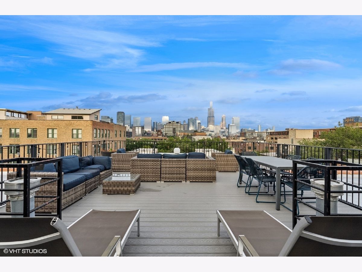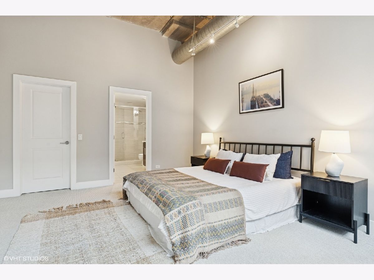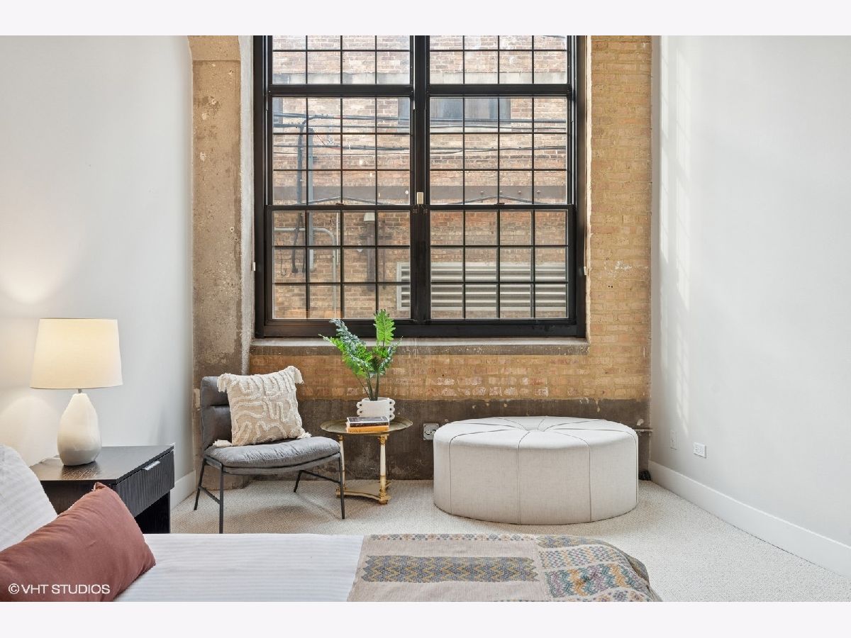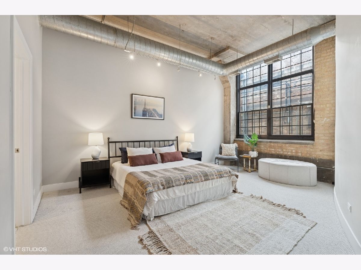 Oversized 2/2 concrete loft in the heart of the West Loop. Dramatic oversized windows, exposed brick and 12 ft ceilings make this 2 bed, 2 bath unit truly unique. The open concept kitchen is perfect for entertaining with 42 inch Espresso cabinets, quartz countertops, ss appliances and designated dining/living area. Fully enclosed primary suite with oversized walk-in closet, custom blinds and en-suite bath with quartz counters and custom frameless shower door. Fully enclosed guest bedroom, hallway bathroom and laundry room with ample storage and side-by-side w/d. Common roof deck with Trex decking & bike room. INDOOR HEATED PARKING INCLUDED IN THE PRICE! walking distance to shops, restaurants, parks and top-rated Skinner Elementary School.