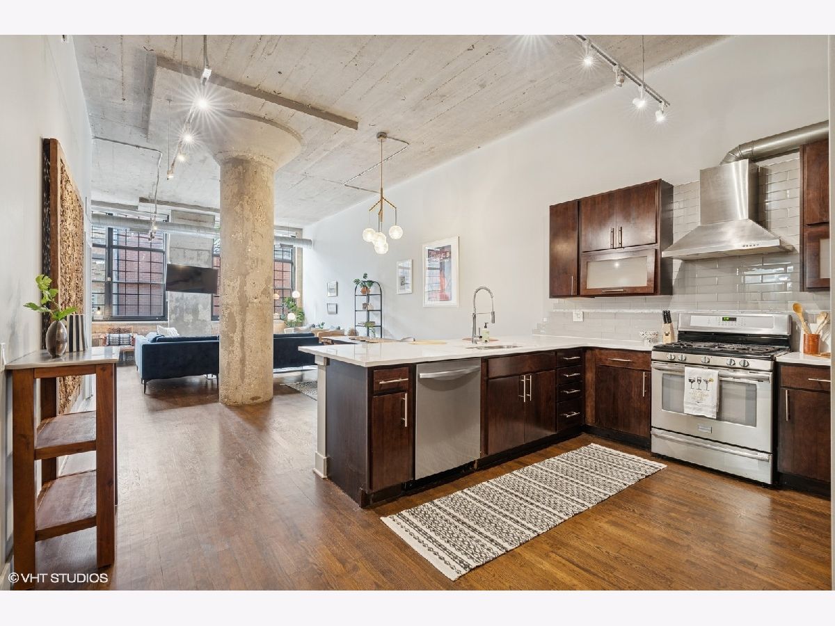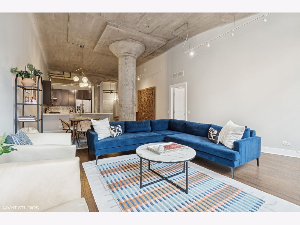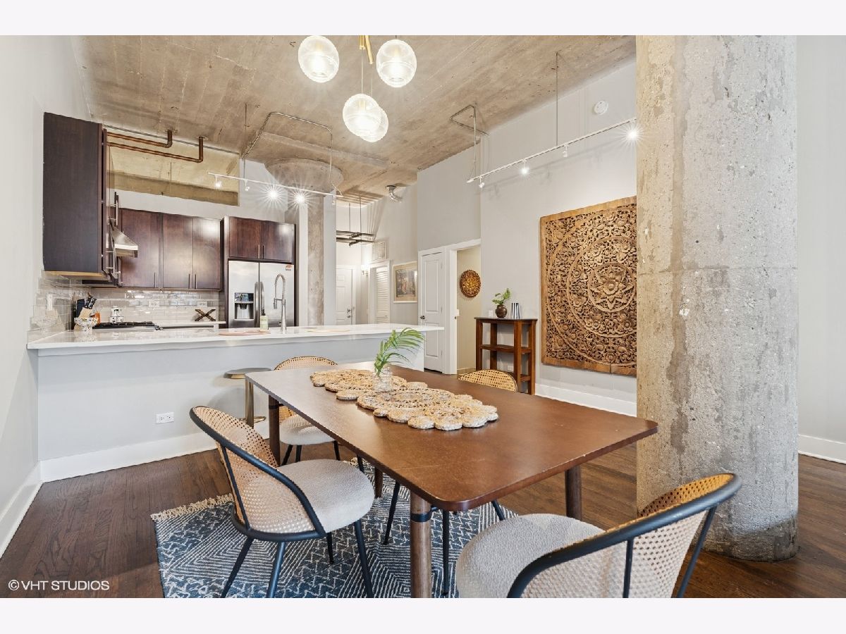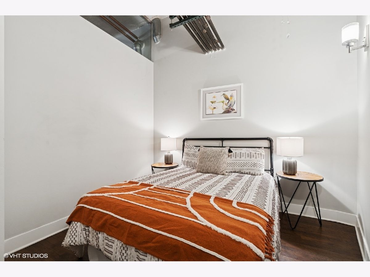 Oversized 2/2 concrete loft in the heart of the West Loop. Dramatic oversized windows, exposed brick and 12 ft ceilings make this 2 bed, 2 bath unit truly unique. The open concept kitchen is perfect for entertaining with 42 inch Espresso cabinets, quartz countertops, ss appliances and designated dining/living area. Fully enclosed primary suite with oversized walk-in closet, custom blinds and en-suite bath with quartz counters and custom frameless shower door. Fully enclosed guest bedroom, hallway bathroom and laundry room with ample storage and side-by-side w/d. Common roof deck with Trex decking & bike room. INDOOR HEATED PARKING INCLUDED IN THE PRICE! walking distance to shops, restaurants, parks and top-rated Skinner Elementary School.