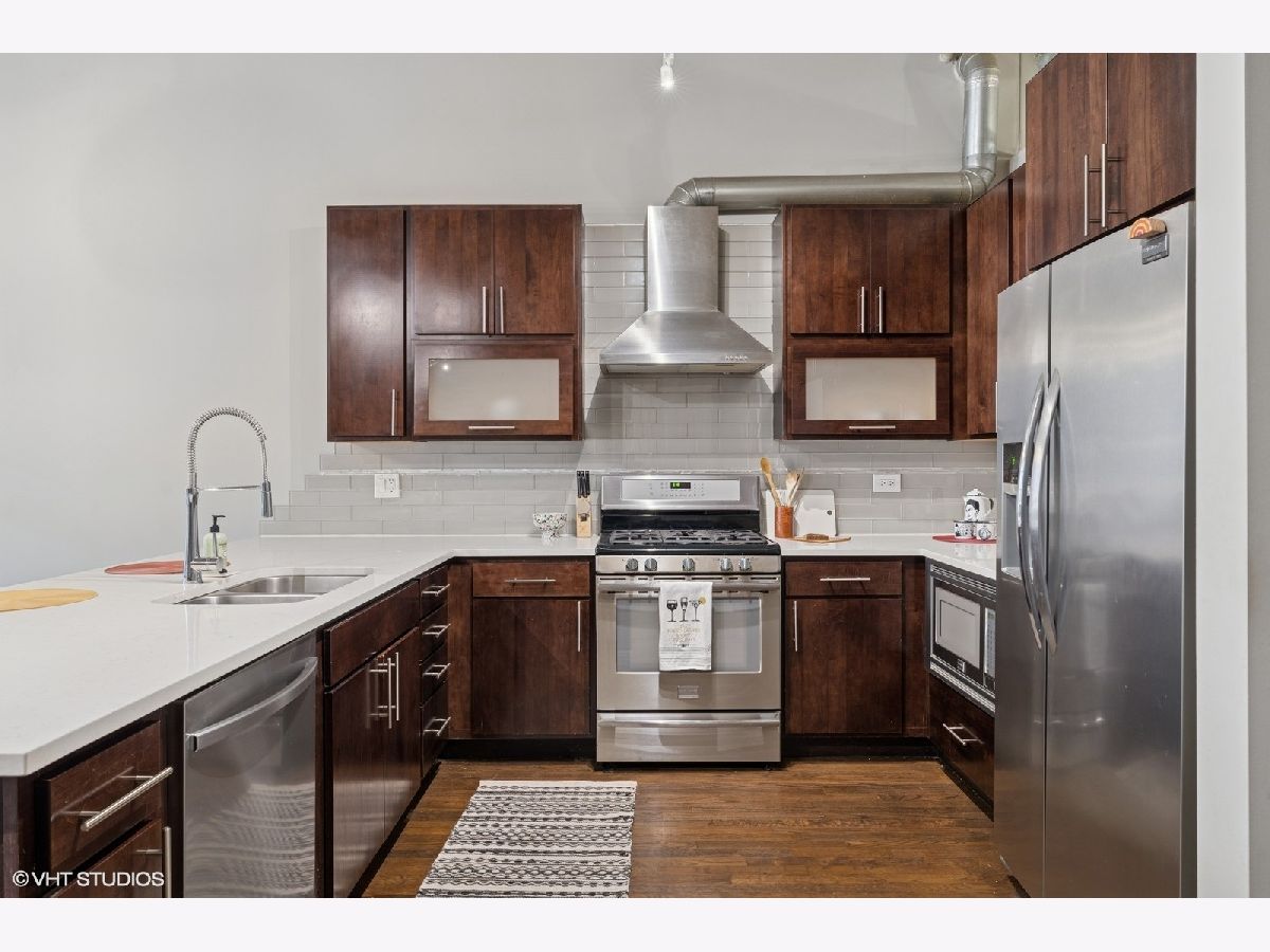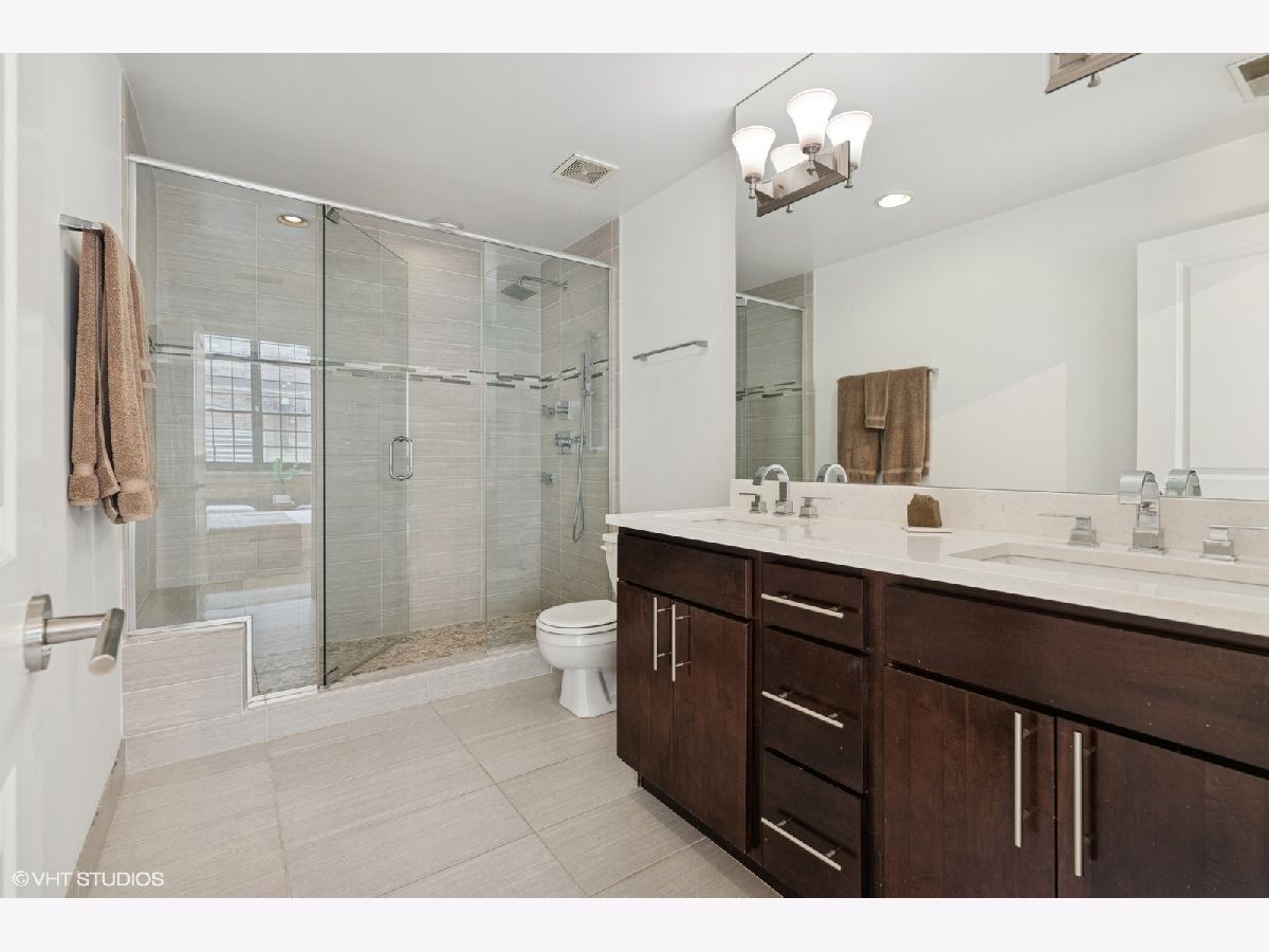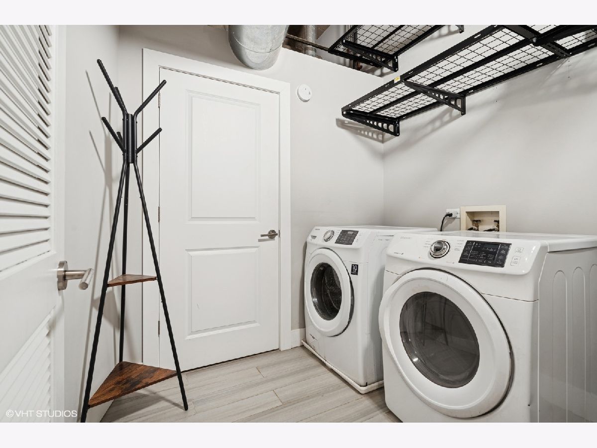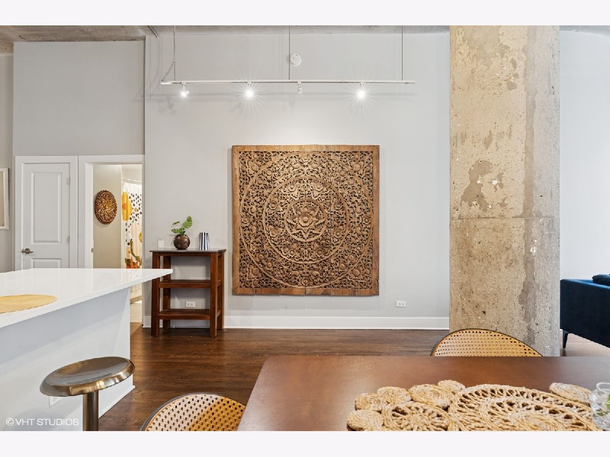 Oversized 2/2 concrete loft in the heart of the West Loop. Dramatic oversized windows, exposed brick and 12 ft ceilings make this 2 bed, 2 bath unit truly unique. The open concept kitchen is perfect for entertaining with 42 inch Espresso cabinets, quartz countertops, ss appliances and designated dining/living area. Fully enclosed primary suite with oversized walk-in closet, custom blinds and en-suite bath with quartz counters and custom frameless shower door. Fully enclosed guest bedroom, hallway bathroom and laundry room with ample storage and side-by-side w/d. Common roof deck with Trex decking & bike room. INDOOR HEATED PARKING INCLUDED IN THE PRICE! walking distance to shops, restaurants, parks and top-rated Skinner Elementary School.