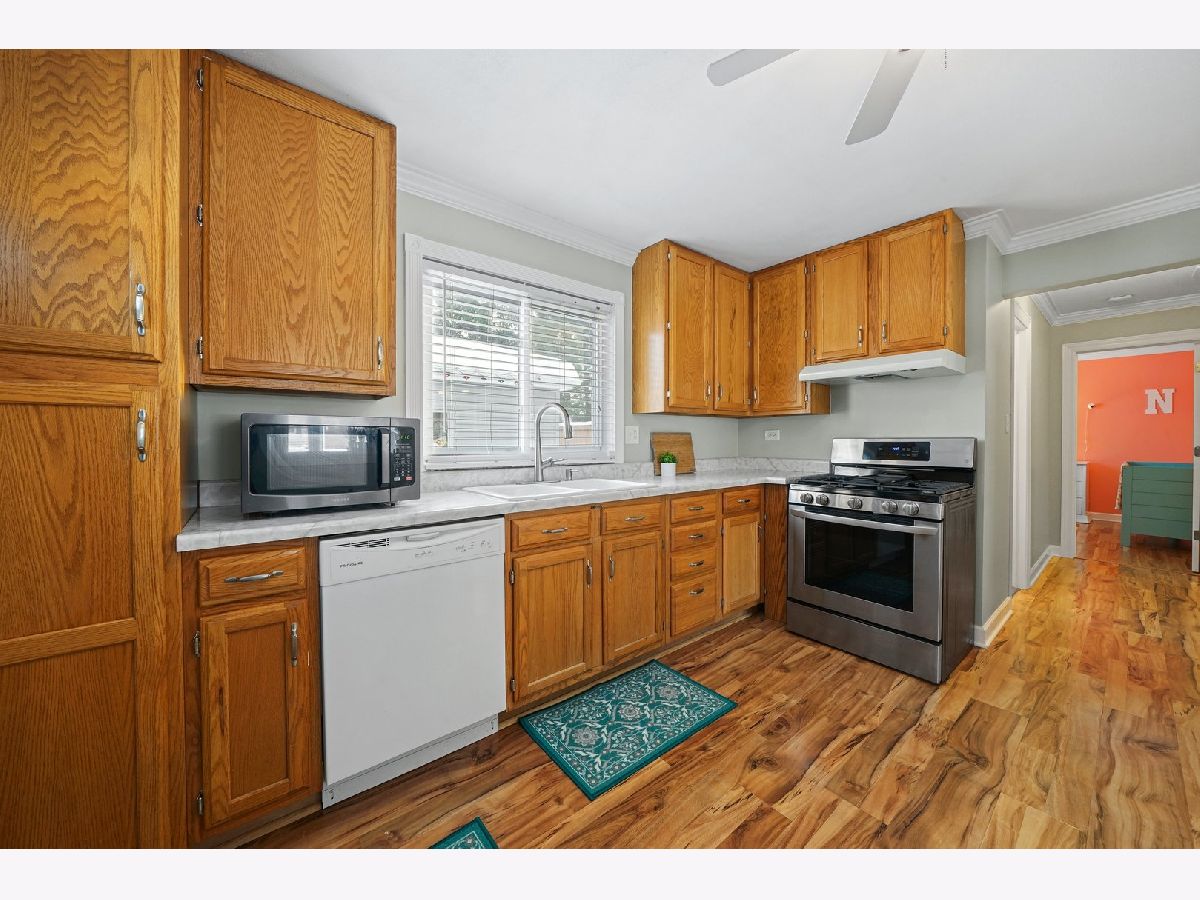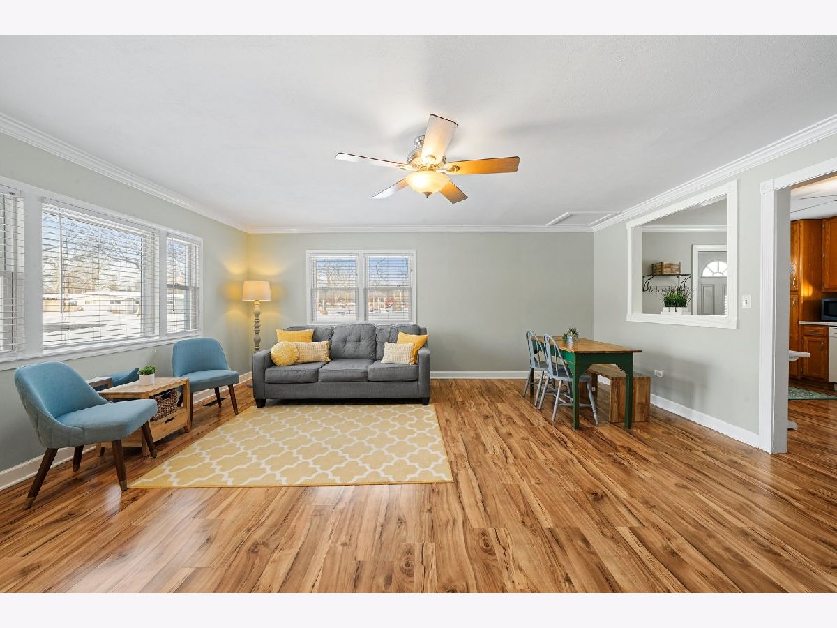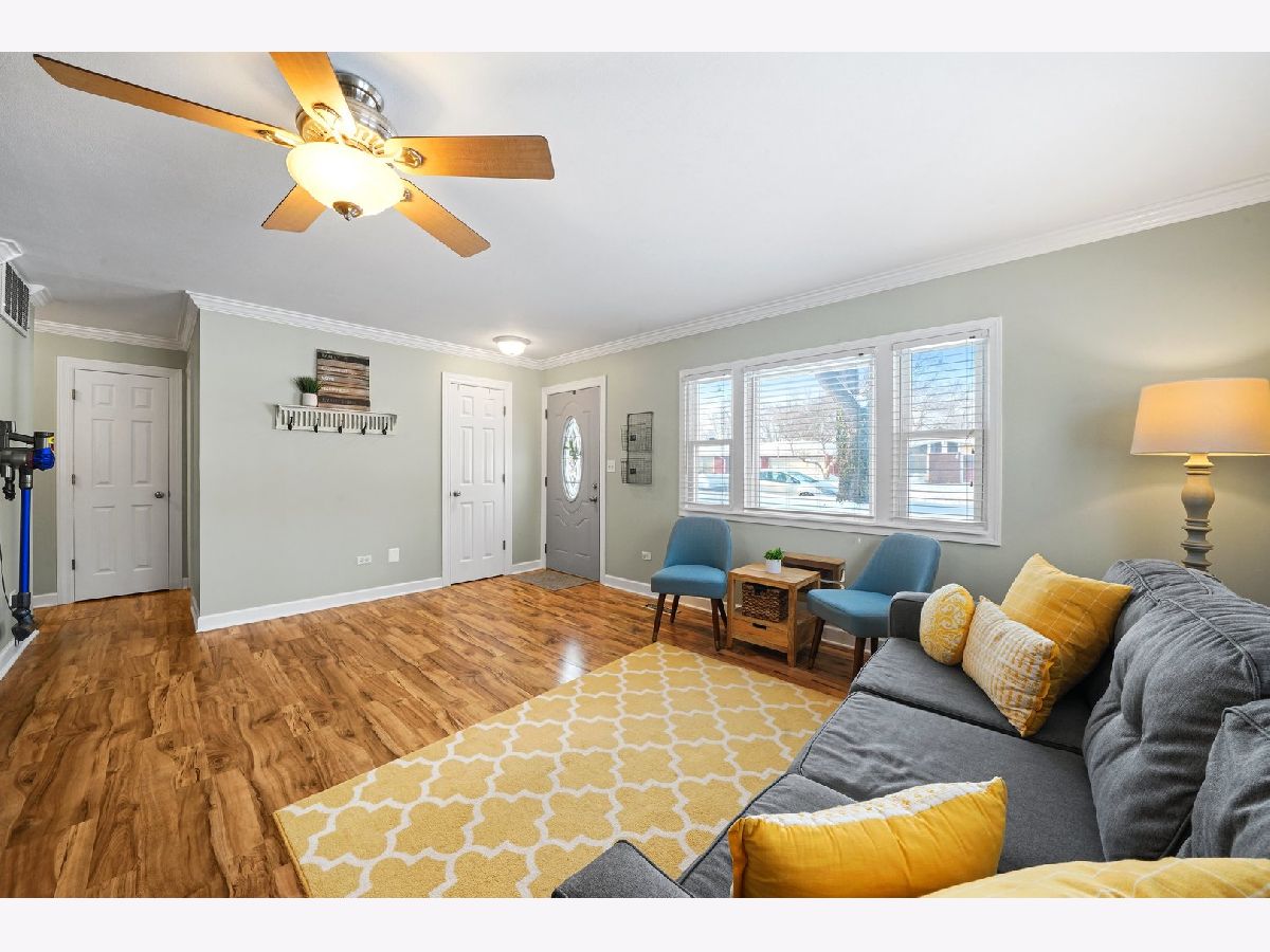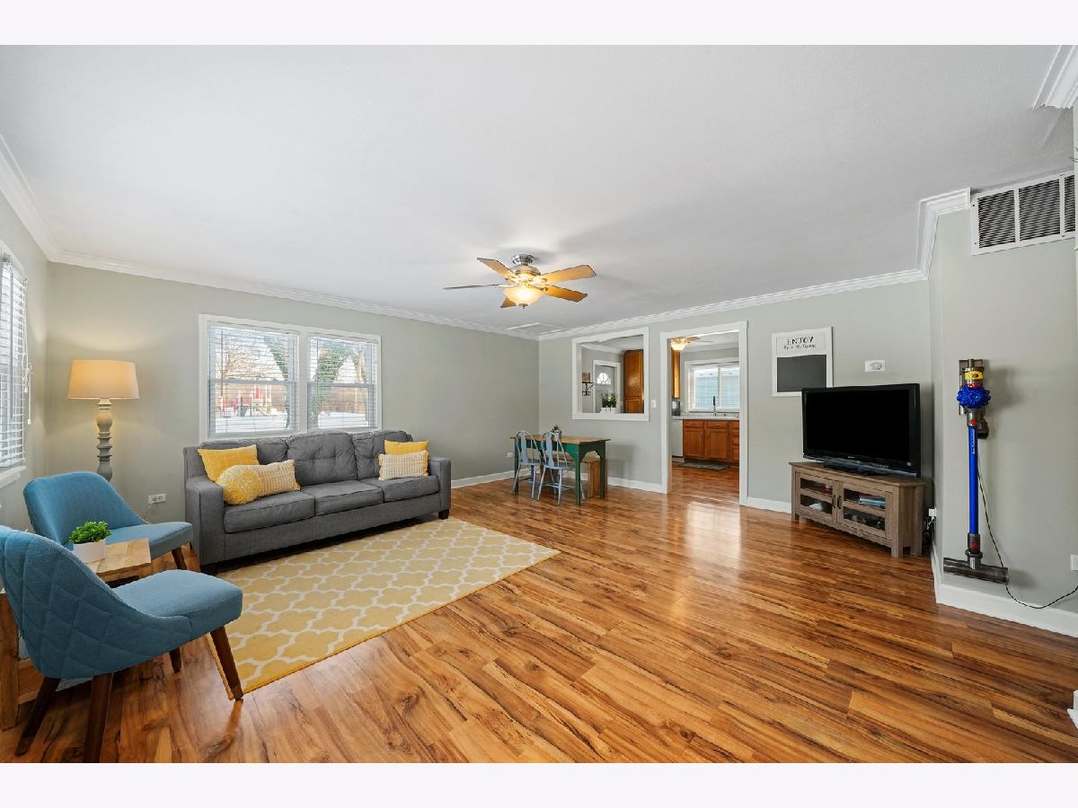 Cozy and updated ranch in fantastic Wheeling location within walking distance to Heritage Park! This 3 bed, 1 bath, deceivingly spacious home leaves you nothing to do but move right in with gleaming wood laminate floors throughout, neutral paint, and TONS of natural light! Large living room with picture window is combined with dining room and seamlessly flows into kitchen. Kitchen has great storage with 42" cabinets, new gas range, window above sink with great view of back yard, and convenient access to back patio through side door! All three bedrooms are on one side of the house with easy access to full bath AND main level laundry! 1.5-car detached garage is heated and perfect for the handyman and the entertainer alike. Yard is fully fenced with large patio. Neighborhood park is right outside your backdoor! Minutes to I-294, Metra Train, Twain Elementary School, downtown Wheeling, shopping, dining, and more! Nest thermostat will stay with the home! New: Hot water heater in 2017, and whole house humidifier in 2021! Newer: roof, siding, windows, insulation, soffits, gutters, and flooring!
