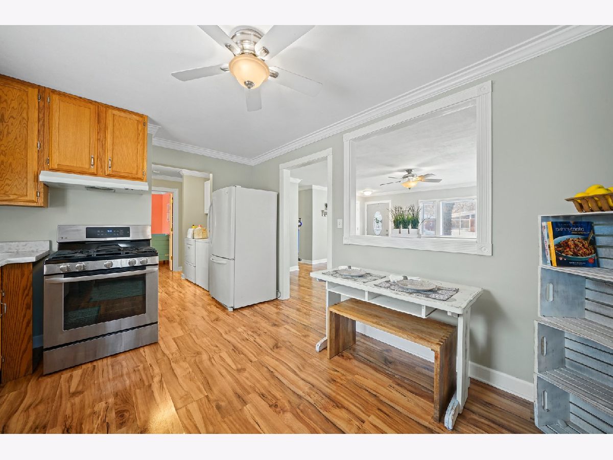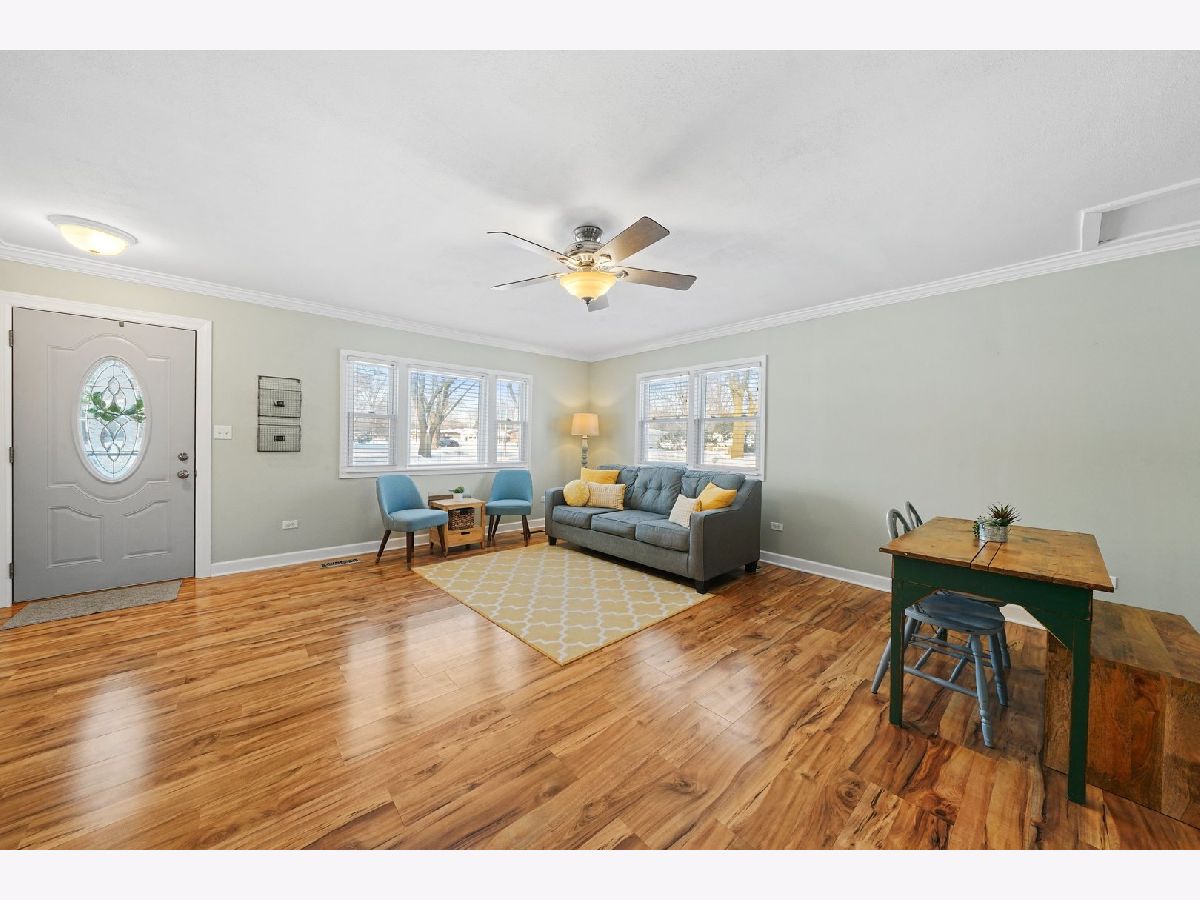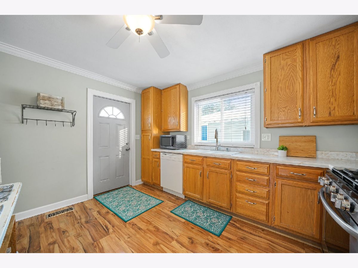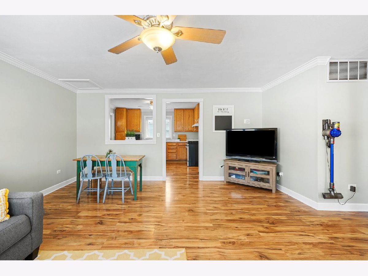 Cozy and updated ranch in fantastic Wheeling location within walking distance to Heritage Park! This 3 bed, 1 bath, deceivingly spacious home leaves you nothing to do but move right in with gleaming wood laminate floors throughout, neutral paint, and TONS of natural light! Large living room with picture window is combined with dining room and seamlessly flows into kitchen. Kitchen has great storage with 42" cabinets, new gas range, window above sink with great view of back yard, and convenient access to back patio through side door! All three bedrooms are on one side of the house with easy access to full bath AND main level laundry! 1.5-car detached garage is heated and perfect for the handyman and the entertainer alike. Yard is fully fenced with large patio. Neighborhood park is right outside your backdoor! Minutes to I-294, Metra Train, Twain Elementary School, downtown Wheeling, shopping, dining, and more! Nest thermostat will stay with the home! New: Hot water heater in 2017, and whole house humidifier in 2021! Newer: roof, siding, windows, insulation, soffits, gutters, and flooring!