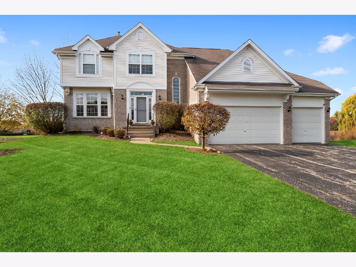 Imagine living in home located on a cul-de-sac with an unobstructed view of acres of nature preserve conservancy and tranquil ponds. These views can be enjoyed from your back yard patio and from a majority of the rooms in your home. The exterior facade has brick accents, a gabled roof, and a spacious three-car garage that provides for a stately look. The large foyer is inviting and allows you to take an immediate glimpse of the views. A two-story cathedral ceiling provides volume and a sense of spaciousness in the family room and the fireplace adds to the ambiance on winter nights. The eat in kitchen with white cabinetry has a breakfast bar which has a sliding glass door that walks out onto the patio where you can enjoy the private outdoor space. The dining room and living room feature hardwood floors and are perfect for entertaining. The second floor features a master suite with a tray ceiling and two closets, one of them walk-in. The master bathroom has a vanity with dual sinks, a soaker tub and separate shower with clear glass enclosure. Down the hall there are two additional bedrooms and a bathroom. There is a loft that overlooks the family room and is currently used as an office. However, its layout and window would allow for a future 4th bedroom. A laundry room is conveniently located on the second floor. The Full English basement is currently unfinished and perfect for storage but with the look-out windows, it has the potential for a great future finished space. The attic above the garage also provides for additional storage. The home is in walking distance to Fox Trail Park and is truly the best lot in the Riverwalk subdivision. Don't miss it!