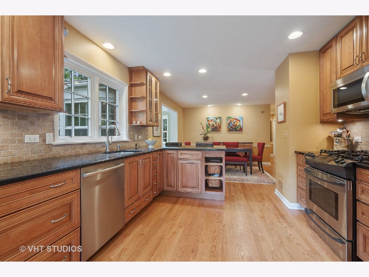 Located on one of East Northbrook's most quintessential, picturesque semi-private streets this 3 bd/2.5bth home is full of charm with many improvements and in MINT condition. Stepping inside you are welcomed by the spacious open floor plan from the large living room with it's built ins and cozy wood burning fireplace to the kitchen and dining area where you will find an abundance of cabinet storage, a pantry and a lazy susan. A peninsula eating bar and a breakfast nook with window seat and surrounding bay window enhance the utility of the kitchen area. A large dining area for entertaining with a built in dining buffet and wine refrigerator. A perfect sun room off the dining area surrounded by windows and oversized sliders makes this a favorite for relaxation. Two very spacious bedrooms and a shared bathroom with double vanity complete the main level. In 2011 a main suite was added to the second level providing for a large home office and an additional bedroom with a walk in closet and a gorgeous main bathroom with frameless shower and radiant heated floor. Large picture frame windows throughout the home bring in lots of natural light and views of nature.Basement level includes a full recreation room, half bathroom, large utility room, carpeted closet, and an extra storage room. Step outside to the serene backyard with gorgeous blue stone patio and walkways, and lush landscaping. Two car attached garage. Preferred central location with its award winning District 28 schools. Just minutes from downtown, the Village Green, Metra Station, I-94 Expressway and many other conveniences. You will love living here.