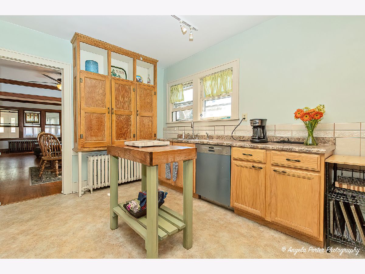 Vintage style ranch home in downtown Crystal Lake area. Walk to train and Veterans Park and the Prairie Biking Trails. Original hardwood floors, plaster walls, and woodwork bring back the memories of how homes were about 100 years ago. You'll love the sunny enclosed porch for watching the peaceful setting or curling up with a good book. How about the spacious living room and dining room? The kitchen features some original cabinets, a walk-in pantry, a stainless-steel sink and newer appliances. Redone bath w/ceramic tiles & pedestal sink. Walk up attic for future expansion. Newer front door, exterior recently painted. Lg fenced yard w/ many fruit trees. There is also a detached 2-car garage and extra parking area for extra cars. You'll love the spacious outdoor patio that is ideal for entertaining your guests. The unfinished basement could be finished for extra living space. Quick closing is possible.