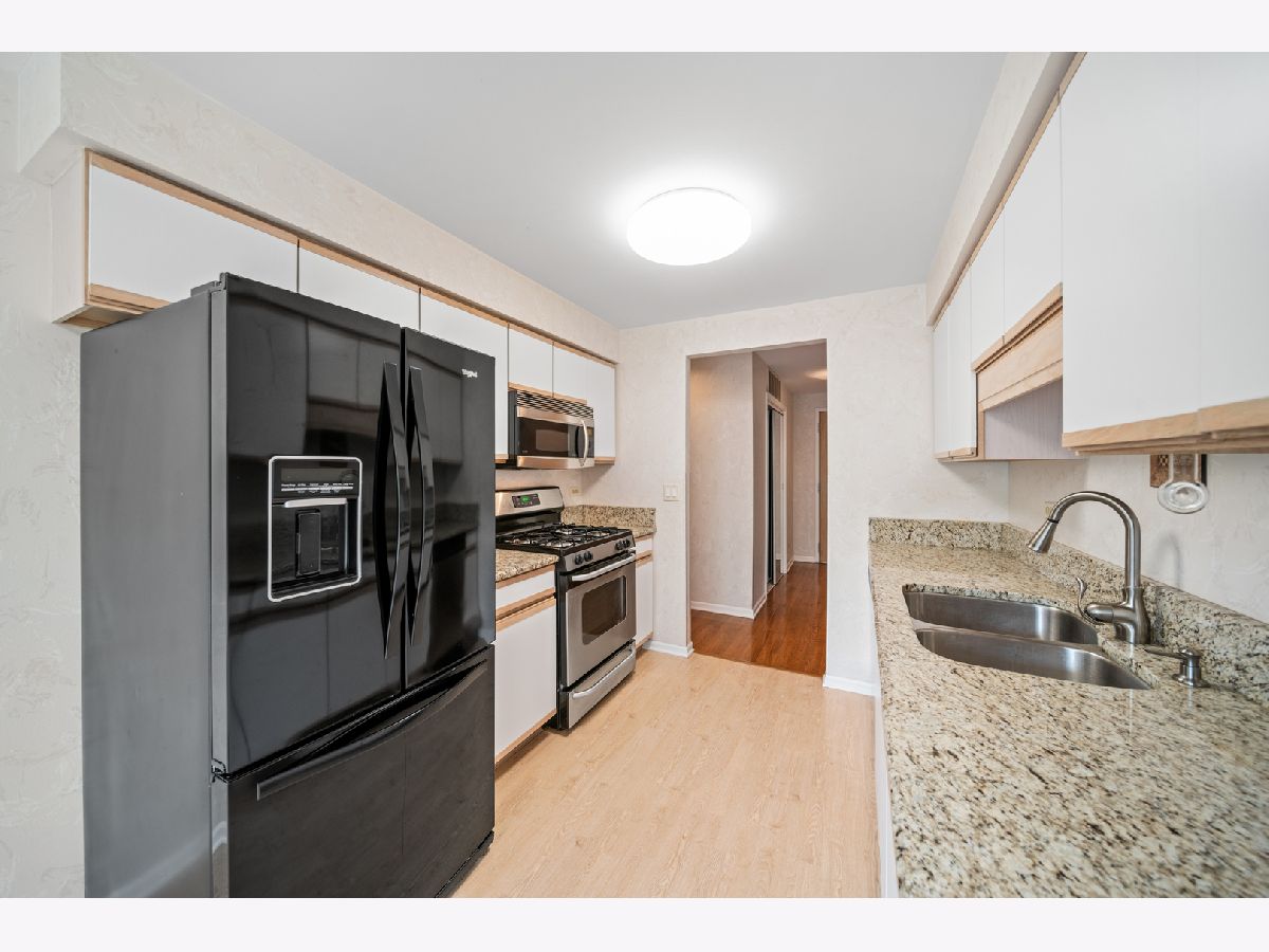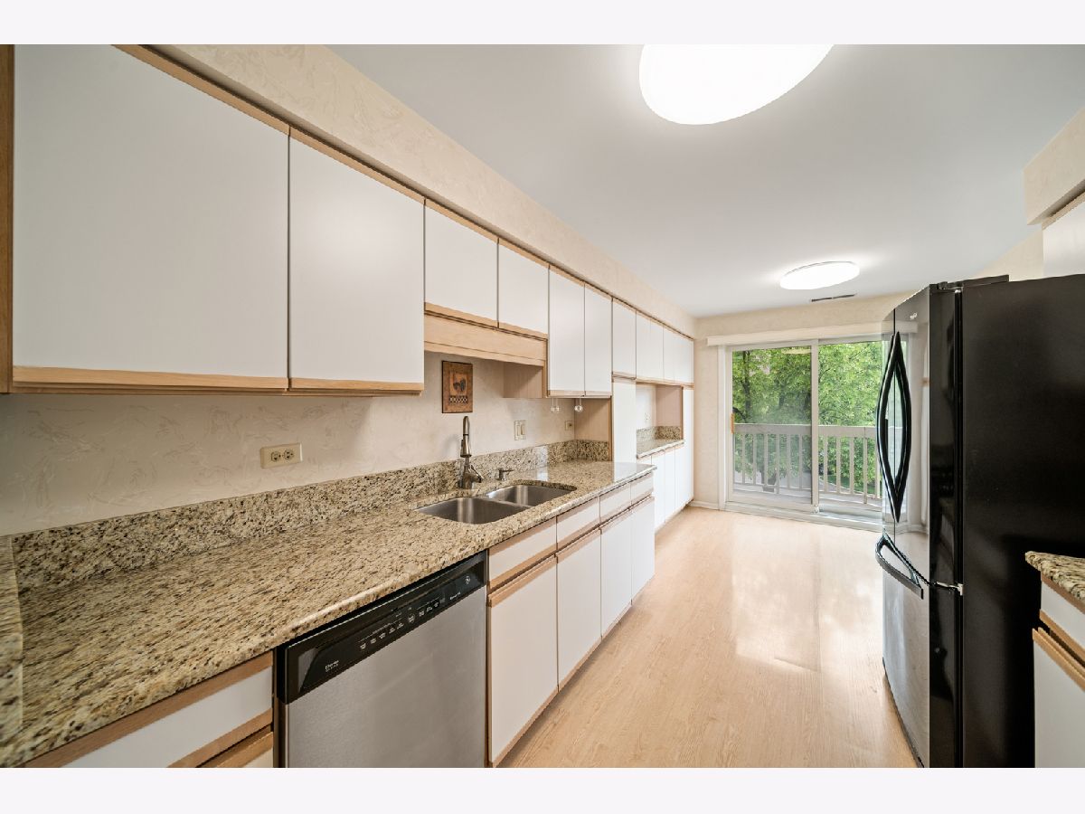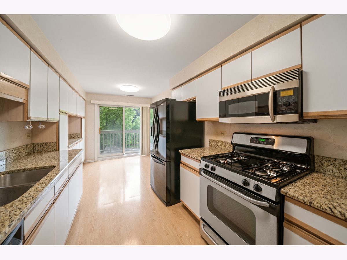 Welcome to this sought after 2-bedroom, 2-bathroom condo located in desirable Buffalo Grove. Upon entering the home, you'll be greeted with beautiful LVT flooring and a neutral palette. The large dining room and living room combination features a cozy fireplace that is great for entertaining. Sliding glass doors and windows allow for ample light and warmth. The spacious balcony offers a retreat where you can relax and enjoy the outdoors. From hosting barbecues to simply taking in the fresh air, this space can be transformed into your personal oasis. The sizable kitchen is wonderfully appointed with a stainless-steel microwave, oven, granite countertops and plenty of storage. The primary suite is quite large and includes a walk in closet and full en suite bath. The second bedroom is also large and inviting. Another advantage of this property is the large laundry room, providing ample space for storage and laundry needs. The community itself boasts an outdoor pool, a club house, and scenic walking paths. These amenities provide an excellent opportunity to enjoy a vibrant and active lifestyle while creating memorable moments with friends and neighbors
