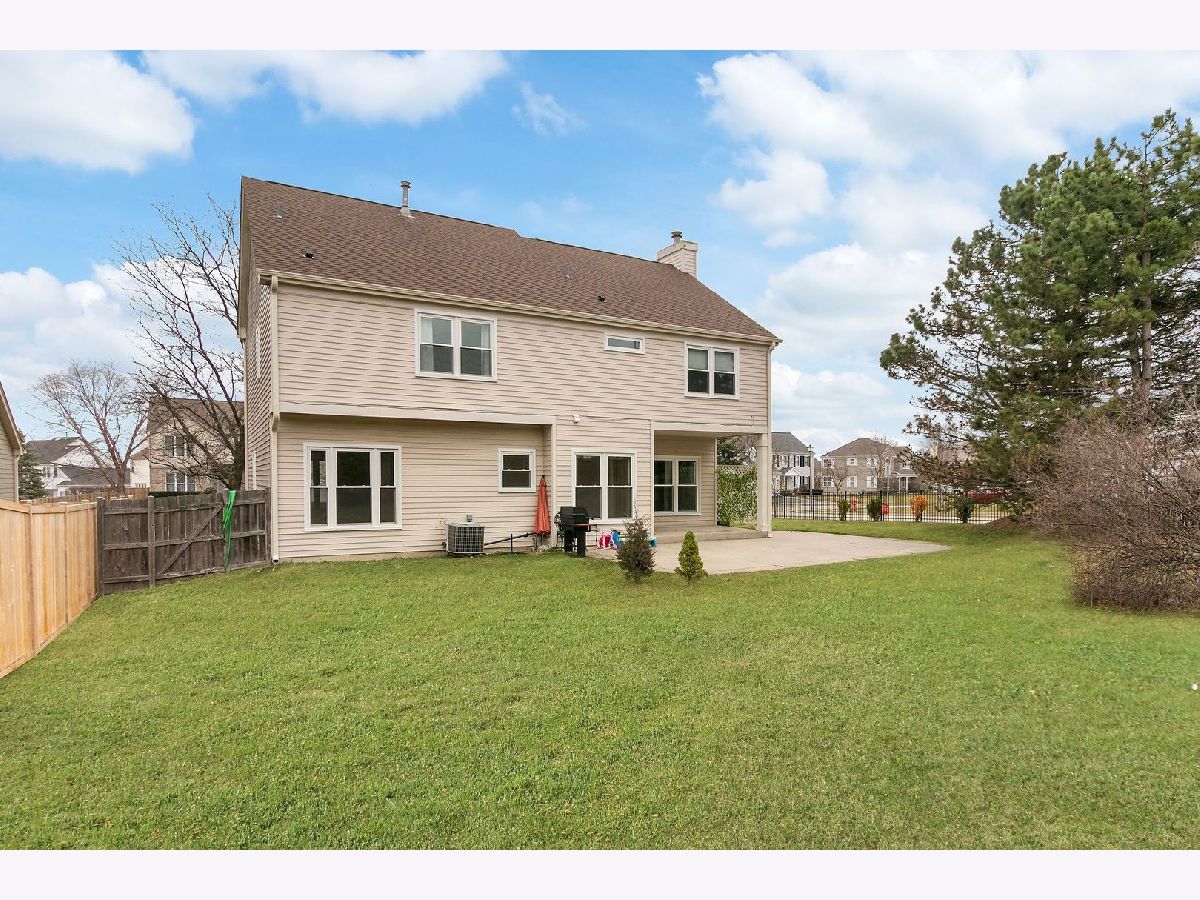 Wonderful opportunity in The Field's Of Ambria. You'll love the dramatic two story entry and living room with floor to ceiling windows that flood the room with natural light. Enjoy a large family room with brick fireplace open to the kitchen which boasts a center island with counter seating, granite countertops, and an eating area. Off the kitchen is a large private patio and fenced yard. Upstairs be greeted by four spacious bedrooms. The primary bedroom has an en-suite bath with soaking tub and separate shower, a double vanity and a walk-in closet. Laundry room is conveniently located on the second floor. The partial finished basement offers added living space with vinyl plank floors, and plenty of storage space. Two car garage, wood floors on main level, cul du sac location!