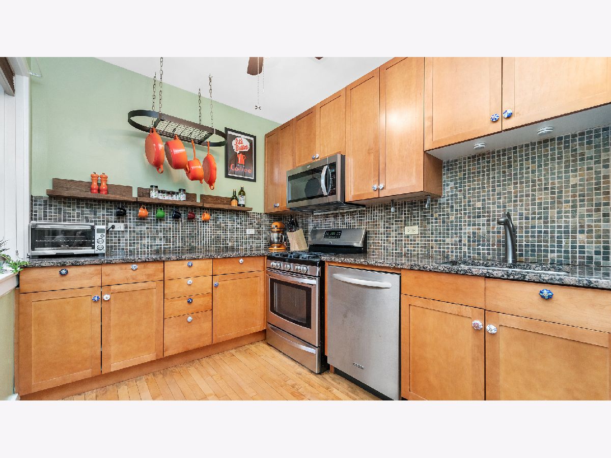 In the heart of Andersonville, this spacious 2-bedroom, 2-bath duplex-down blends vintage character with modern updates. On the main floor, the open and expansive living and dining area features hardwood floors and stained glass windows. The adjacent alcove has south and east facing windows that fill the space with abundant natural light, and there are French doors opening to a den or home office. The updated kitchen boasts granite counters, a mosaic-tiled backsplash and newer stainless-steel appliances. The primary bedroom has two large closets and the updated main level bath features glass and porcelain tile with marble counters. With plenty of natural light, the lower level has an expansive family room, a full bath, and a spacious 2nd bedroom with a walk-in closet. The in-unit washer & dryer is conveniently located on the main floor. This pet-friendly building has been carefully maintained with numerous recent upgrades including water heaters, furnace, rear gate & fence, tuckpointing, roof, porches & stairs and Thermopane windows. Enjoy all of this and more with an enviable location close to the upcoming Metra station at Peterson and Ridge, CTA Red Line, and all that Andersonville has to offer including its farmer's market and some of the best restaurants, galleries and boutiques in the city.