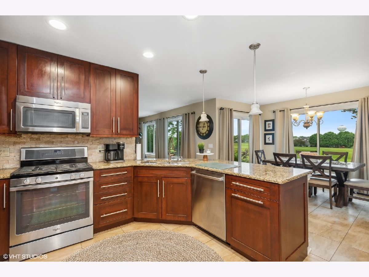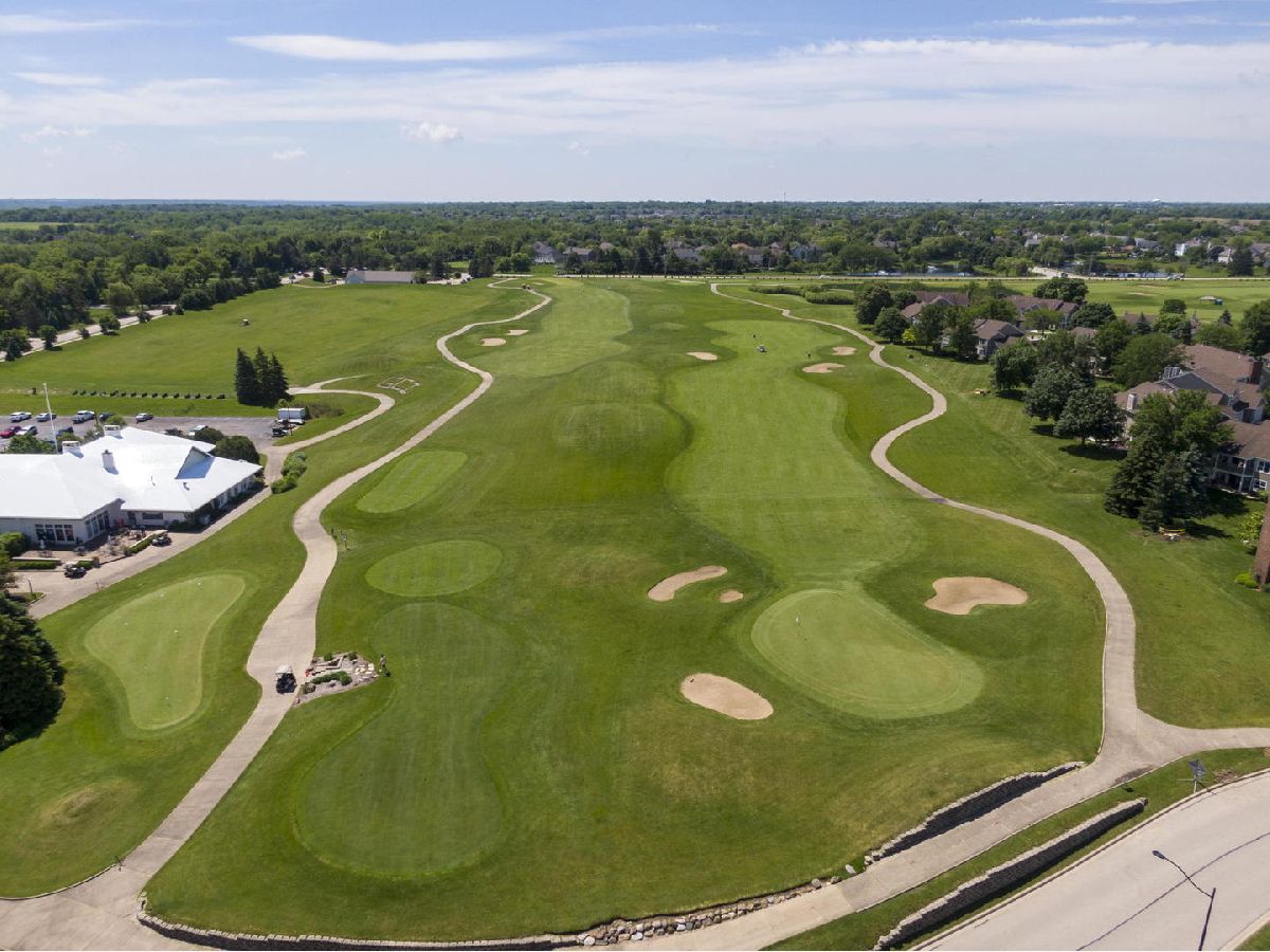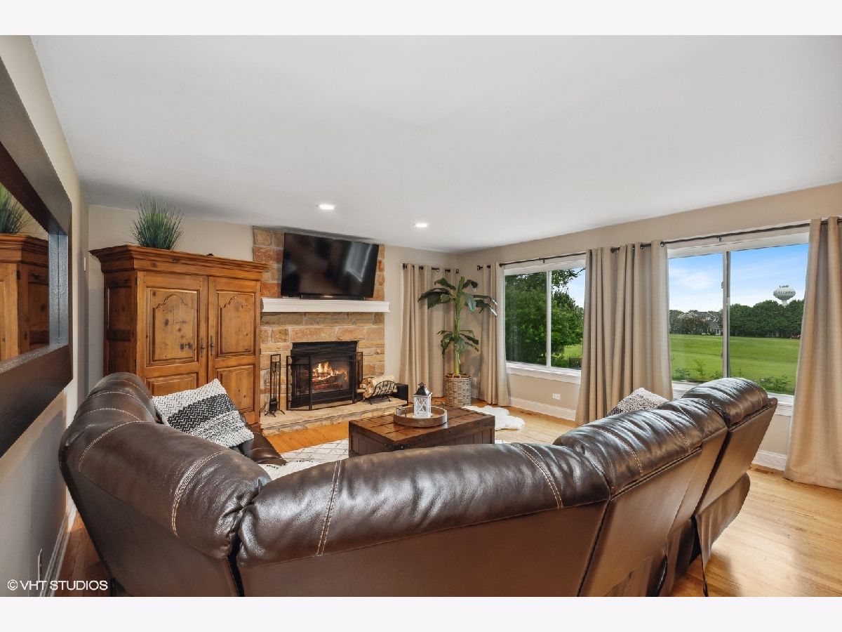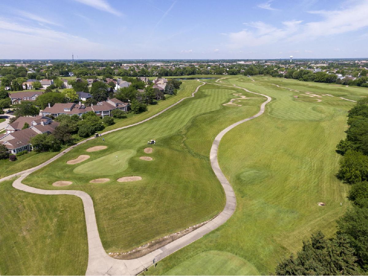Picturesque setting like no other! This breathtaking home overlooks the magnificent Golf Club of Illinois course. Walk in and be welcomed by the updated staircase. The beautifully updated kitchen features 42"cherry cabinets, granite countertops, newer stainless- steel appliances, limestone flooring, a breakfast bar and eat-in area. Not to be outdone by the open family room boasting a stone gas fireplace and large windows to bask in the gorgeous views! French doors leading to the 1st floor den showcase the gleaming hardwood floors throughout this home. Retreat to the master suite, featuring tray ceilings and a sizeable walk-in closet. A luxuriously updated bath includes a dual vanity, jacuzzi tub and separate shower. All other bedrooms are of great size and share an updated full bath. Convenient floor laundry includes a utility sink. The finished basement features a multipurpose room, dry bar, media area, and plentiful storage space. Central vac system included. Entertain on the brick paved patio and spacious backyard with sprinkler system. Newer windows, sliding glass door, hot water heater, water softener, siding and more!!! Enjoy all the conveniences Randall Road has to offer in this home, where location and lifestyle meet!