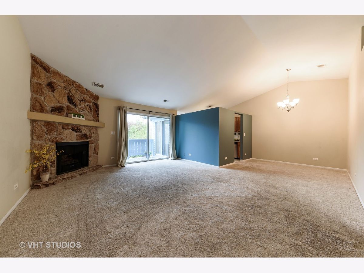 This is a great place to call HOME. It is a commuter's dream, close to metra, close to Elgin O'Hare. This manor home has vaulted ceiling in the living room/dining room. This room has a great open, spacious, warm feel to it with sliding glass doors that lead to your balcony. The floor to ceiling stone fireplace makes the room extra cozy. Spacious EAT-IN kitchen has new stainless steel appliances (2020) and has a 2nd sliding door to your balcony. Huge master suite with a walk-in closet, large master bathroom with soaker tub. Newly tiled 2nd bathroom shower. In-unit laundry.