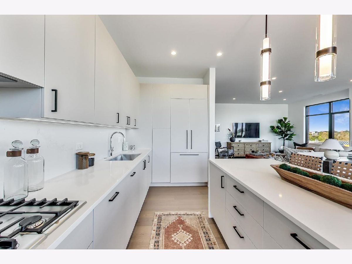 TRIANGLE SQUARE, BRAND NEW 3 BED/3 BATH +OFFICE IN EAST BUCKTOWN. READY FOR IMMEDIATE MOVE-IN! Welcome to Residence 404 featuring single-family living on one floor. This corner home includes 3 bedrooms plus an office, 3 full baths, and a contemporary kitchen featuring integrated Bosch appliances and an 8'- wide island. The living/dining area is accentuated with 40-linear feet of windows and opens to a 16' wide private balcony. This home is complete with a secondary entrance through a huge laundry/mud room perfect for kicking off boots, wiping paws and storing strollers. Building amentities include a rooftop terrace with 360-degree city and river views, fully equipped fitness room and a dog wash station. Enjoy all that Bucktown and Lincoln Park have to offer from this perfect location. Triangle Square is located in the Pulaski International School of Chicago district! Renderings are of various plans offered throughout the building.