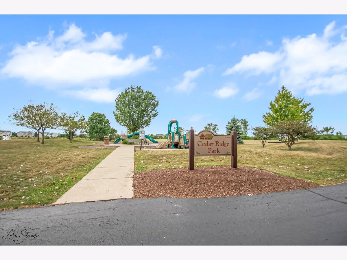 Beautiful 2 story Cathedral 4 BR/3 1/2 Bath Birmingham model in Cedar Ridge Subdivision! Total of 5057 sq/ft, first floor 1763 sq/ft, second floor 1540 sq/ft and partially finished full basement with full bath, electricity, drywall installed, back up sump pump generator, all you need is paint the color you want and enjoy the extra 1754 sq ft! Premium large corner lot, overlooking the Pond and the Park with Playground area. Stunning curb appeal, beautiful landscape, soaring ceilings, gorgeous two-story large family room with 4 ft extra bump out, gas fire place from floor to ceiling, entire wall with windows w/ custom made curtains and blinds, wood floors from the foyer to the kitchen and cozy premium carpet in family room for extra comfort. Two story foyer with Greek Columns greets you as you make your way to living room and formal dining w/butlers nook. Family room opens up to the kitchen with island w/breakfast bar, 36" maple cabinetry, walk in pantry, and planning desk. Laundry room w/extra storage area, mud room and large Library room. The eating area gains access to the amazing custom built 20x20 patio that provides breath taking and peaceful views of the pond with fountains and the Park. Large master suite w/double french doors entrance, large master bath with Jacuzzi tub, double vanity with extra long make up area space, separate glass enclosed shower, and HUGE WIC! Easy access to I-355 and I-80, great school districts and close by shopping centers. Must see it! It won't last long!