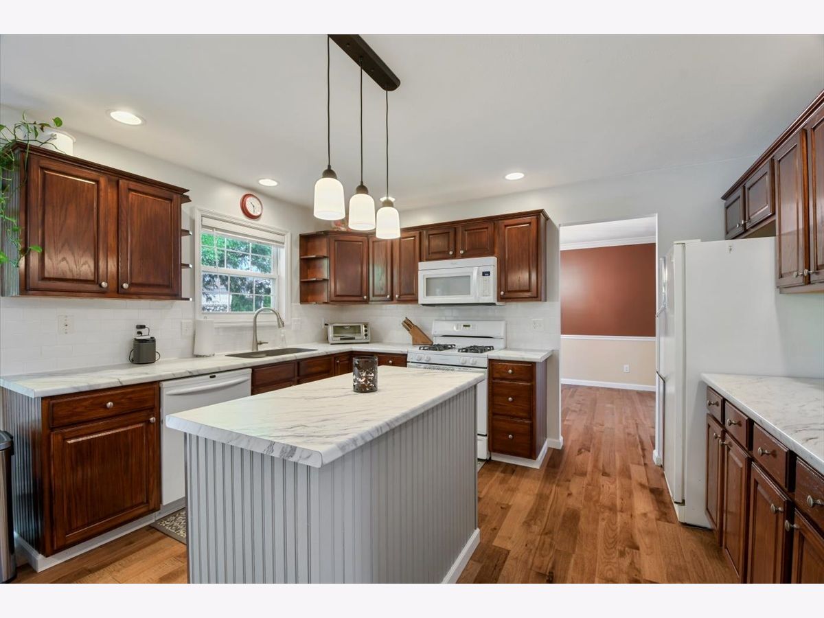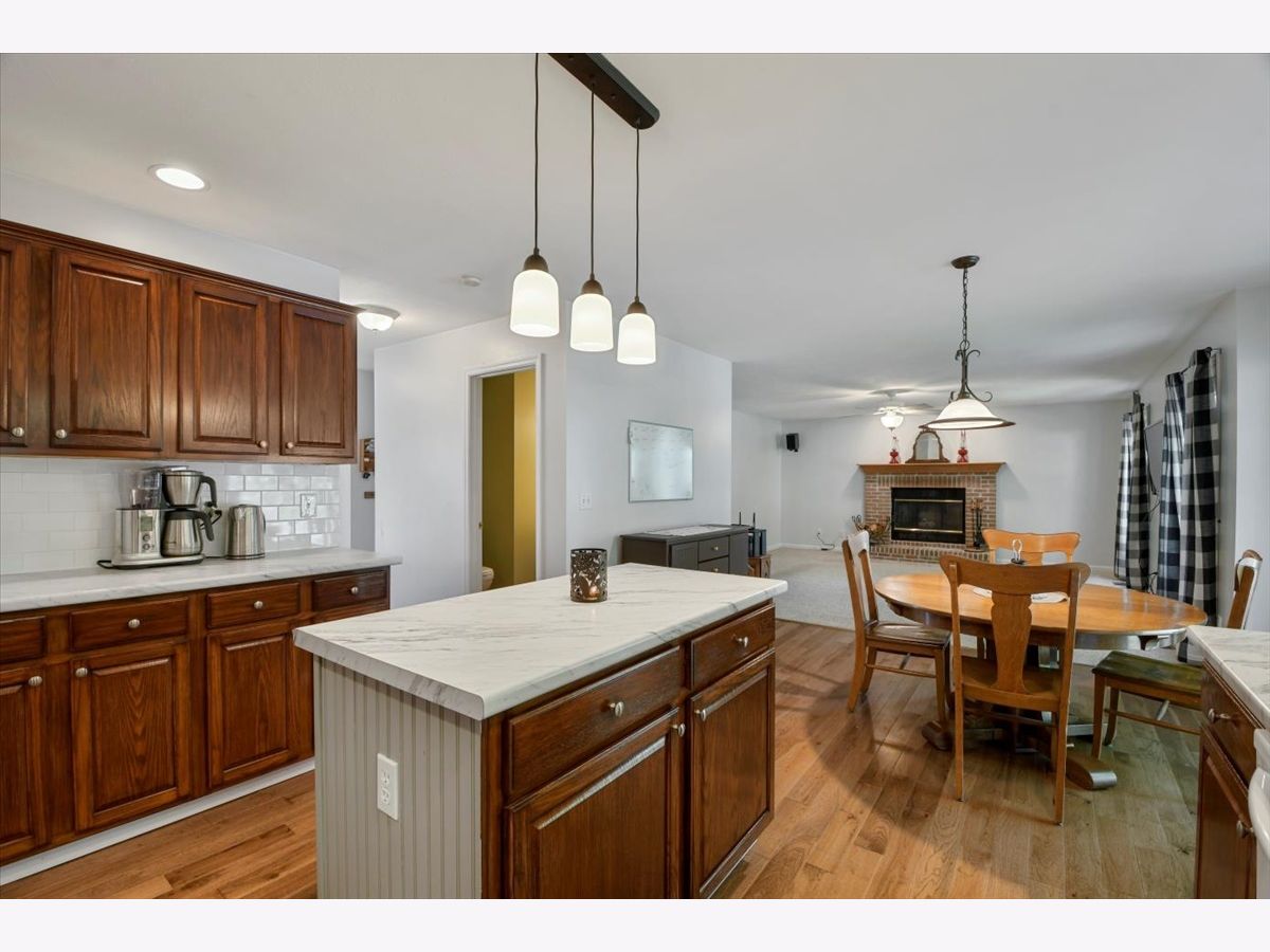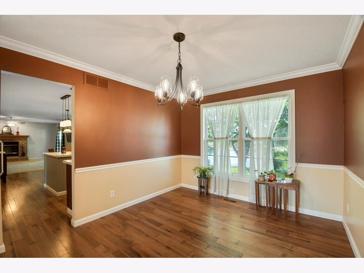 This lovely waterfront home is located on a quiet cul-de-sac in the desirable Country Ridge Subdivision. Enjoy serene mornings, beautiful sunsets, and great fishing from your backyard. This meticulously maintained home features 5 bedrooms, 2.5 bath and an oversized 3 car garage. You will enter the home to find a large entry way and front closet. The main floor features beautiful hickory hardwood floors installed in 2019. Since this was a pet-free home, the floors are as flawless as the day they were installed. The hardwood continues into the eat-in kitchen which also has refinished cabinets and newly installed countertop, sink, and faucet plus a new Pella slider to the patio that was installed in 2012 and the 50 year roof was installed in 2012. The kitchen sits between to the family room and spacious dining room that leads to the formal living room that both continue with the beautiful hardwood floors. The family room has a wood burning fireplace that could easily be converted back to a gas log unit ( the conversion kit is included with the home) and is wired for surround sound for the audiophile or home theater enthusiasts. The range, refrigerator, dishwasher and clothes washer & dryer all stay with the home. The hardwood continues up the stairs where you will find four spacious bedrooms each with plenty of closet space. The large master bedroom suite has vaulted ceilings, a generous walk-in closet and a refreshed bathroom with a corner Jacuzzi tub, ceramic tile floors, a walk-in shower and new vanity. The laundry is also conveniently located on the second level and has plenty of built-in storage for supplies while the hallway bathroom features a Humidity Sensor that operates the exhaust fan. The basement has a bedroom with an egress window and deep closet along with a network wired technology room, a rec room and a huge unfinished area with a work bench and built-in shelves that is good for storage, a work shop or an exercise room. The mechanical systems have been serviced every six months by Lanze Plumbing and Heating and the Spring Green Lawn Service has been paid through the end of the year 2022. The exterior of this home is as lovely as the interior. The home is surrounded by colorful flower beds containing a variety of perennials that bloom from spring to winter. Hummingbirds and butterflies are frequent guests. There is also a raised vegetable garden ready to be harvested. The backyard has great privacy and shade from mature trees and overlooks the large expanse of the pond. The rock wall provides a barrier from the water but allows access for outdoor activities like kayaking, paddle boating, or fishing for largemouth bass, crappie, or sunfish. Mature trees offer shade for evening meals on the back patio and a great place to relax in a hammock. Sitting on the back patio is a perfect place to enjoy serene mornings and beautiful sunsets or even land a Lunker Bass from your lawn chair. Finally, don't miss the spacious 3 car garage with cabinets, equipment rack, and peg board ready to store tools and toys. The Country Ridge neighborhood is a community with extensive sidewalks, an expansive park and quiet streets. Very quick possession is possible with this lovely home.