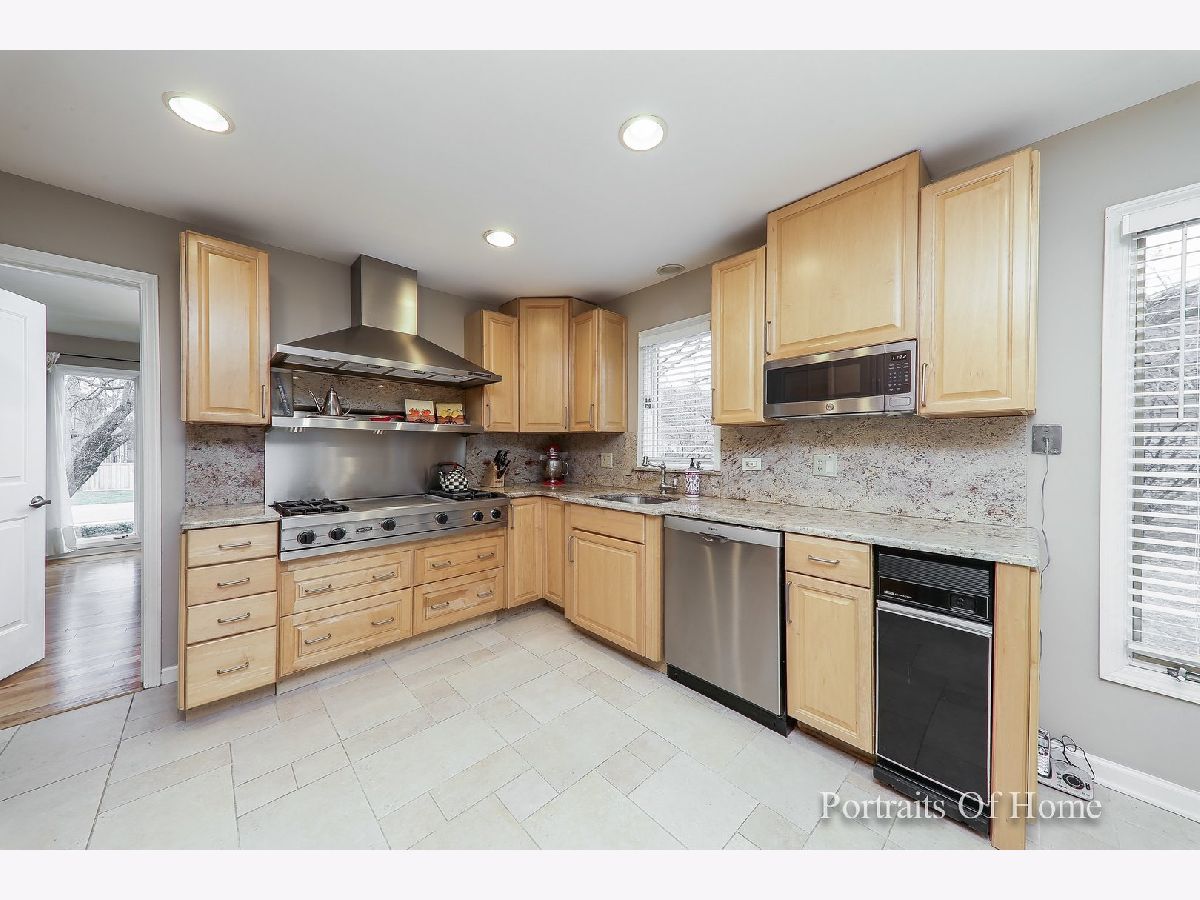Wonderful Deerfield location featuring award-winning schools. Close to parks, pool and downtown Deerfield with access to Metra and interstate. This contemporary home has been thoughtfully updated and is move-in ready. 4 bedroom, 2.5 bath. Living room and family room feature hardwood flooring with a see-through wood-burning fireplace and large sliding doors to side patio. Beautiful eat-in kitchen features maple cabinetry, granite counters with full slab backsplash, and high-end stainless steel appliances including Viking cooktop. Formal dining room with hardwood flooring and floor-to-ceiling windows. Modern centered floating staircase with large second floor landing. Primary suite offers two walk-in closets, wood-burning fireplace and tiled walk-in shower. Large secondary bedrooms and updated full bath with dual sink vanity, marble countertop and complimentary tilework. First floor laundry room with storage and utility sink. Full unfinished basement with endless possibilities. Large 2-car heated garage. XL corner lot with multiple outdoor areas for extended living and entertaining space.