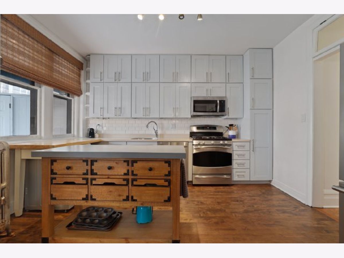 Remarkable vintage character combines with stylish, modern upgrades to make for the perfect 2 bedroom home in the heart of Old Town. As you enter, an open and spacious living room greets you with high ceilings, new hardwood floors, and an original wood burning fireplace, all bathed in sunlight from the oversized bay window. The kitchen has been recently updated with stainless steel appliances, tile backsplash, newly painted cabinets, and upgraded hardware and plumbing fixtures. A unique and oversized island ties the room together along with an attached dining room with ample space for a table. Both bedrooms are generous in size and have closets with custom shelving systems. Your huge, private deck off the kitchen overlooks a picturesque, gated courtyard and gardens. An in-unit washer dryer, new plantation shutters, custom window treatments, new light fixtures and recessed lighting with smart switches, closet doors and baseboards, plus private storage and a common bike room complete this turnkey home. Situated in the charming, always in demand Old Town Triangle neighborhood, this home is just steps to Wells Street restaurants and shops, Lincoln Park home to the iconic Green City Market, the lakefront, and CTA Brown and Purple lines via the Sedgwick station. There is easy, zoned street parking and leased parking options available within 1 block.
