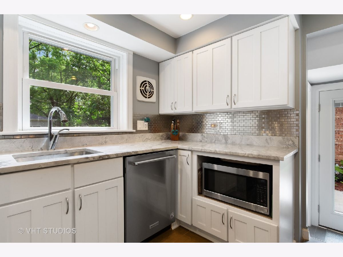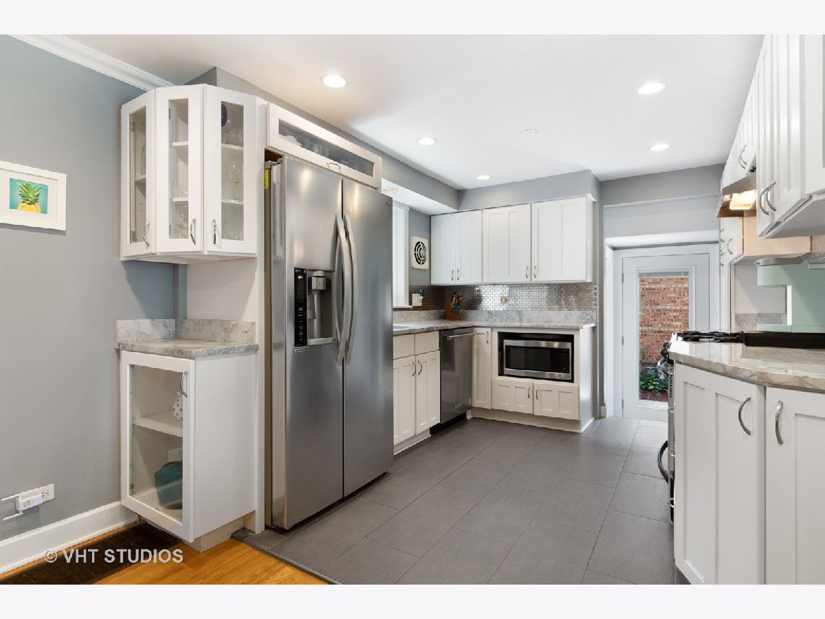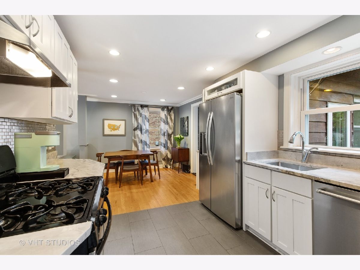 Super charming, move in ready, all brick Georgian single family home. Many updates throughout this immaculately cared for 3 bed, 1.5 bath home. Updated kitchen features white cabinets, quartzite countertops, custom tile backsplash and stainless steel appliances. All three bedrooms up with rehabbed full bath. Bonus four season family room off the back provides awesome natural light and picturesque views of the yard. Wonderful details including recessed lighting, crown molding, lovely built-ins and hardwood floors throughout living areas and all bedrooms. Partially finished basement with bonus recreation room, side by side washer/dryer and great additional storage. All interior repainted, newer carpet, windows, garage siding and exterior storm and screen doors. Generous outdoor space provided by an oversized lot featuring gorgeous garden with berry trees and perennials, brick paver patio and newer concrete walkway within a fully fenced backyard. 2 car garage plus additional front parking pad for 2 more cars. Great location close to everything Evanston has to offer; parks, schools, shops, and public transportation.