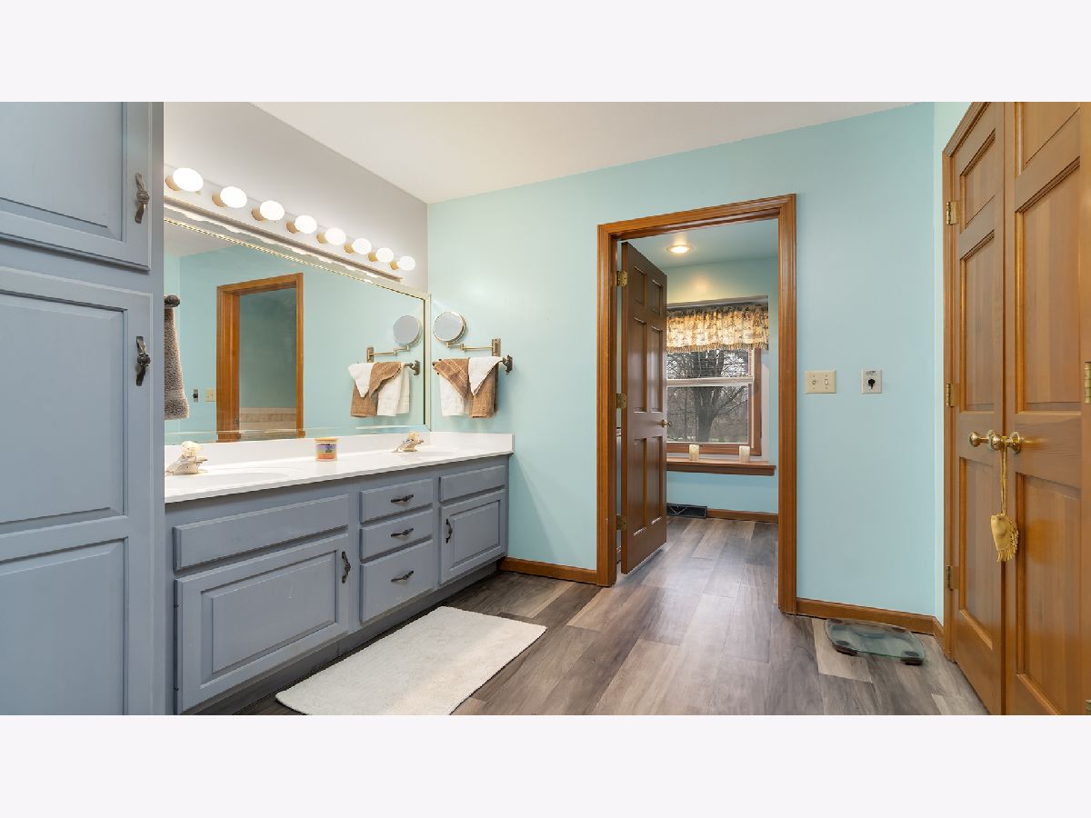 Welcome to this stunning 2-story home exuding timeless elegance and modern convenience! Step through the entryway, graced by a front door flanked by two glass side panels, inviting abundant natural light. The entry leads to a cozy family room, featuring a gas fireplace framed by two windows, creating a warm and inviting atmosphere. Entertain guests in the formal living and dining rooms, or gather in the updated kitchen boasting new countertops, backsplash, sink, stainless steel appliances and seal-coated cabinets. A breakfast bar and large table area with a generous window provide the perfect setting for casual dining or morning coffee, with doors leading to the deck adorned with built-in bench seating for outdoor enjoyment. Work from home in the main floor office and enjoy the convenience of a laundry room with a dedicated laundry shoot. Upstairs, discover four spacious bedrooms, including a master suite with a private en-suite bathroom possessing separate shower and oversized jacuzzi tub. The finished lower level offers a vast rec room, workshop/storage area, and another bathroom, perfect for hobbies or relaxation. Park with ease in the heated 3-car attached garage, with the third bay being tandem, and utilize extra parking on the extended driveway. Recent updates include a new roof (2019), newer furnace within the last 5 years, updated flooring in 2017, and the addition of two new sump pumps for peace of mind. Alarm system, water filtration system and RO also included. Embrace comfort, style, and functionality in this gorgeous home!