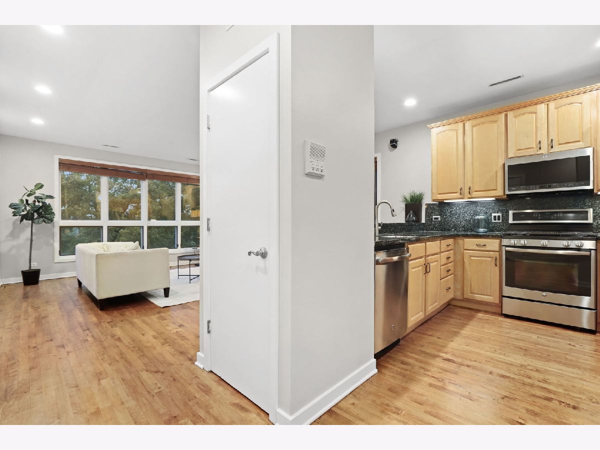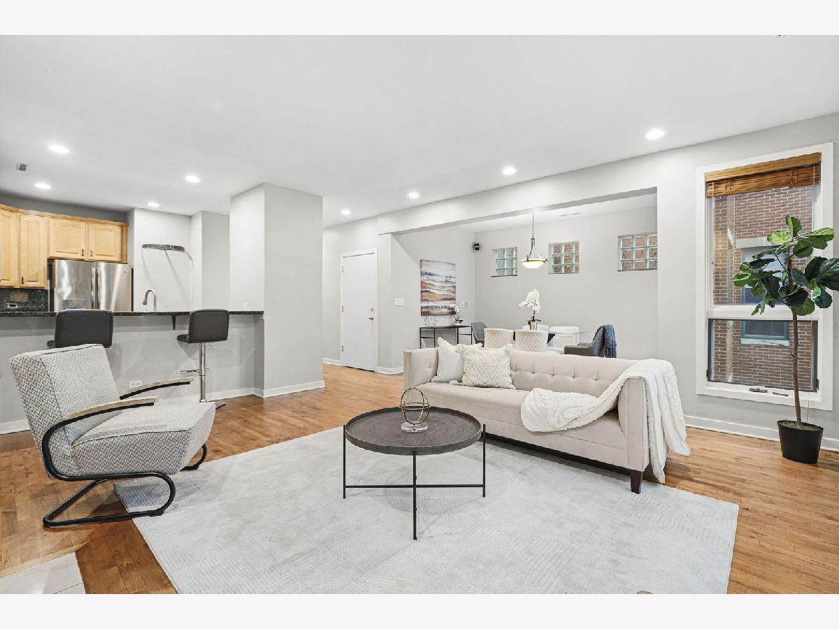 Welcome home to this extra wide, light-filled 2Br/2Ba, with a full separate dining area and hardwood floors throughout. The spacious living room is centered on a wood burning fireplace perfect for those Chicago winters, and a wall of windows overlooking Sheffield Avenue - the dining space can easily accommodate a 6-8 person table setting The kitchen is updated with 42" maple cabinets for plenty of storage, granite countertops with a breakfast bar, under counter lighting, and GE Profile stainless steel appliances. The home is outfitted with Elfa adjustable closet systems to maximize your storage. The primary bedroom has a generous walk-in closet and a spa-like ensuite with a whirlpool tub, separate glass enclosed shower, and dual vanities. The primary bedroom also features a wonderful private balcony which is an ideal spot to enjoy a quiet cup of morning coffee or tea. The home also features a separate in-unit laundry/utility room, 1 garage space, separate storage space, and a semi-private garage roof deck (shared with just one other unit). This home is centrally located in the heart of Lincoln Park with a 100 walking score. Easy access to the CTA Red Line, Clybourn shopping corridor, and all the wonderful dining/nightlife options along Armitage.