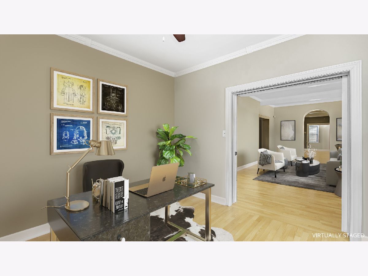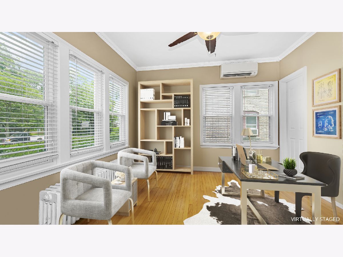 Beautiful 4 bed/2 bath house in the heart of Evanston. Easy walk to downtown and public transportation . The spacious kitchen has a breakfast bar, stainless steel appliances, gas stove, and tons of counter space. Fantastic backyard with fire pit, brick patio, perennial garden, and plenty of room for entertaining. First floor Home office is perfect for working from home, or could be converted to a first floor primary suite. The second floor bedrooms are oversized with great closet space. The finished basement has a bedroom or 2nd office, Family room, workout area and more storage. Large detached 2 car garage. A/C, sump pump, water heater, roof, garage siding, and tuck pointing all within the last two years. This home is move in ready! Please see upgrade list in additional info. ****Seller is offering a credit for the carpet in the basement****