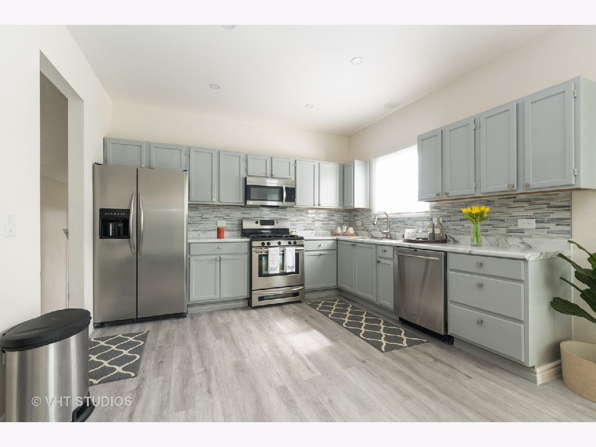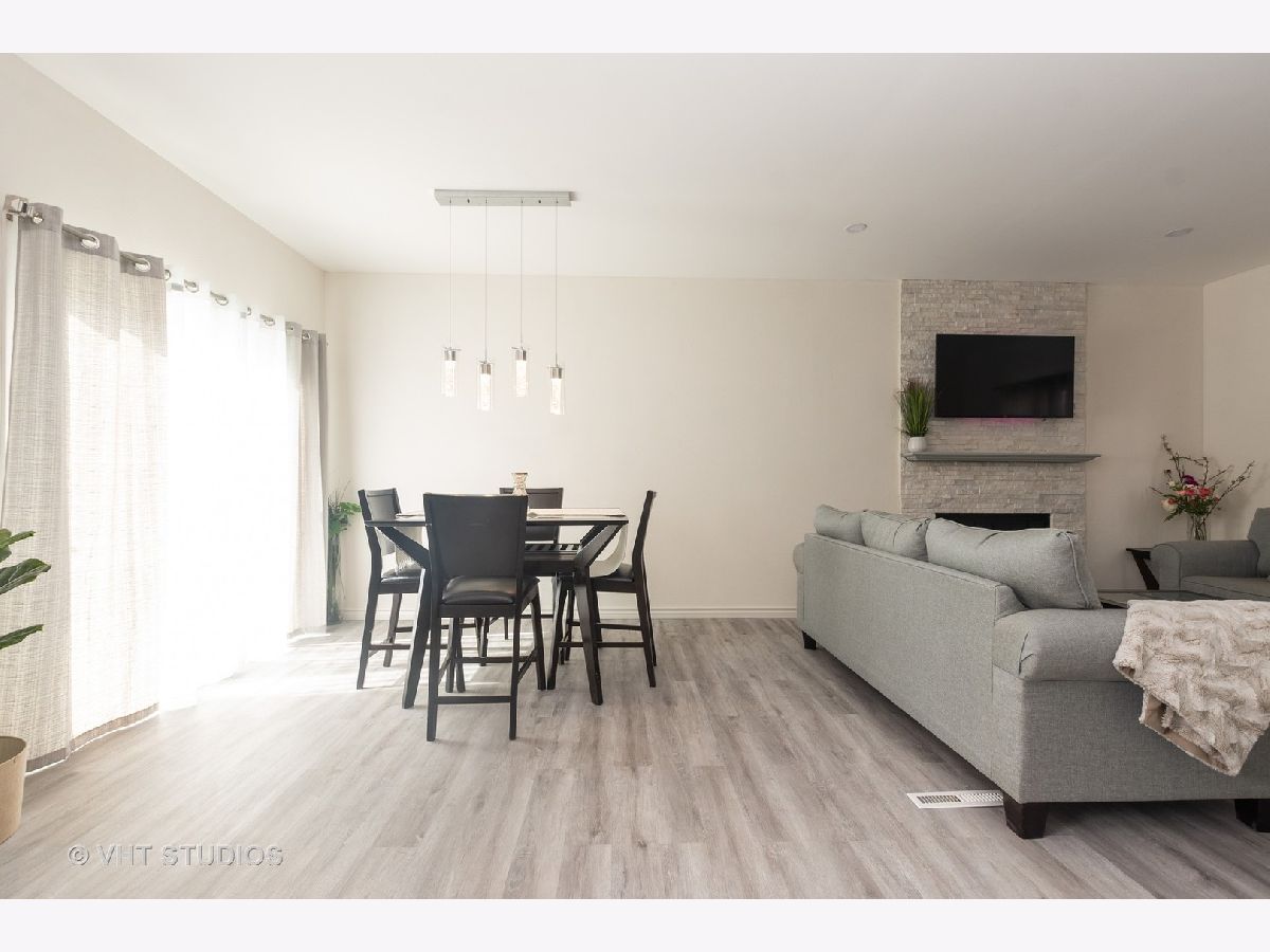 Beautiful freshly painted single family home w/ many upgrades available now! This home has brand new floors in living, dining room & kitchen area. New kitchen counter top/back splash, and recessed lights. Contemporary wood burning fire place in living room. All bedrooms on top floor have new carpet & windows. Basement can be used as a bedroom or a family room. Attached large garage /driveway. Located near grocery stores, restaurants & close to metra, / the 94 & 41. Easy to show. Call today for a showing!