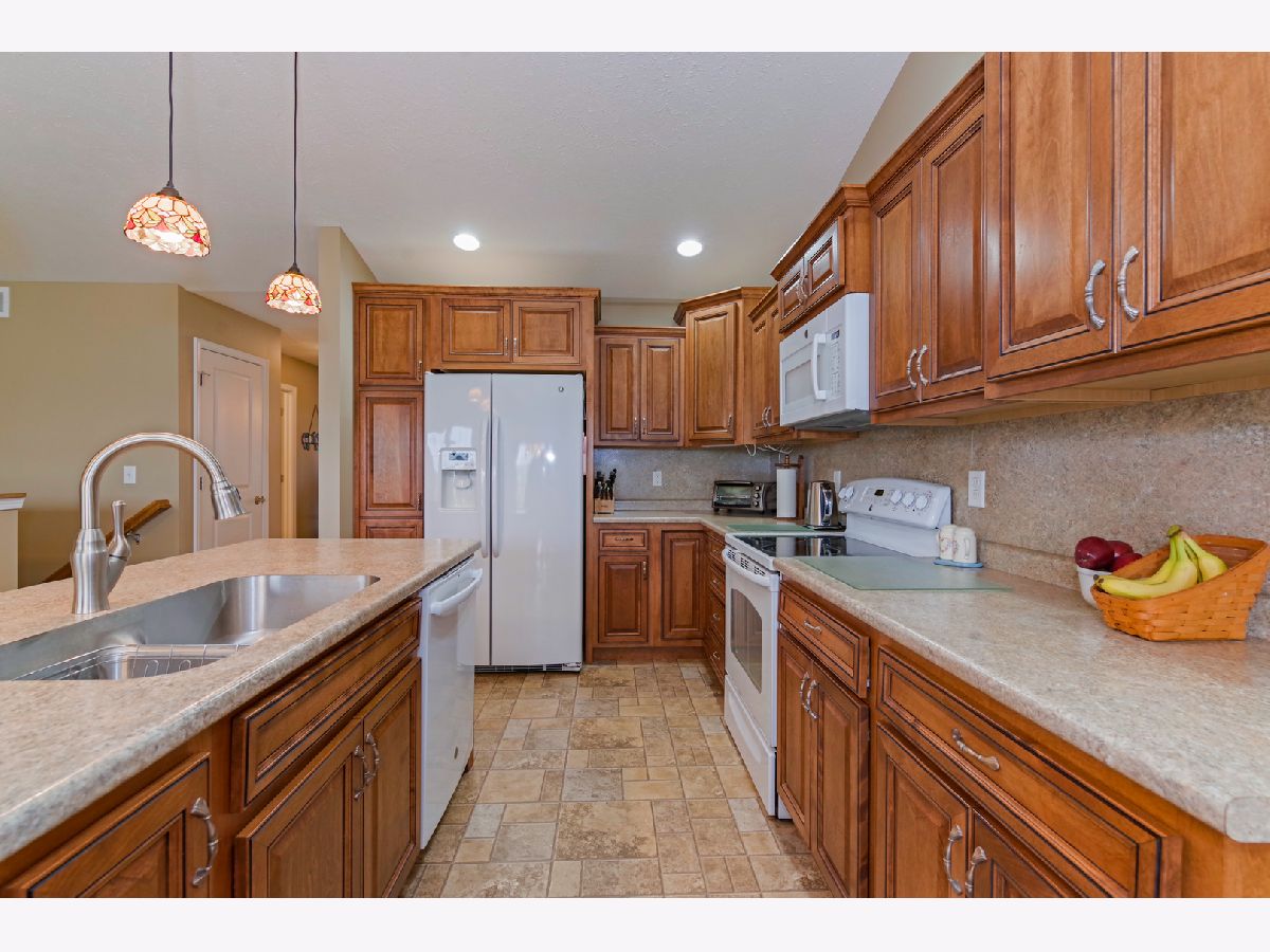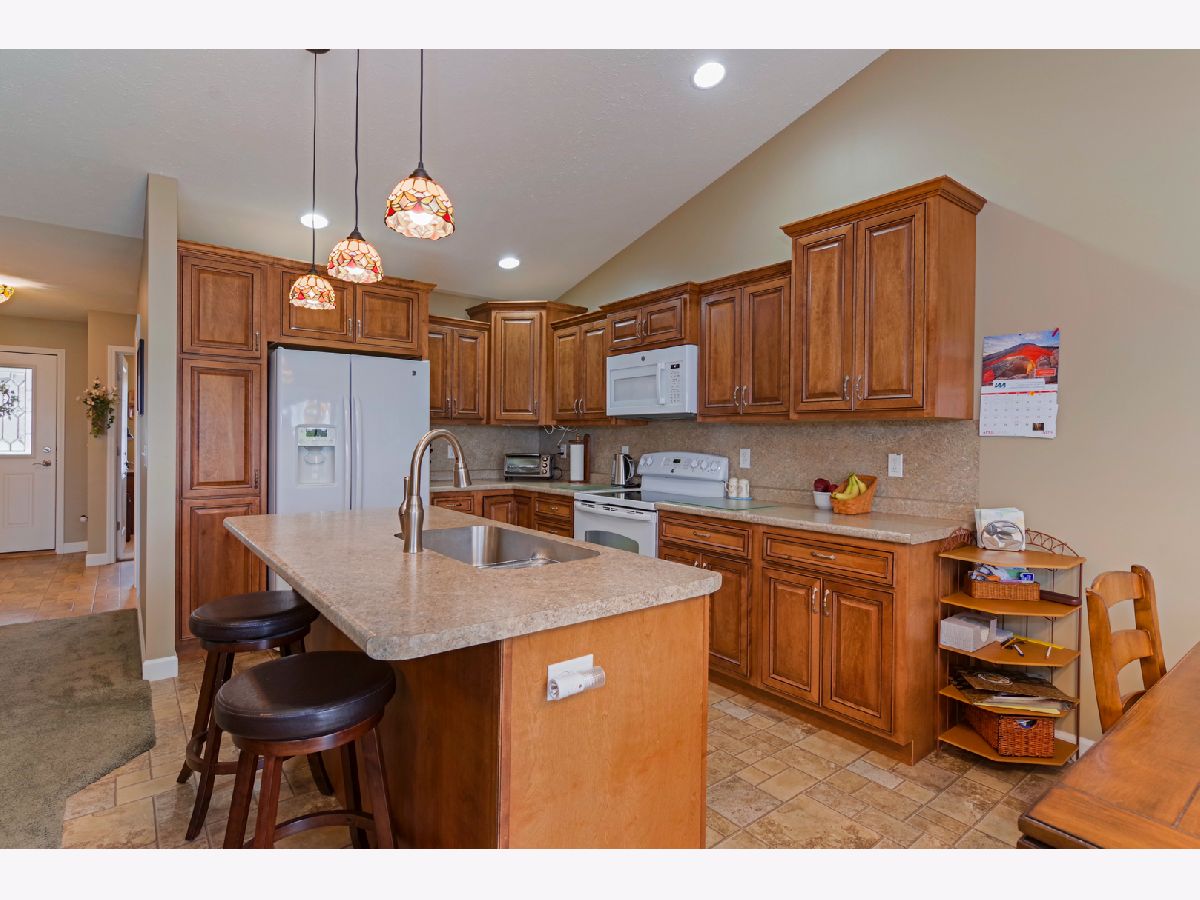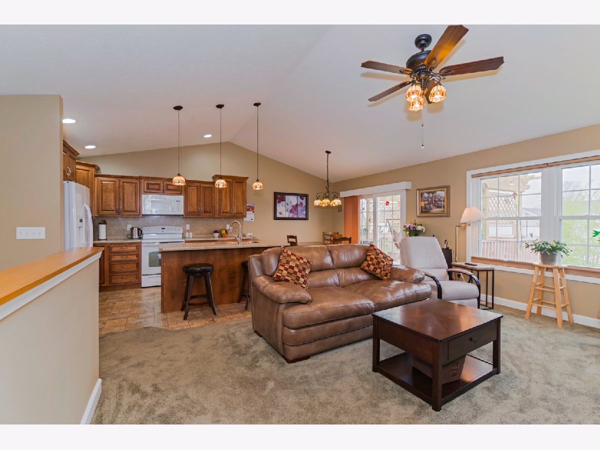 Neat as a pin 3 bedroom/3 full bath zero lot line in Prairie Gardens Neighborhood. Open floor plan with cathedral ceiling in kitchen/living room. Eat in kitchen features maple cabinets with pull out shelving and island. All appliances remain. Main floor master bedroom with has a trey ceiling with indirect lighting, walk in closet with pocket door and master bath with step in shower. Large main floor laundry includes nice closet great for coats or pantry, washer/dryer and built in ironing board. 2nd bedroom and 2 full bath on main floor. Finished lower level with bedroom 3 and 3rd full bath with whirlpool tub. Spacious family room with daylight window and wet bar. Plenty of storage in the unfinished section. 2 car attached garage, Deck with pergola. Large lot measures 104x120. $85 association fee covers lawn care, snow removal, landscaping and access to neighborhood garden/gazebo.