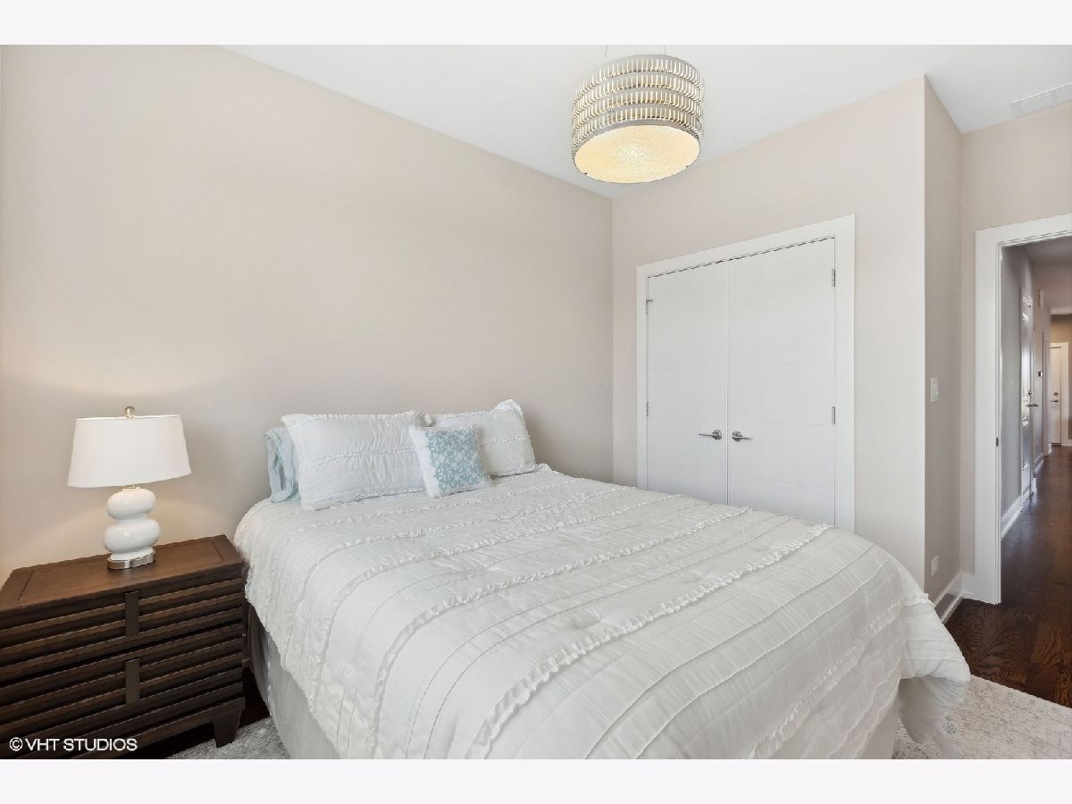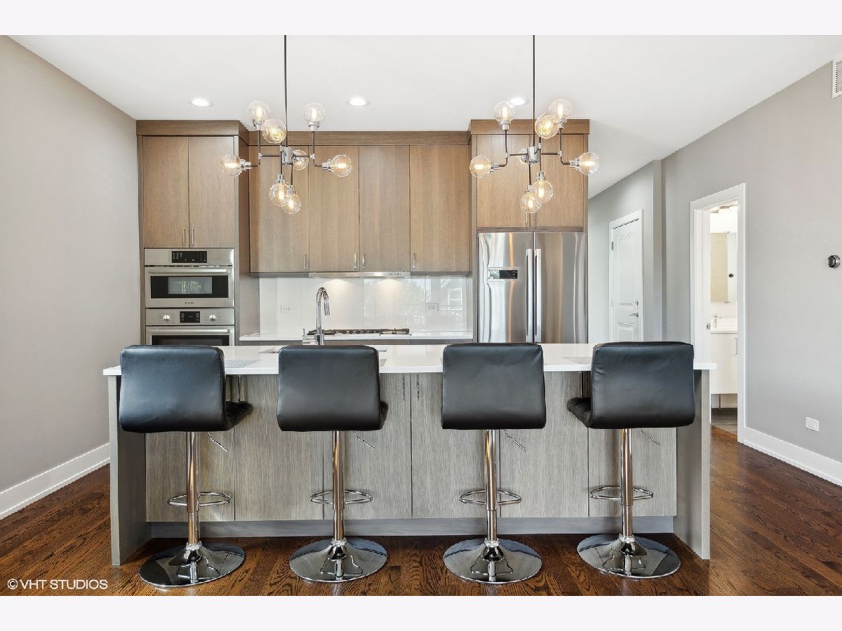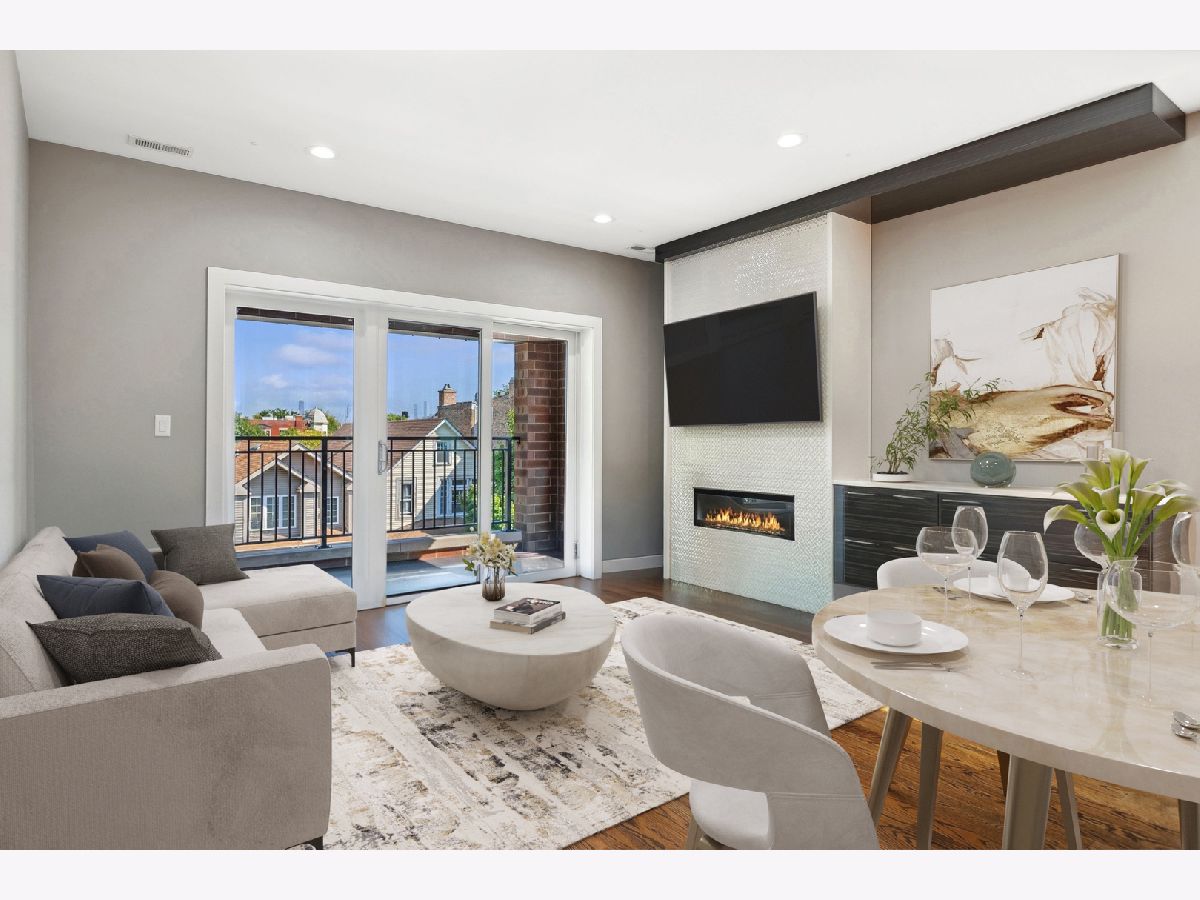 This pristine top-floor, extra-wide condo in a full-masonry building is located just steps away from the vibrant 606 trail. Lived in less than a month of every year since it was built by a reputable builder in 2018, this like-new residence has an abundance of natural light and features an expansive east-facing balcony with views of the skyline and equipped with a gas line so you can say goodbye to propane tanks. Designed for modern living, the unit boasts an open-concept layout with custom built-in closets, Bosch kitchen appliances, large island with additional storage, quartz countertops, Riobel and Grohe plumbing fixtures. Other features include, sleek hardwood floors throughout, high-end cabinetry, Nest thermostat, cozy gas fireplace, in-unit laundry, wiring for built-in speakers and a TV screen/intercom system for secure entry and garage parking. Situated on a quiet tree-lined street, you'll find nightlife, restaurants, the Blue Line, Logan Square farmers market, parks all within walking distance. This condo offers a perfect blend of style, comfort, and location for city living at its finest.