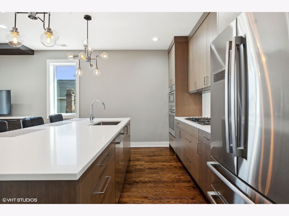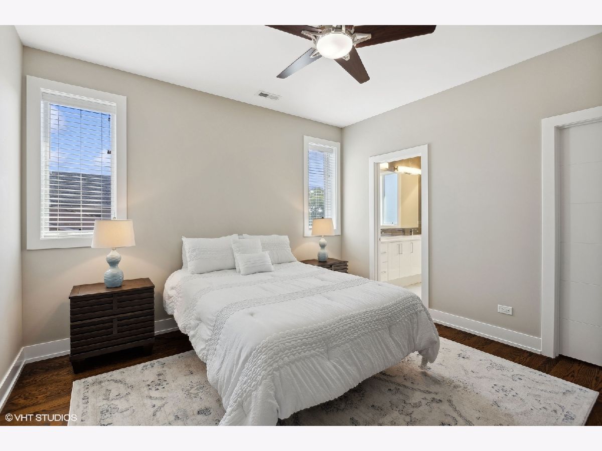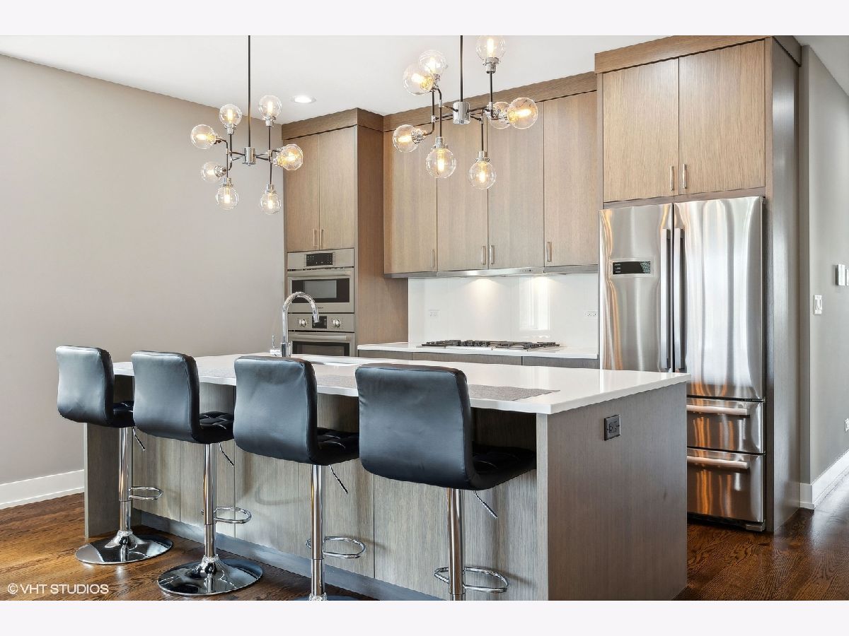 This pristine top-floor, extra-wide condo in a full-masonry building is located just steps away from the vibrant 606 trail. Lived in less than a month of every year since it was built by a reputable builder in 2018, this like-new residence has an abundance of natural light and features an expansive east-facing balcony with views of the skyline and equipped with a gas line so you can say goodbye to propane tanks. Designed for modern living, the unit boasts an open-concept layout with custom built-in closets, Bosch kitchen appliances, large island with additional storage, quartz countertops, Riobel and Grohe plumbing fixtures. Other features include, sleek hardwood floors throughout, high-end cabinetry, Nest thermostat, cozy gas fireplace, in-unit laundry, wiring for built-in speakers and a TV screen/intercom system for secure entry and garage parking. Situated on a quiet tree-lined street, you'll find nightlife, restaurants, the Blue Line, Logan Square farmers market, parks all within walking distance. This condo offers a perfect blend of style, comfort, and location for city living at its finest.