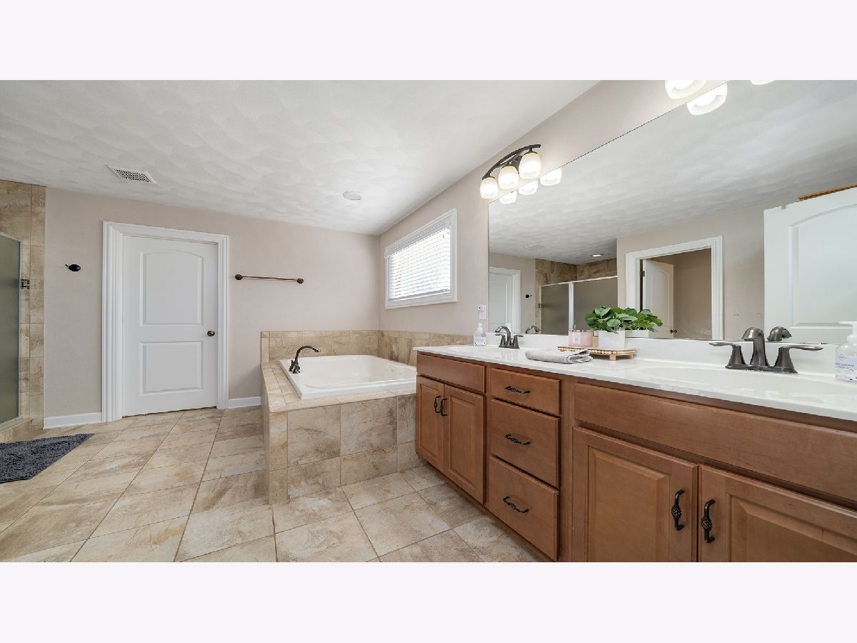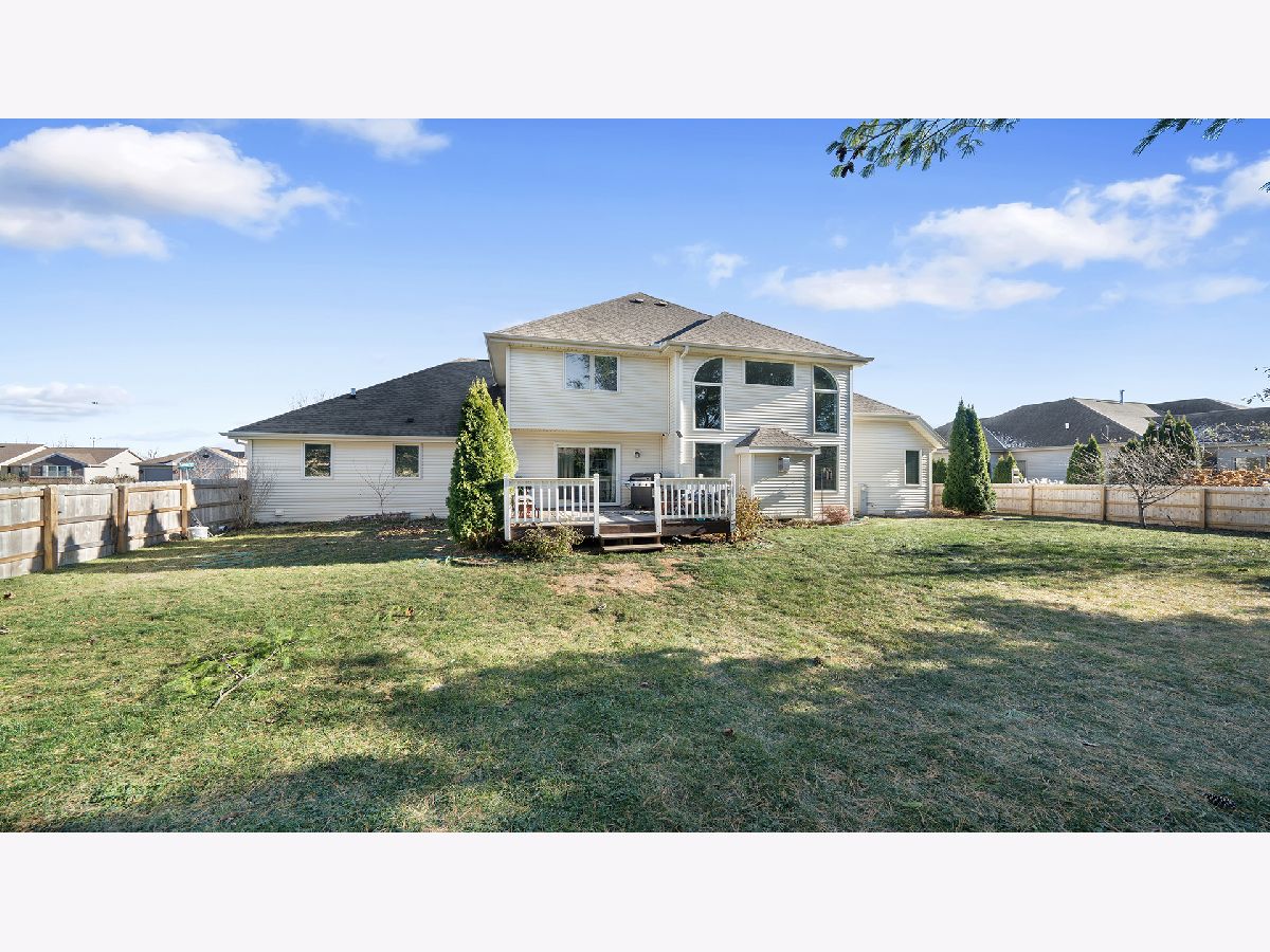 This stunning two-story home features a dramatic entryway and offers 4 spacious bedrooms, 3 full bathrooms, 2 half bathrooms, and a 3-car garage. The expansive living room boasts a gas fireplace, soaring ceilings, hardwood floors, and an abundance of windows that flood the space with natural light. The gorgeous kitchen is a chef's dream, showcasing maple cabinets, granite countertops, a tile backsplash, tile flooring, stainless steel appliances, and a cozy dining nook. A separate formal dining room with hardwood floors adds elegance. The first-floor master suite includes a tray ceiling, walk-in closet, and luxurious en-suite with a double vanity, soaking tub, and separate shower. Upstairs, find three additional bedrooms, including one with a private bath, plus a versatile room perfect for an office, playroom, or family space. The basement impresses with a finished salon, 14-foot ceilings in a unique section, and an egress window. Convenient main-floor laundry, fresh paint, updated appliances, and recent upgrades like a new hood (2024), oven (2022), and stove (2023) enhance this home. Additional features include epoxy garage floors, a new fence, new water softener and heater, and adriveway extension (2024). HVAC was updated in 2012, and the home boasts a camera system, updated half bath, and a beautifully maintained salon (2022). This home truly has it all!