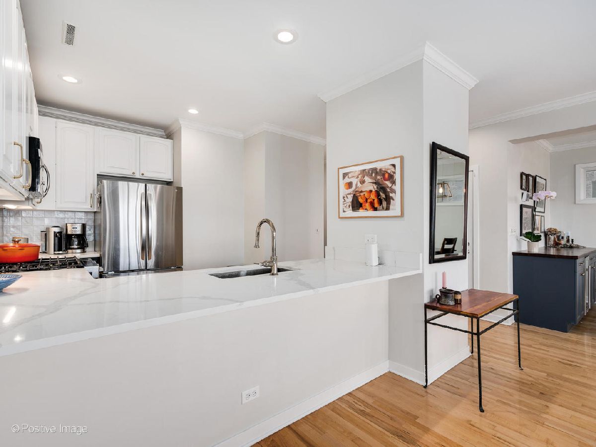 Welcome to this spacious 2-bedroom, 2-bathroom residence flooded with natural light. This exceptional home spans 1400 square feet and offers loads of special features. Upon entering, you'll be greeted by a larger-than-expected open living space, measuring 24 feet across, featuring a full dining area and a wall of oversized west-facing windows that flood the space with natural light. The open-concept kitchen was updated with stainless appliances and on-trend dual-tone cabinets and complemented by a huge breakfast bar and ample cabinet space. The living area also boasts a newly remodeled fireplace with custom tiling and mantle, creating a warm and inviting atmosphere. The primary bedroom is generously proportioned and features a walk-in closet and a newly renovated, expansive marble bath with a free-standing tub, a huge double vanity, and a separate shower. The guest bathroom has also been tastefully remodeled. In-unit laundry and loads of storage are a bonus. Throughout the home, you'll find hardwood floors. This home is designed with style, comfort, and function in mind. Enjoy outdoor living on the deck over the garage, with 1/2 of the large deck for your exclusive use. The location is superb, offering easy access to a wide array of amenities and attractions. A short walk to the Armitage shopping and dining mecca, Whole Foods, Trader Joe's, and Aldi, as well as local convenience stores, you'll have everything you need at your fingertips. For outdoor enthusiasts, the proximity to neighborhood parks, including Privet Park, Oz Park, and Adams Park, provides ample opportunities for recreation and relaxation. Transportation is a breeze, with the Brown and Red stations a few short blocks from the condo. This pet-friendly, low-rise building is a gem in vibrant Lincoln Park! Annual taxes - $10,260 and monthly HOA - $179.