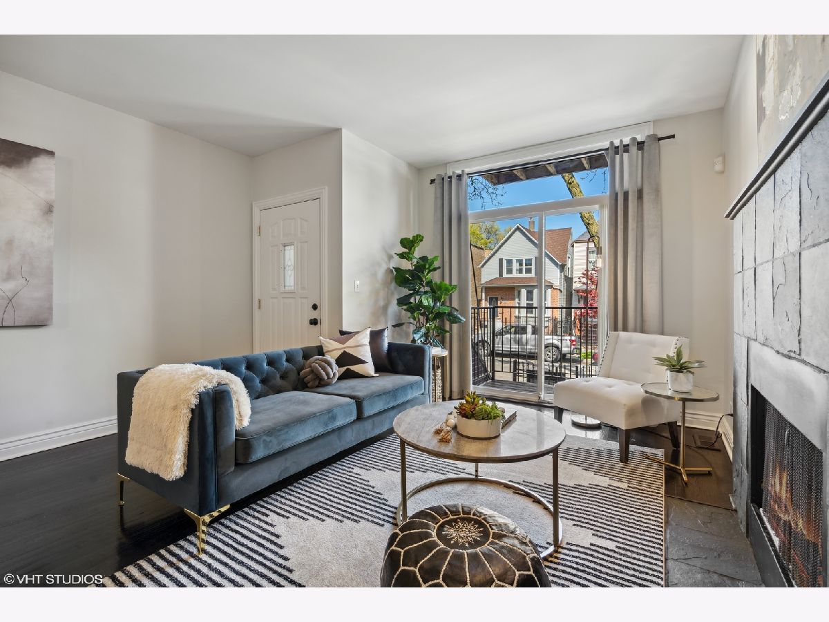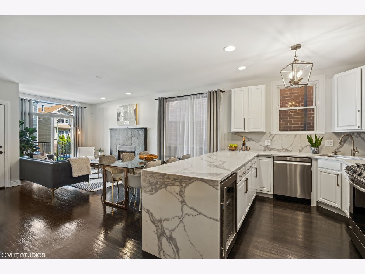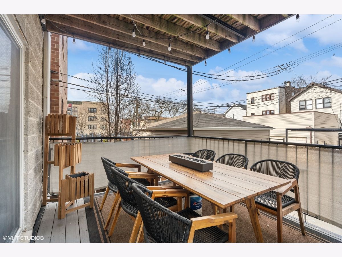 Beautifully updated 3 bed, 3 bath duplex down in Logan Square! This home has a fully renovated kitchen with oversized quartz peninsula, all new appliances in 2021 including built-in wine fridge, professionally refinished cabinetry with new hardware. Refinished dark white Oak hardwood flooring and new "wood look" tile throughout lower level. Front balconies off living space up and down. New light fixtures throughout. Fully renovated primary and second bath on main level. 3rd bath on lower level partially updated with new vanity, mirror and lighting. 3rd outdoor space off the primary bedroom with additional access through the back hallway. 2 wood burning fireplaces with gas starters, one on each level. New water heater in 2022. Extra storage room in lower lever + exterior gated parking included. Entrance to the 606 Trail at Whipple/Albany-Julia de Burgos Park. Surrounded by new construction situated on a quiet, tree-lined street.