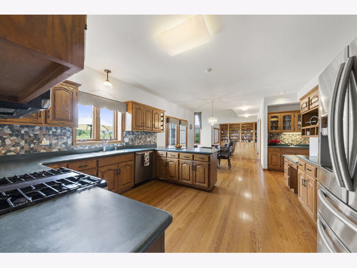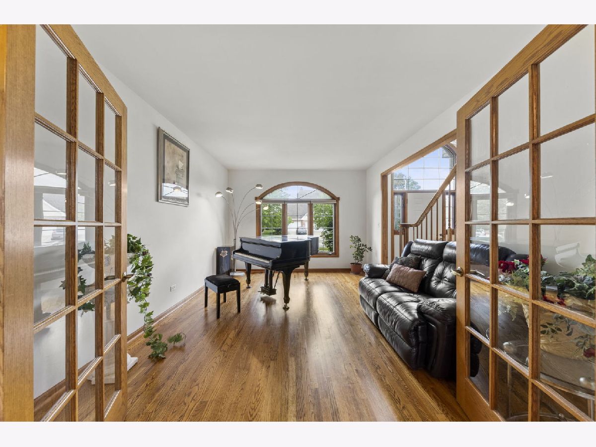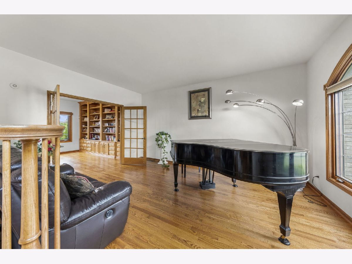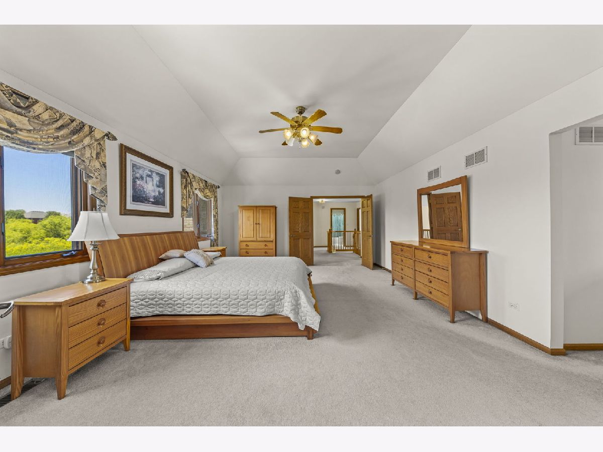 Welcome to the desirable Emerald Estates Community in Orland Park. This custom built home with new roof (2022) and A/C (2021) has superb curb appeal and does not disappoint! Premium lot offers oversized patio with full privacy overlooking natural wetlands and mature perineal flowering beds. The 2-story main entry provides a glimpse of the home's beauty, from the majestic staircase and beautiful hardwood floors to a formal dining room with crown molding detail and french doors leading into the library with custom built-in's. The great room with cathedral ceiling and impressive brick fireplace provides tremendous natural light and captures the tranquil beauty of the backyard with its floor to ceiling windows. Large gourmet kitchen with new SS Samsung range and microwave hood (2022) includes a wet bar and eat-in dining space with sliding doors to patio also providing additional views of the private backyard oasis. Enter through the double doors into the second floor over-sized master ensuite with adjacent flex space large enough for home office, nursery or private exercise area. Enjoy the first floor view from the catwalk while you make your way to the remaining three spacious bedrooms all with ample closet space. Entertaining is a must with the impressive full finished basement which features a theater room, custom built wet-bar with beverage cooler and game room separated by full-glass french doors. Lower level also includes a large home office with more custom built-in's. Fresh paint, custom landscaping and full irrigation system completes this pride of ownership. Don't miss this opportunity!!