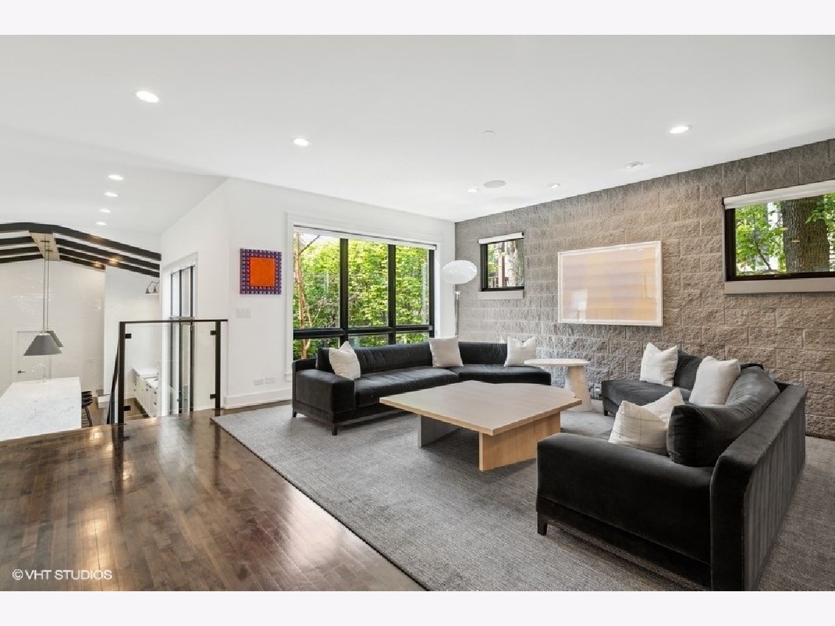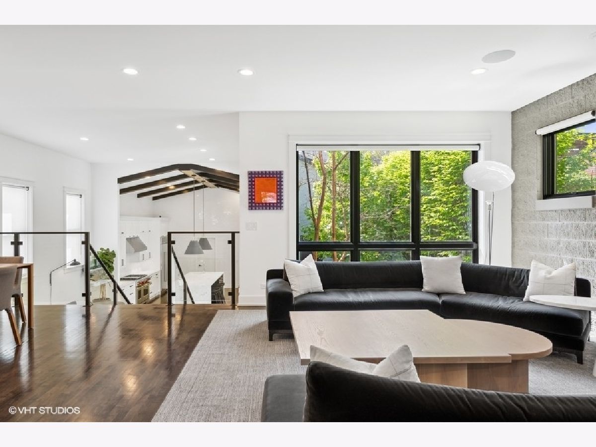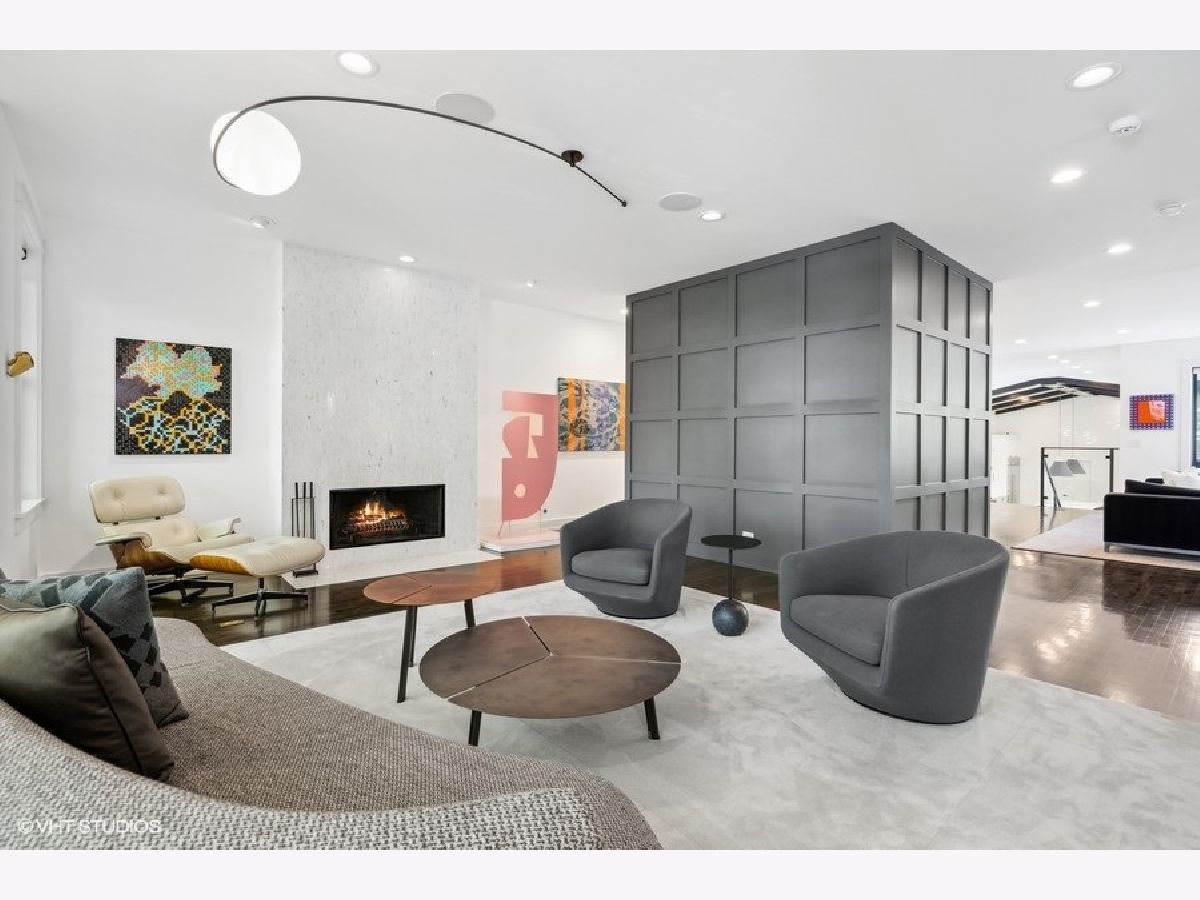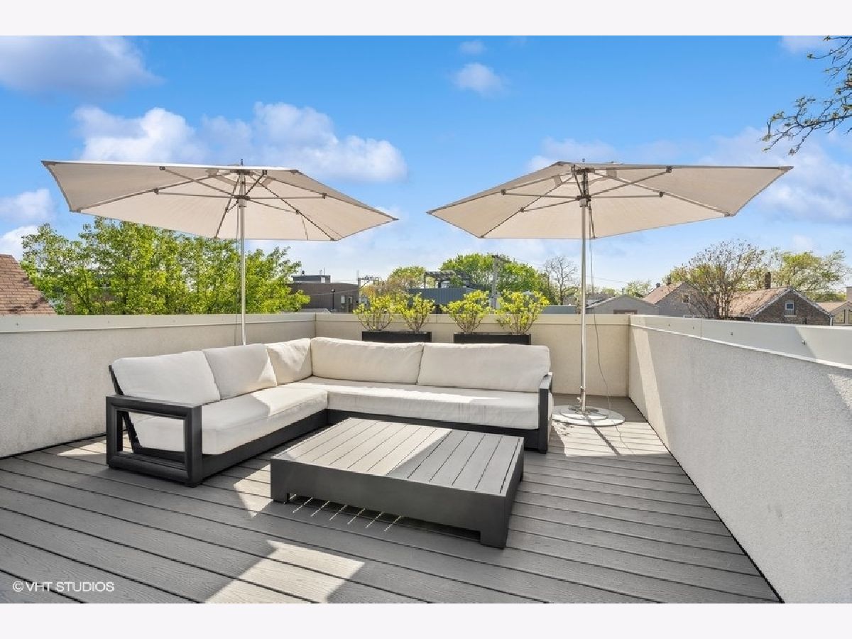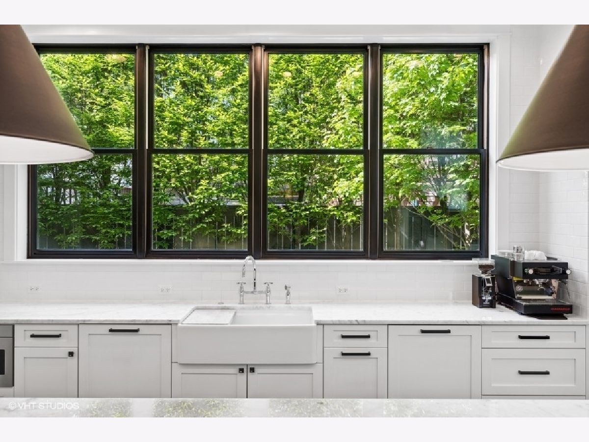 This is Bucktown at its very best, with five bedrooms, three full and one-half baths, and more than 5,000 square feet of contemporary living space on extra-wide lot. Meticulously thought-out and fully remodeled to pristine quality with custom designer extras throughout, this home boasts the ideal configuration for entertaining while perfectly fulfilling the needs of daily life. Impeccably rare, one-of-a-kind attached 3 car heated garage with electric charging station. The kind of kitchen that would make you stop and stare in a showroom centers the home. The sleek and sophisticated space features an expansive 11-foot, eat-in island with double waterfall edge, floor-to-ceiling subway tile, marble countertops, and top-tier appliances including a 48-inch Wolf range, Sub-Zero refrigerator, and dual Miele dishwashers. The 13-foot ceilings are dressed with rich beams, a bank of windows over the farm sink brings in tons of natural light, and an immense walk-in pantry and built-in buffet provide abundant storage. Adjacent is an informal eating area that looks out and provides immediate access to the landscaped designer yard, where an outdoor kitchen and fireplace await. Open to the kitchen is the sunny, formal living room with floor-to-ceiling fireplace and urban loft-style family room and dining room. On the bedroom level, the primary suite's private terrace and luxurious marble bath with dual sinks, separate vanity area, freestanding soaking tub, and oversized walk-in shower are matched only by the incredible, massive walk-in closet. Two additional bedrooms, a full bath, and the second of two laundry rooms round out this floor. Ascend to the penthouse level to enjoy the open air of the southwest-facing rooftop terrace with a beverage from the wet bar with refrigerator. Or head down to the fully finished lower level with a large recreation/media room and custom 700-bottle wine cellar. Steps from the 606 and Bucktown and Wicker Park's famed restaurants and shopping. What more could you want?!