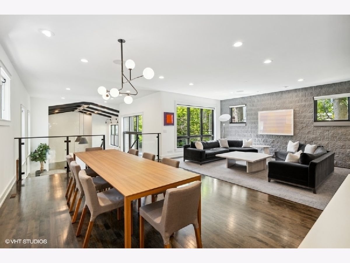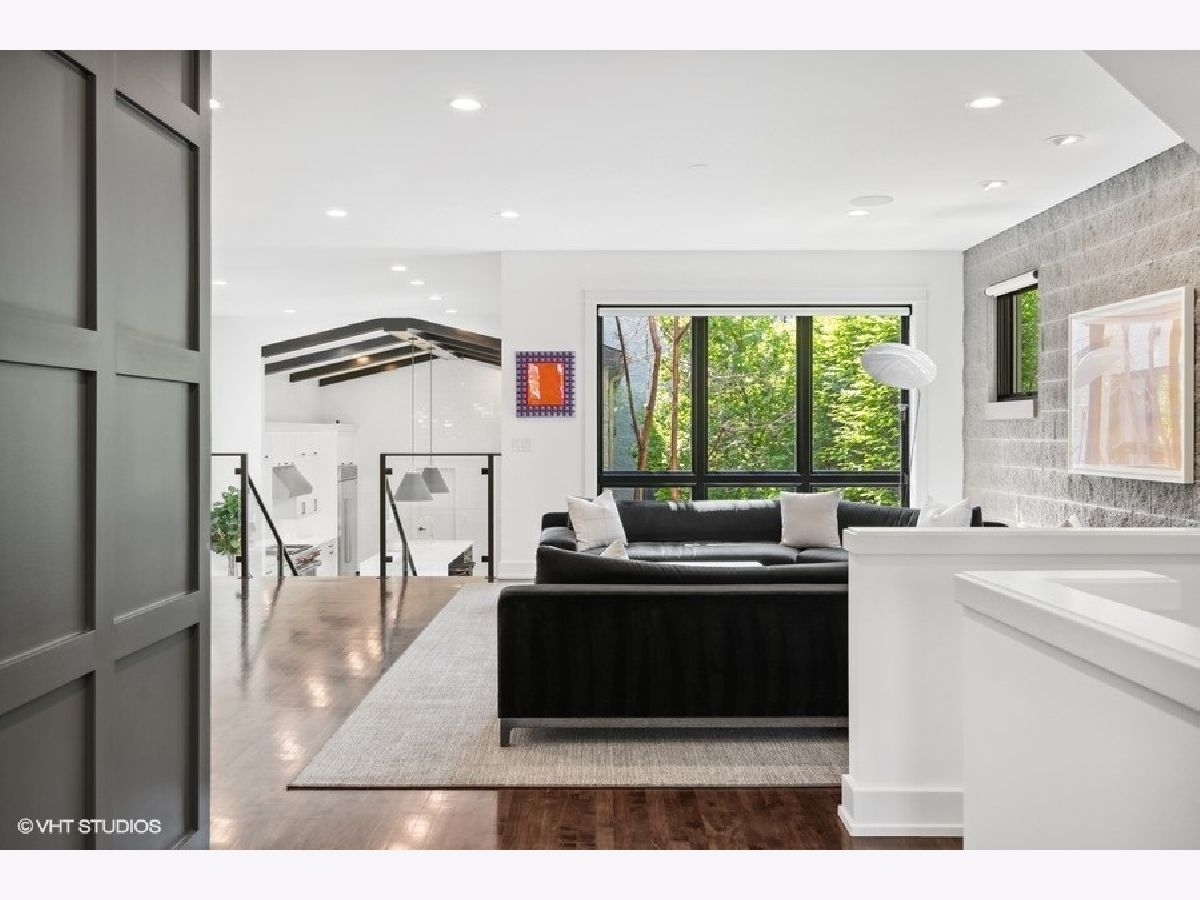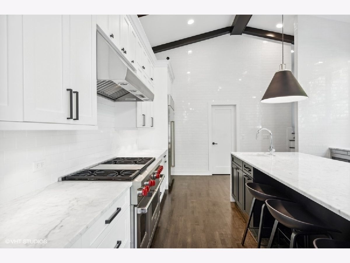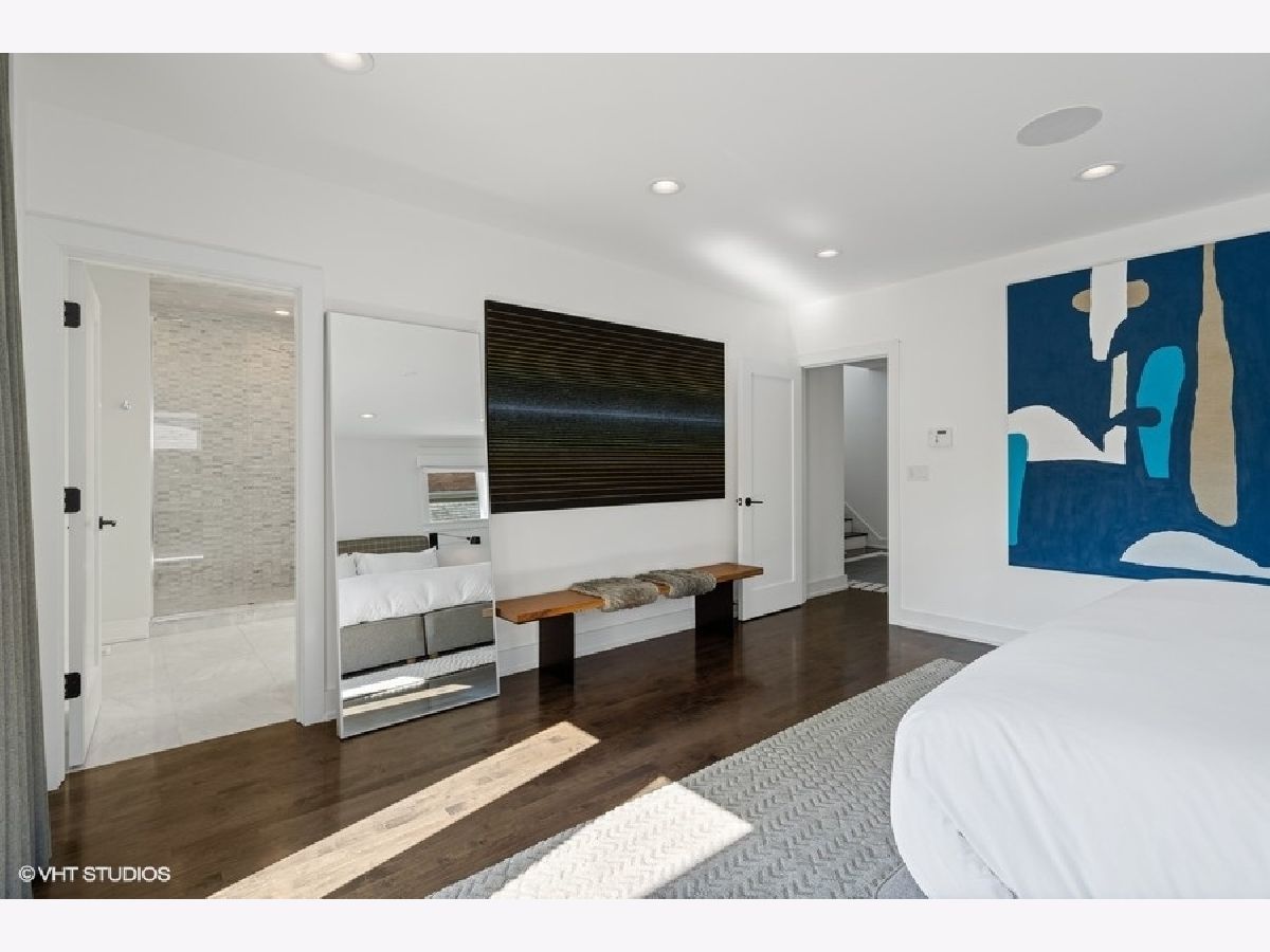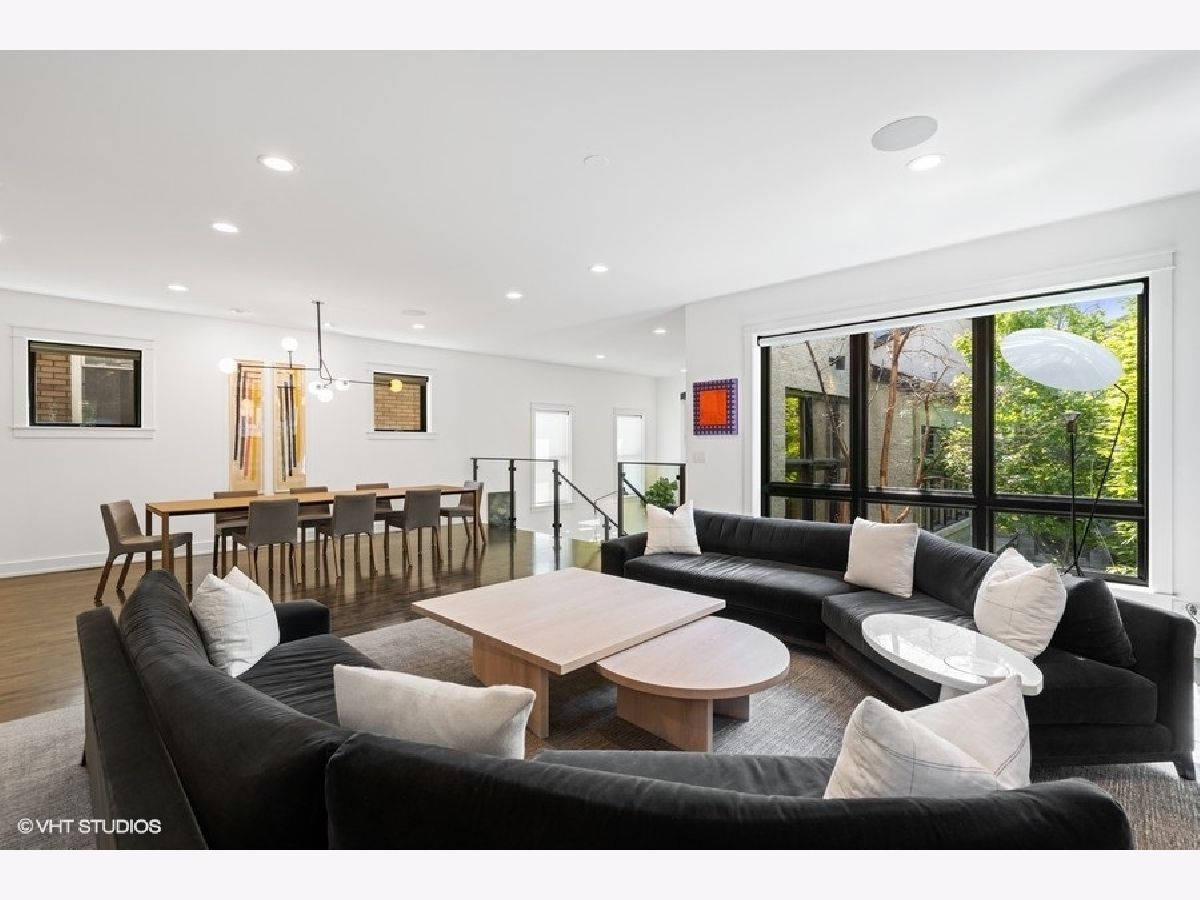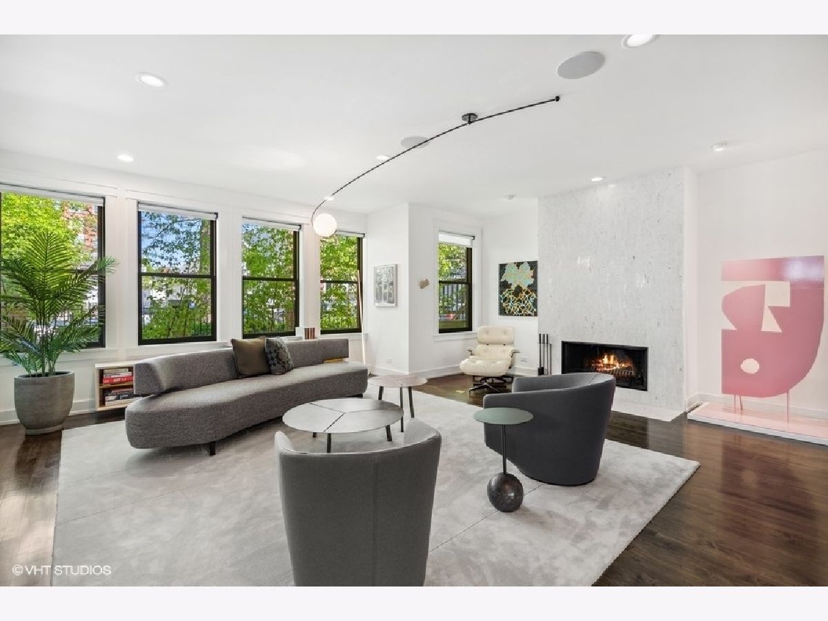 This is Bucktown at its very best, with five bedrooms, three full and one-half baths, and more than 5,000 square feet of contemporary living space on extra-wide lot. Meticulously thought-out and fully remodeled to pristine quality with custom designer extras throughout, this home boasts the ideal configuration for entertaining while perfectly fulfilling the needs of daily life. Impeccably rare, one-of-a-kind attached 3 car heated garage with electric charging station. The kind of kitchen that would make you stop and stare in a showroom centers the home. The sleek and sophisticated space features an expansive 11-foot, eat-in island with double waterfall edge, floor-to-ceiling subway tile, marble countertops, and top-tier appliances including a 48-inch Wolf range, Sub-Zero refrigerator, and dual Miele dishwashers. The 13-foot ceilings are dressed with rich beams, a bank of windows over the farm sink brings in tons of natural light, and an immense walk-in pantry and built-in buffet provide abundant storage. Adjacent is an informal eating area that looks out and provides immediate access to the landscaped designer yard, where an outdoor kitchen and fireplace await. Open to the kitchen is the sunny, formal living room with floor-to-ceiling fireplace and urban loft-style family room and dining room. On the bedroom level, the primary suite's private terrace and luxurious marble bath with dual sinks, separate vanity area, freestanding soaking tub, and oversized walk-in shower are matched only by the incredible, massive walk-in closet. Two additional bedrooms, a full bath, and the second of two laundry rooms round out this floor. Ascend to the penthouse level to enjoy the open air of the southwest-facing rooftop terrace with a beverage from the wet bar with refrigerator. Or head down to the fully finished lower level with a large recreation/media room and custom 700-bottle wine cellar. Steps from the 606 and Bucktown and Wicker Park's famed restaurants and shopping. What more could you want?!