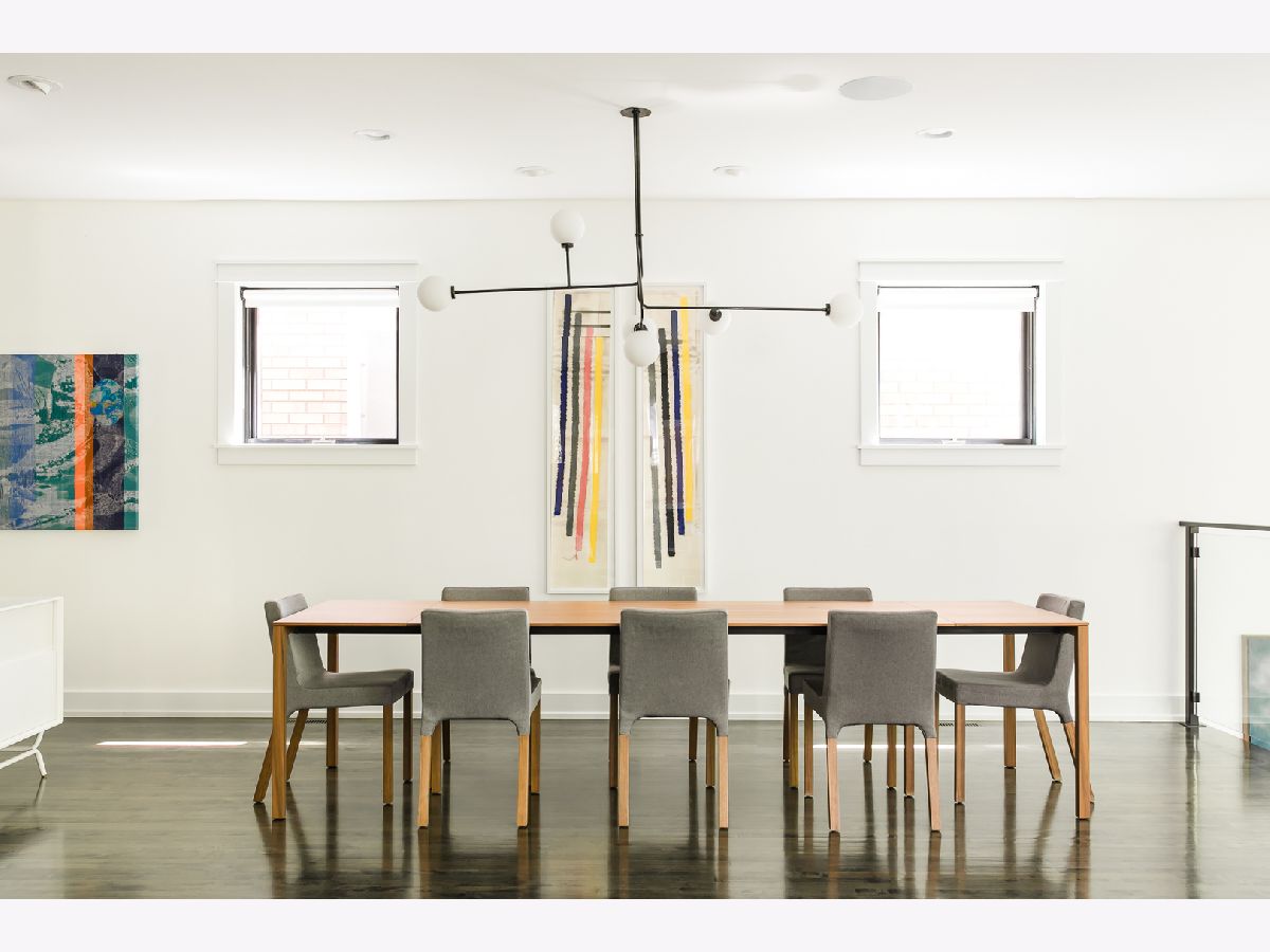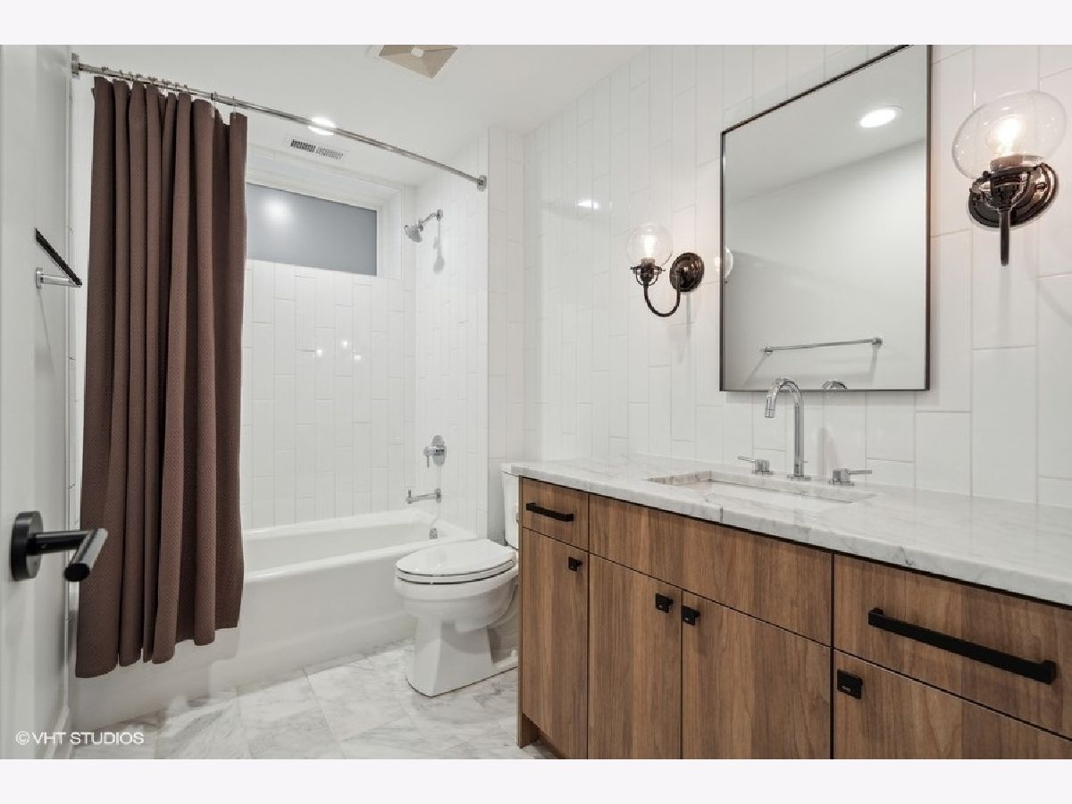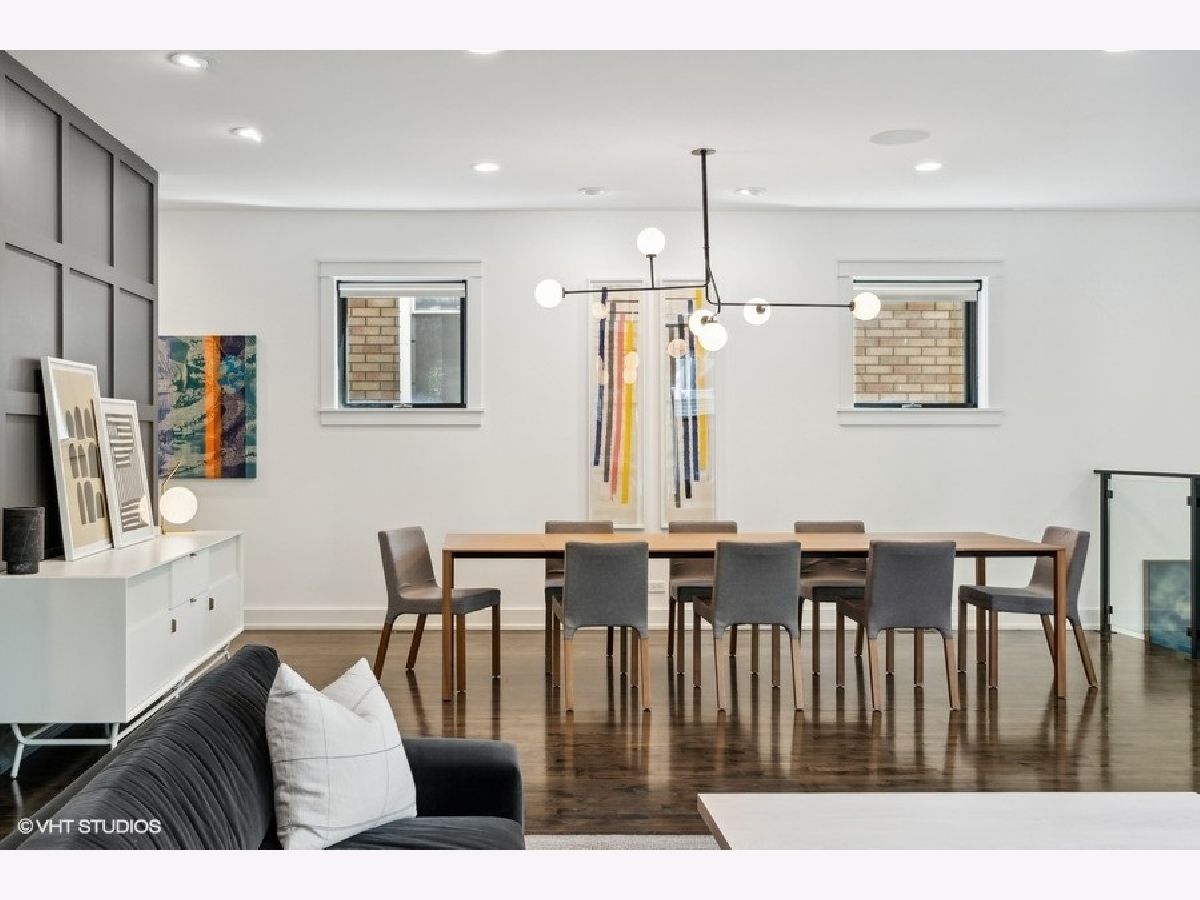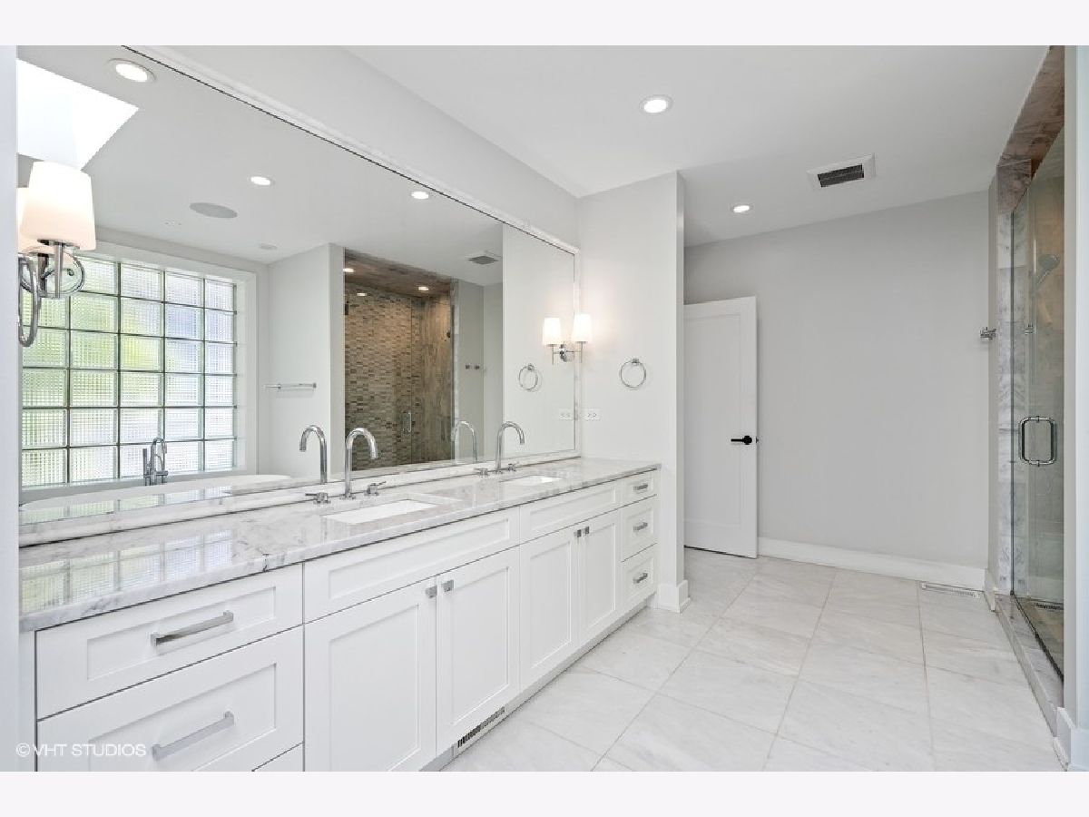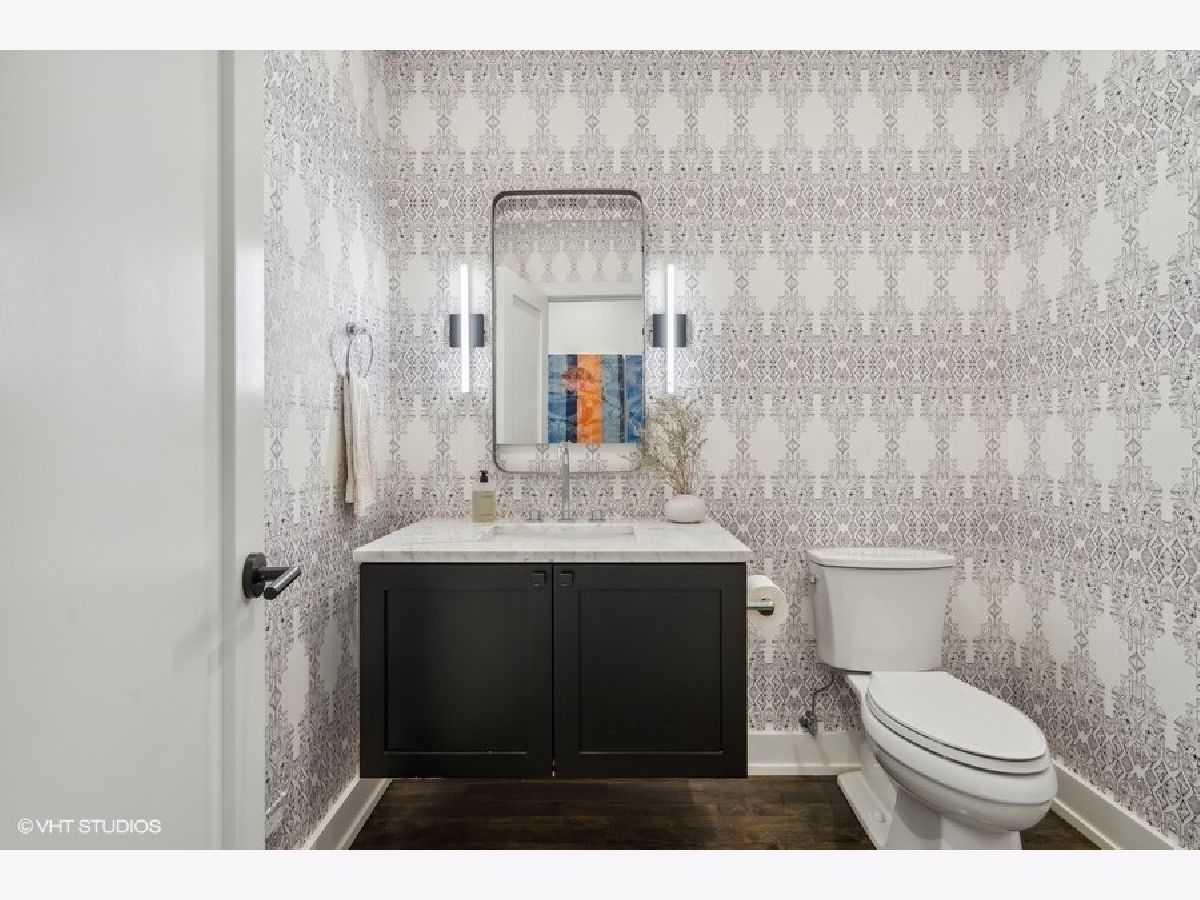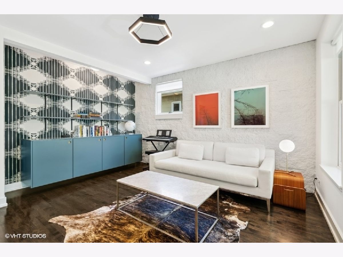 This is Bucktown at its very best, with five bedrooms, three full and one-half baths, and more than 5,000 square feet of contemporary living space on extra-wide lot. Meticulously thought-out and fully remodeled to pristine quality with custom designer extras throughout, this home boasts the ideal configuration for entertaining while perfectly fulfilling the needs of daily life. Impeccably rare, one-of-a-kind attached 3 car heated garage with electric charging station. The kind of kitchen that would make you stop and stare in a showroom centers the home. The sleek and sophisticated space features an expansive 11-foot, eat-in island with double waterfall edge, floor-to-ceiling subway tile, marble countertops, and top-tier appliances including a 48-inch Wolf range, Sub-Zero refrigerator, and dual Miele dishwashers. The 13-foot ceilings are dressed with rich beams, a bank of windows over the farm sink brings in tons of natural light, and an immense walk-in pantry and built-in buffet provide abundant storage. Adjacent is an informal eating area that looks out and provides immediate access to the landscaped designer yard, where an outdoor kitchen and fireplace await. Open to the kitchen is the sunny, formal living room with floor-to-ceiling fireplace and urban loft-style family room and dining room. On the bedroom level, the primary suite's private terrace and luxurious marble bath with dual sinks, separate vanity area, freestanding soaking tub, and oversized walk-in shower are matched only by the incredible, massive walk-in closet. Two additional bedrooms, a full bath, and the second of two laundry rooms round out this floor. Ascend to the penthouse level to enjoy the open air of the southwest-facing rooftop terrace with a beverage from the wet bar with refrigerator. Or head down to the fully finished lower level with a large recreation/media room and custom 700-bottle wine cellar. Steps from the 606 and Bucktown and Wicker Park's famed restaurants and shopping. What more could you want?!