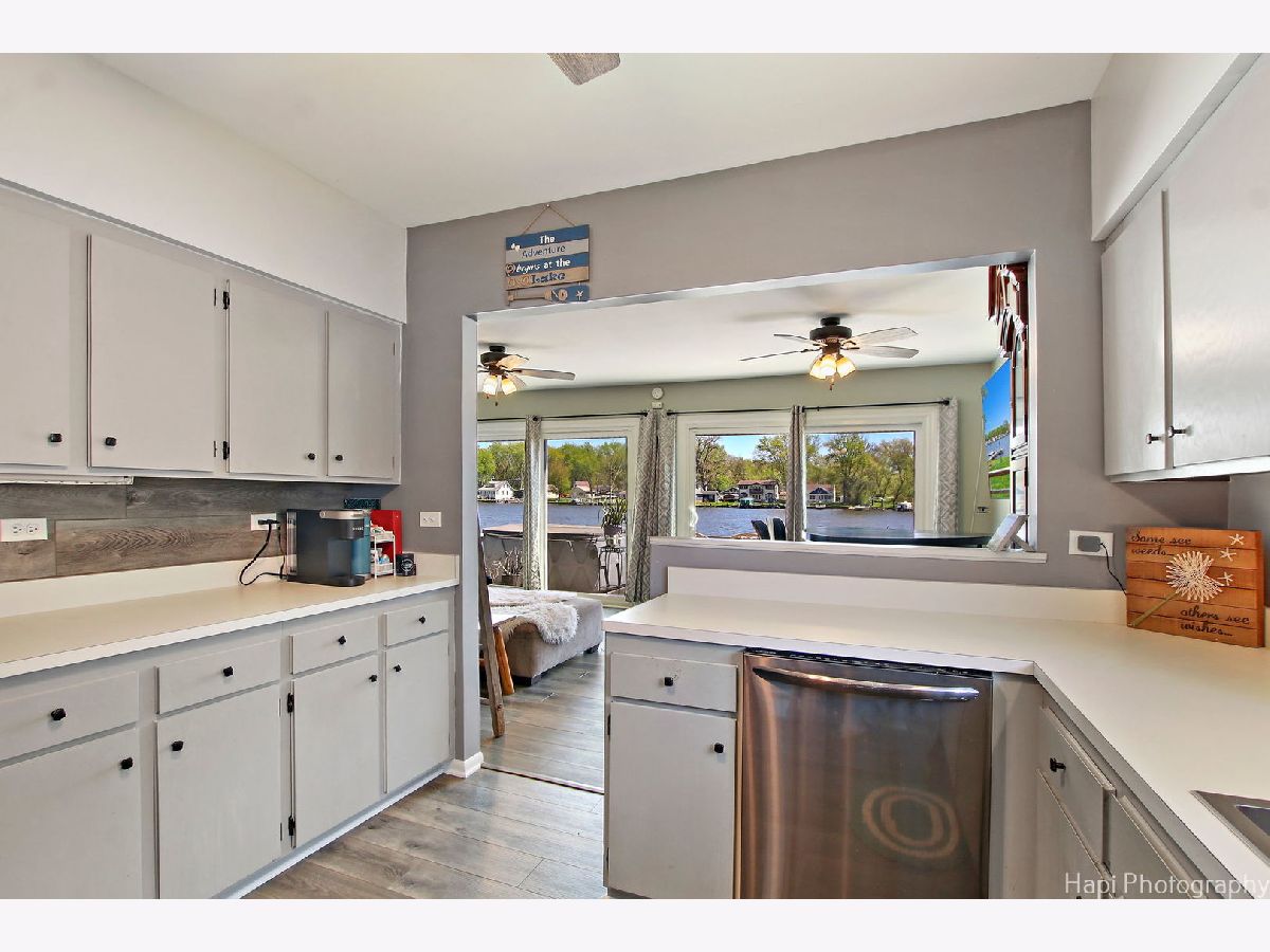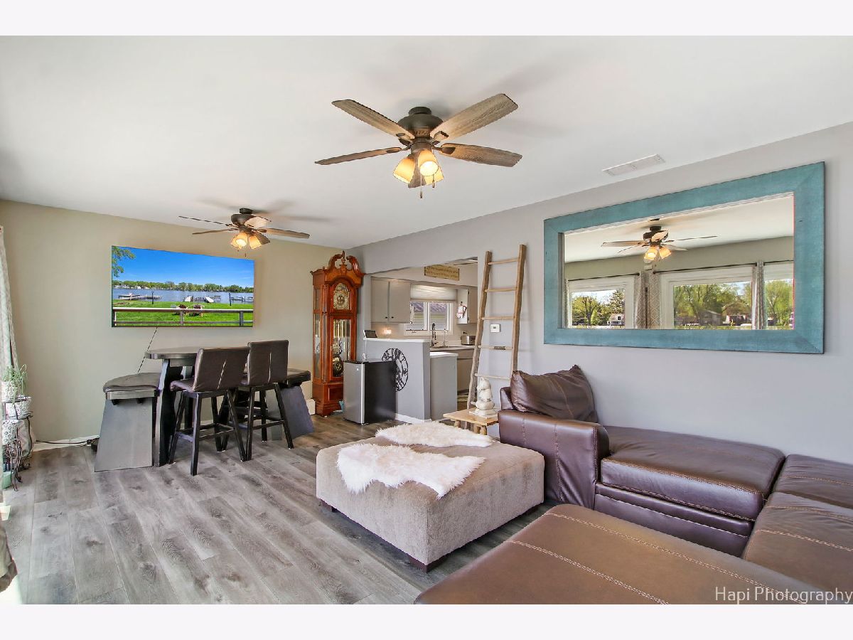 SIT BACK, RELAX AND ENJOY THE RIVER VIEWS AND SUNRISES REFLECTING ON THE WATER FROM YOUR 28X10 DECK AT THIS SOLID TWO BEDROOM 1-1/2 BATH FOX RIVER RIVERFRONT RANCH. FROM THE DECK STEP THROUGH TWO SLIDING GLASS DOORS INTO THE LARGE LIVING AND DINING ROOMS. BEAUTIFUL RIVER VIEWS FROM THE LIVING ROOM, DINING ROOM AND SPACIOUS KITCHEN WITH PLENTY OF CABINETS, COUNTER SPACE AND APPLIANCES. NICE SIZE BEDROOMS WITH CLOSETS. MANY RECENT UPDATES INCLUDE REMODELED MAIN BATHROOM, WOOD LAMINATE FLOORS THROUGHOUT, FURNACE, CENTRAL AIR UNIT, VINYL SIDING, ROOF, WELL AND UPDATED APPLIANCES. TWO PIERS, ONE IS "L" SHAPED WITH BENCH, STEEL SEAWALL AND 2-1/2 CAR GARAGE ON AN EXTRA DEEP LOT WITH TWO PINS. THIS HOME WAS RAISED TO INSTALL THE NEW POURED CONCRETE FOUNDATION IN 1976. GREAT FOX RIVER FRONT GET-AWAY TO ENJOY ALL THE RIVER AND CHAIN O'LAKES HAS TO OFFER.