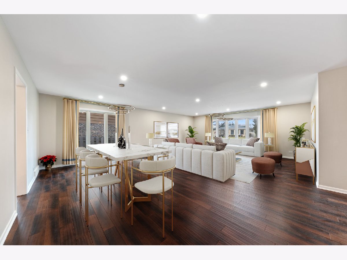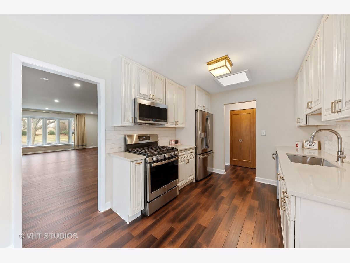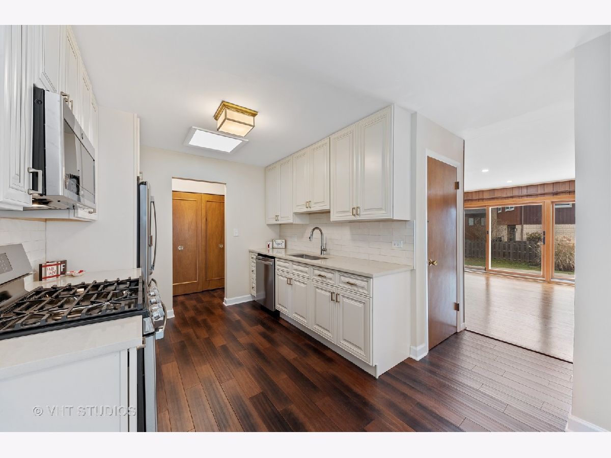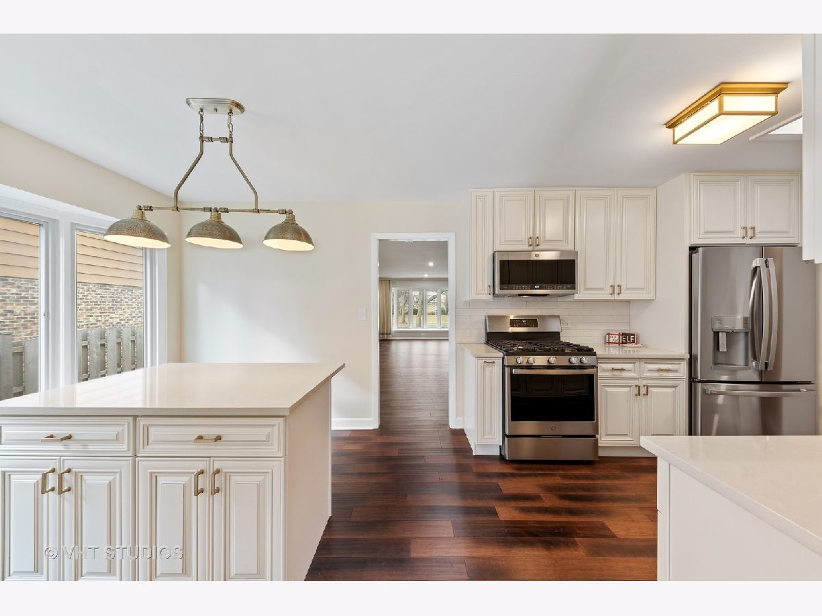 Beyond Breathtaking from the moment you drive up! Impeccable white brick against the black door accents and Hinkley outdoor lighting and light fixtures. Inside you are welcomed to the Turn key home with brand new Bamboo flooring traveling throughout the foyer, grand living room with beautiful bay window, open aired dining room and the contemporarily designed kitchen. Kitchen has been created with 42" custom cabinetry, stunning caramel quartz countertops, SS appliance with warranty, single basin large rectangular sink, eat-in island with extra storage and natural light from your 2nd bay window! Cozy and welcoming family room with 3 bay sliding glass doors (2021), one of a kind cedar and brick focal fireplace, re-finished original rustic oak and walnut flooring and recessed dimmer lighting. Charming master bedroom with master bathroom that is just to die for with crystal drop chandelier, separate shower and double bowl vanity. Enjoy the 3 other bedrooms with refinished oak flooring and restored mid-century doors. Hall Bathroom is an oasis with skylight, gold accents, super storage, and bright lighting. Mature perennial landscaping that perfectly shapes the private backyard with concrete and white stone patio shaped in a shell for that vacation feel, it has great grassy space for family and friends to gather as well. Be amazed at the space in the attached 2 car garage and glorious newly epoxied flooring, freshly painted and trimmed and nicely placed extra frig! Arlington heights has a downtown that is an entertainment destination that includes a unique blend of stores, movie theater & a live performance theater, full menu of restaurant options, nationally recognized library, top rated schools and Olympic park. Don't let this one slip by.
