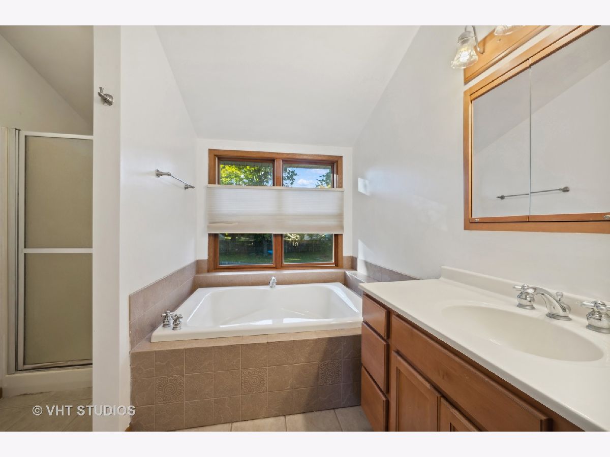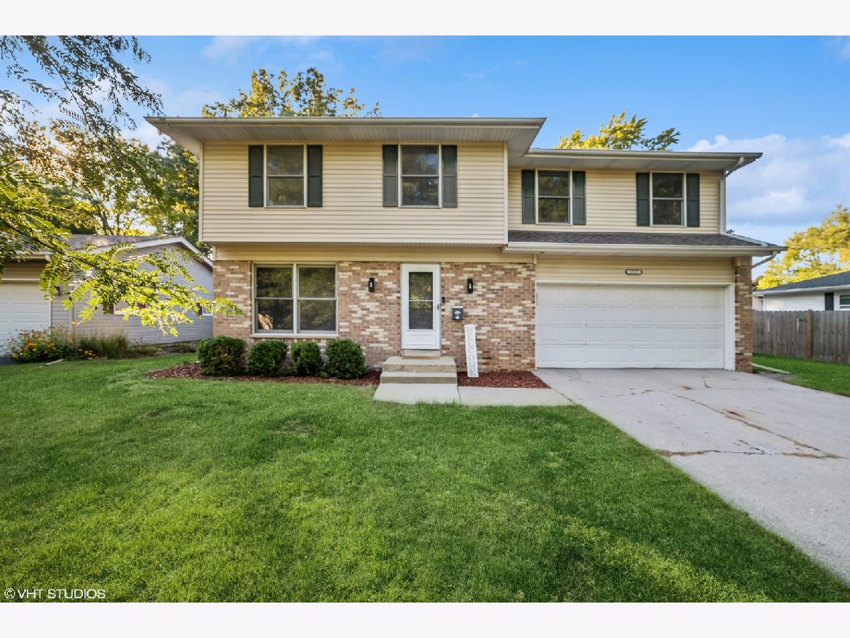 This elegant two-story home features a ceramic entryway leading to a spacious living room with hardwood flooring, a family room adorned with a high-efficiency fireplace, a sunroom with vaulted ceilings, an eat-in kitchen boasting hardwood floors and a charming bay window, and a convenient half bath on the first floor. Upstairs, you'll find that it is freshly painted, a generously sized master bedroom complete with an ensuite bath featuring vaulted ceilings, along with three additional bedrooms and a hall bath. The basement offers a versatile space, including a recreational room, an office, and a laundry room. Completing this property is an attached two-car insulated garage and a fenced backyard featuring a lovely paver patio.
