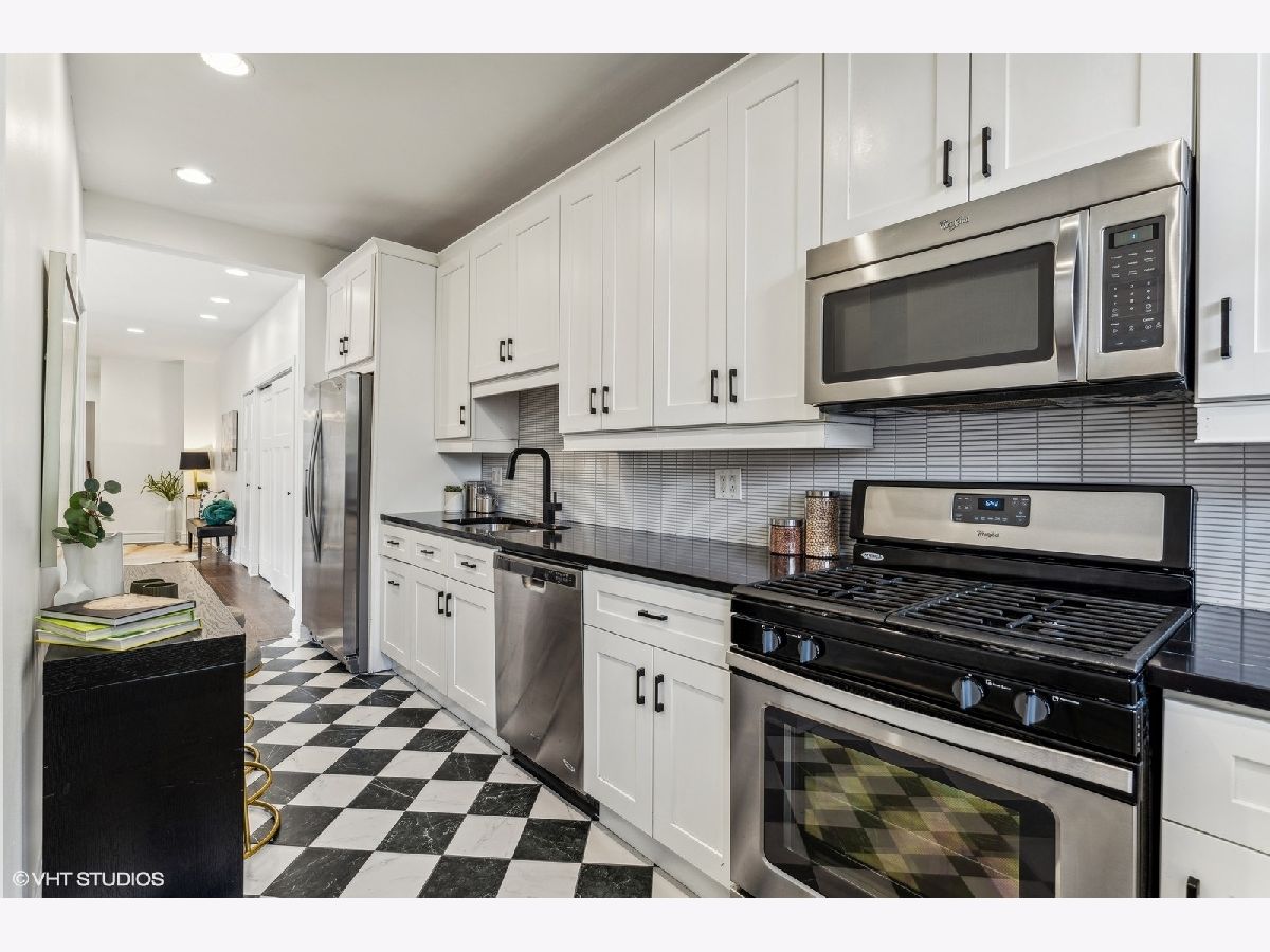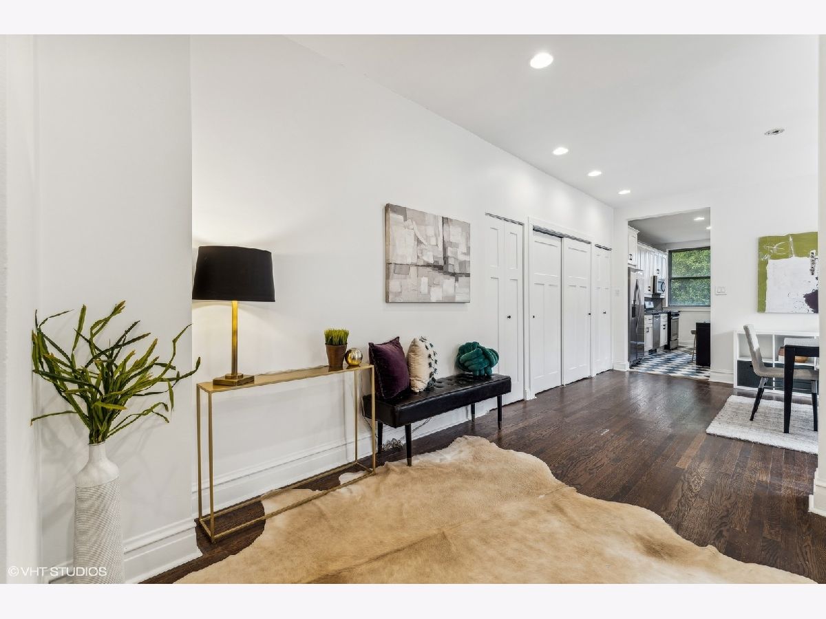Welcome home to your vintage 3BD/2BA top floor condo in the heart of one of Chicago's most iconic neighborhoods! The unit has hardwood throughout, with a spacious living room and plenty of natural light. Front bedrooms share a main bath that was just updated with new tile, vanity, mirror with storage, and lighting. Rear bedroom or office (off of kitchen) has an updated, ensuite bathroom. Separate dining room has large windows and plenty of storage. Kitchen was just updated with new countertops, backsplash, and porcelain floor tile. Stainless steel appliances include: a built-in microwave, gas range, side by side refrigerator, dishwasher and full-size washer/dryer. Overlook the fenced in, shared yard from your private 85 sq ft rear porch. Includes huge storage unit in basement. Assessments include radiant heat, hot water and gas. Pet friendly building with plenty of vintage charm. The building has been well taken care of with recent tuckpointing, newer sewer system, impeccably maintained roof and boilers. Walking distance to public transportation, Metra, Trader Joe's, the University of Chicago, restaurants, and shopping. Enjoy the lakefront and miles of bike paths as you are 1 block from Promontory Point, 2 blocks from the Museum of Science and Industry, and 57th St. beach. Neighborhood schools (Bret Harte and Kenwood Academy) rated Level 1! Agent-owned.