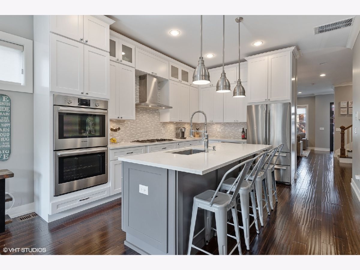 West Town Gem. 3000sf+ single family home with a 2 car garage walking distance from the coveted 606 trail and Humboldt Park. This 5 bedroom, 3.5 bath three level home is where design meets function. Brick facade with limestone lead into an elegant first floor replete with hardwood, trim details and tall ceilings. The show-stopping kitchen features custom cabinetry, quartz counters, and Bosch appliances. Second floor features 3 bedrooms, hallway bath, laundry with washer & dryer, large closets, luxurious master bath with marble tile throughout. Basement level features two bedrooms, a full bath, laundry hook-up and a large family room with a wet bar. The plentiful closets are customized with organizers and all window treatments are Hunter Douglas.