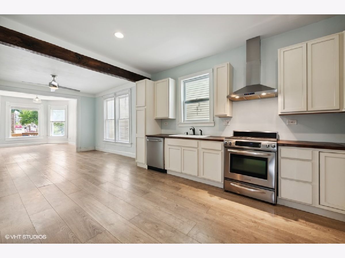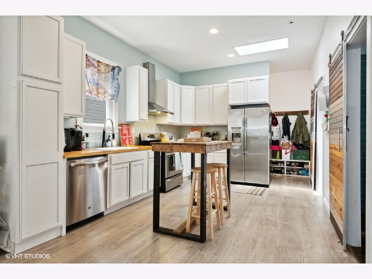 Prime Humboldt Park/Logan Square location steps away from the entrance of the 606 Bloomingdale Trail! Oversized 2 flat partially rehabbed in 2015 with nearly identical units that would both rent for approx $1600 or more/month. First floor unit with open floor plan as you enter the living room with sunlit bay windows, tall ceilings and updated light fixtures throughout units. Kitchens includes stainless appliances with a vented hood, disposal, and ample cabinets. Custom handmade barn doors throughout the units. Large main bedroom with an organized closet and newer light fixture. Large format bathrooms w separate soaking tubs with sprayer, 36 inch vanities, custom made towel bars and enclosed glass standing showers with rain head fixtures and body sprayers. Can lighting throughout units and dining room ceiling fans. Both units include a mud room with custom made coat hooks and bench shoe cubbies. Second unit features a kitchen skylight, and a bonus office/den nook with extra storage space. Front hall with custom made coat rack. Basement is unfinished with shared Whirlpool laundry machines. 2015 new plumbing and electric, upgraded from boiler to forced air, new water tank and central air in both units. New roof refinished in 2017. Exterior parking pad includes 2 spaces, new back fence and gate, fully fenced in yard. A lot of work has been put into the building but rear porch needs extensive repairs /replacement and is reflected in listing price and perfect value add opportunity. Building will be delivered vacant and is sold strictly "As-Is," Walking distance to Kimball Arts Center with Dayglow Coffee and Orkenoy Brewery and Restaurant, YMCA and 606 and nearby Wyler Road, Scofflaw and Weegee's Lounge.