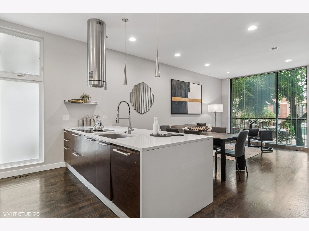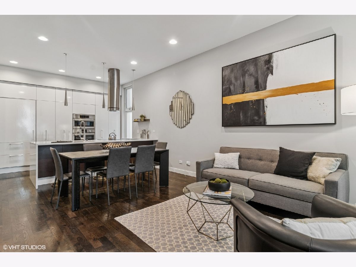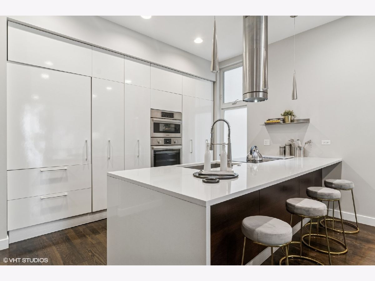 Stunning 3 bed, 2.1 bath duplex in the heart of Wicker Park. Bathed in natural light from its southern exposure, the open-concept layout features a sleek kitchen with quartz waterfall countertops, Sub-Zero integrated fridge, and Bosch appliances. The spacious primary suite includes a walk-in closet with custom built-ins and a spa-like bath with dual vanities, a separate shower, and an air-jetted soaking tub. The lower level offers radiant heated floors, a large family room with a wet bar, and two generously sized bedrooms. Additional highlights include built-in speakers, electric blinds, and floor-to-ceiling windows. Enjoy two brand new outdoor spaces w trex decking: a covered deck for grilling and a massive garage rooftop deck. 1 Garage space included. All of this tucked on a quiet street just steps from Wicker Park's top restaurants, shops, and the Division Blue Line stop.