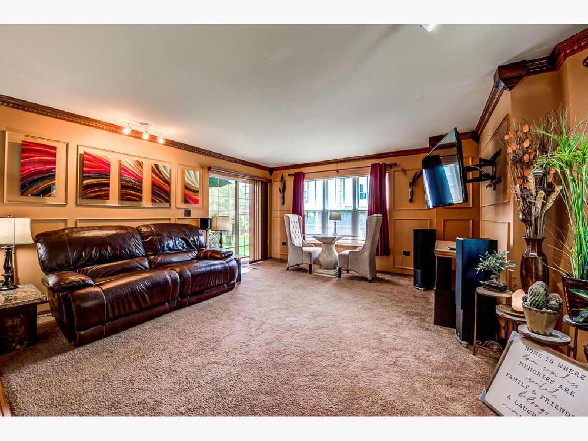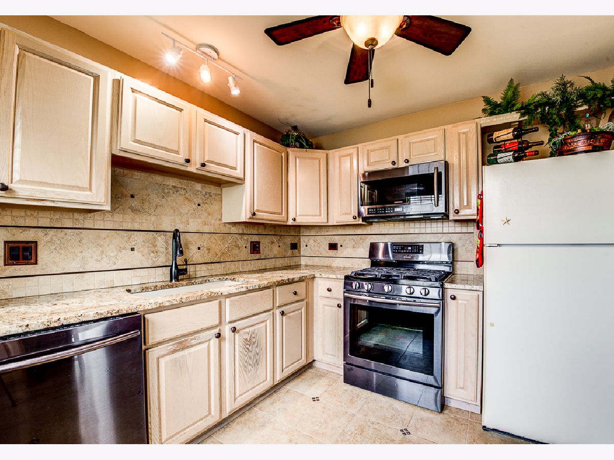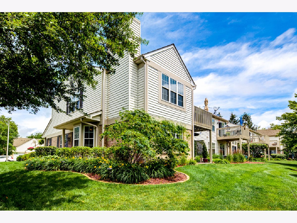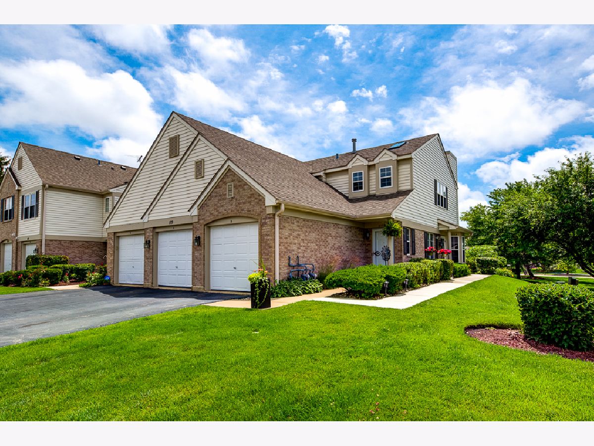 Over $50,000 in remodeling/upgrades. First floor condo in modern rustic tones, with "oil rubbed bronze" water and light fixtures. Private entrance and patio view of courtyard in highly desirable Briar Pointe subdivision on quiet street. No stairs, 2-Bedrooms, 2-Baths, laundry room, 1-car garage, and two cars fit back-to-back in driveway. Guest parking available, low monthly HOA and 100% "maintenance free" outdoors - including snow removal. KITCHEN: Porcelain tile floor and designer backsplash on all four walls with custom tile archway entrance. Extra counter space. Premium granite countertops and windowsill. Black stainless-steel refrigerator, dishwasher, gas stove, and microwave. Deep composite granite single sink with pullout faucet. Ceiling fan with light, stained baseboards, new window blinds, and custom wall shelf above refrigerator. LIVING ROOM: Stained crown molding around the perimeter of the room. All four walls feature 11-total sets of upper/lower box shaped molding design for a striking decorative look. Bay-style windows with premium granite windowsills, stained wood drape-rods, and custom wall-shelf for TV area. Carpeted patio with ivy-laced privacy trellis. LAUNDRY ROOM: 2-year old wash/drayer set. BATHROOMS: Porcelain tile (floor/baseboards, shower walls/ceiling, & sink sidewall). Premium Granite countertops with copper sinks (oil rubbed bronze style), and framed mirrors. New vanity sink lighting, matching set of; premium faucets, shower head, towel racks, robe holder, and toilet paper holder in oil rubbed bronze. Owner's suite w/en suite: Two dream closets (#1walk-in closet, #2 wall-length closet) has 2-tiers of racks w/shelving. Laminate hardwood floor in both bedrooms and hallway. THROUGHOUT: Upgraded brown outlets, premium dimmer/light switches and wall plates. Floor vents, cabinet knobs for kitchen/bathrooms & owner's suite wall-closet in oil rubbed bronze. New water heater in laundry room and replaced AC in 2014. Conveniently located near shopping, restaurants, average 13-minute walk to Metra train station, 1-mile to expressway, and about 1-block to paved walking path, playground, field, tennis/basketball courts, and pavilion with picnic tables.