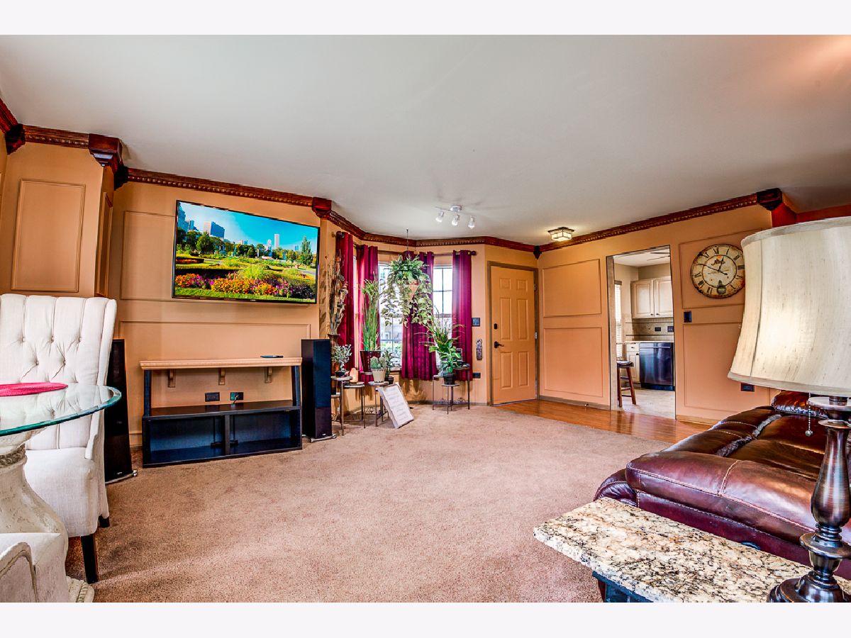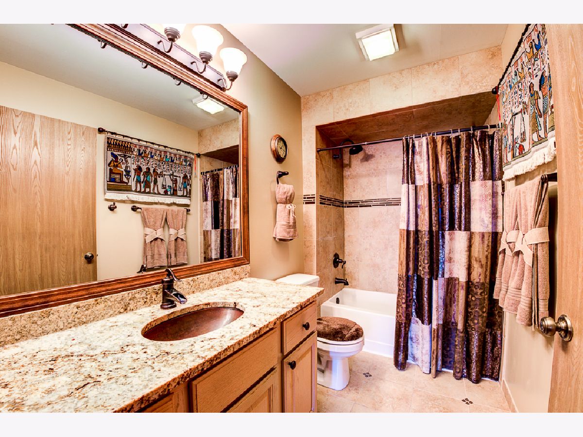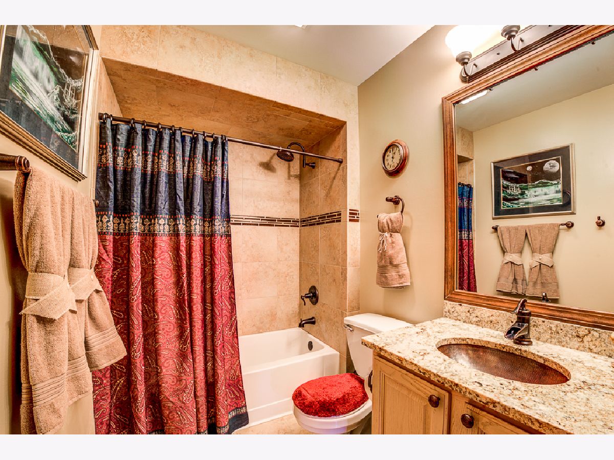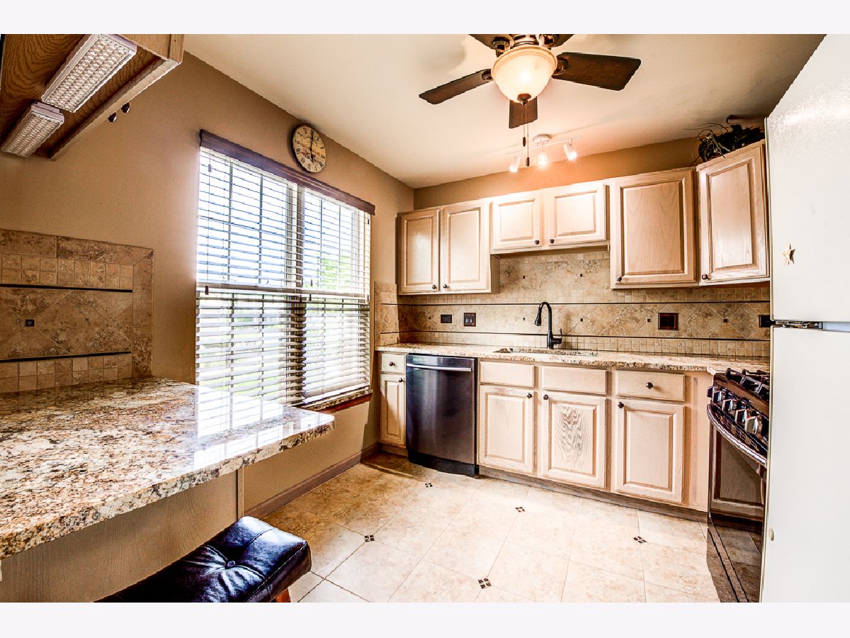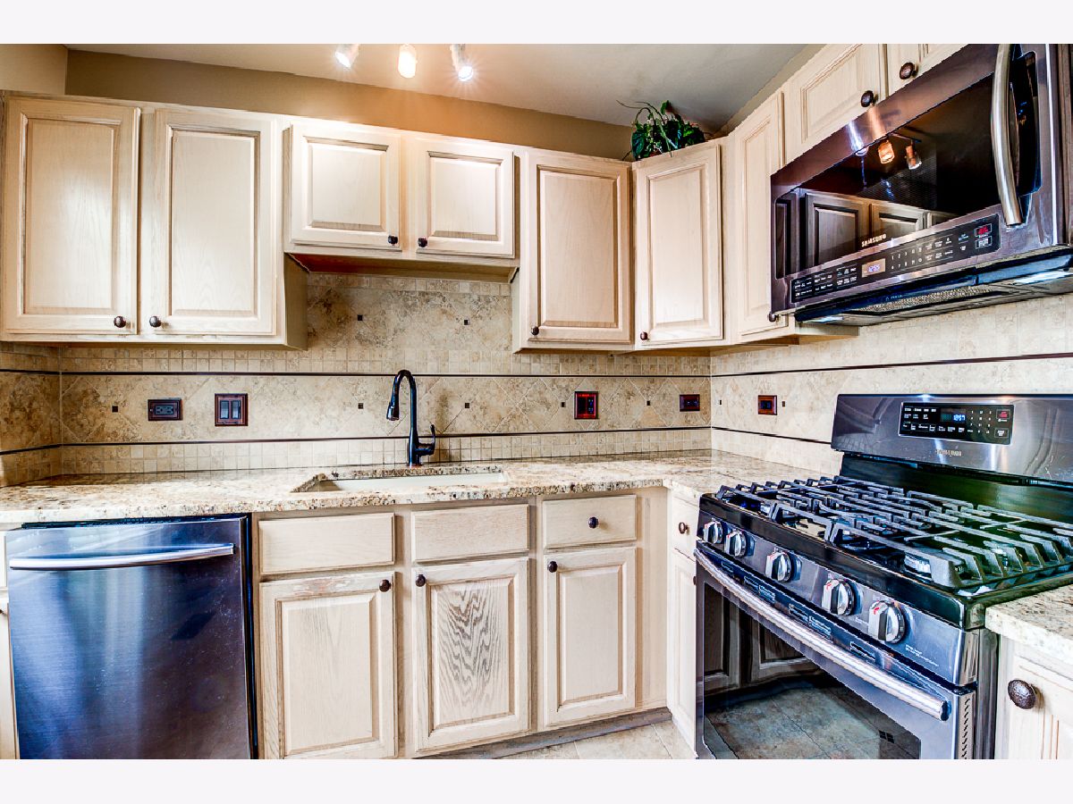 Over $50,000 in remodeling/upgrades. First floor condo in modern rustic tones, with "oil rubbed bronze" water and light fixtures. Private entrance and patio view of courtyard in highly desirable Briar Pointe subdivision on quiet street. No stairs, 2-Bedrooms, 2-Baths, laundry room, 1-car garage, and two cars fit back-to-back in driveway. Guest parking available, low monthly HOA and 100% "maintenance free" outdoors - including snow removal. KITCHEN: Porcelain tile floor and designer backsplash on all four walls with custom tile archway entrance. Extra counter space. Premium granite countertops and windowsill. Black stainless-steel refrigerator, dishwasher, gas stove, and microwave. Deep composite granite single sink with pullout faucet. Ceiling fan with light, stained baseboards, new window blinds, and custom wall shelf above refrigerator. LIVING ROOM: Stained crown molding around the perimeter of the room. All four walls feature 11-total sets of upper/lower box shaped molding design for a striking decorative look. Bay-style windows with premium granite windowsills, stained wood drape-rods, and custom wall-shelf for TV area. Carpeted patio with ivy-laced privacy trellis. LAUNDRY ROOM: 2-year old wash/drayer set. BATHROOMS: Porcelain tile (floor/baseboards, shower walls/ceiling, & sink sidewall). Premium Granite countertops with copper sinks (oil rubbed bronze style), and framed mirrors. New vanity sink lighting, matching set of; premium faucets, shower head, towel racks, robe holder, and toilet paper holder in oil rubbed bronze. Owner's suite w/en suite: Two dream closets (#1walk-in closet, #2 wall-length closet) has 2-tiers of racks w/shelving. Laminate hardwood floor in both bedrooms and hallway. THROUGHOUT: Upgraded brown outlets, premium dimmer/light switches and wall plates. Floor vents, cabinet knobs for kitchen/bathrooms & owner's suite wall-closet in oil rubbed bronze. New water heater in laundry room and replaced AC in 2014. Conveniently located near shopping, restaurants, average 13-minute walk to Metra train station, 1-mile to expressway, and about 1-block to paved walking path, playground, field, tennis/basketball courts, and pavilion with picnic tables.