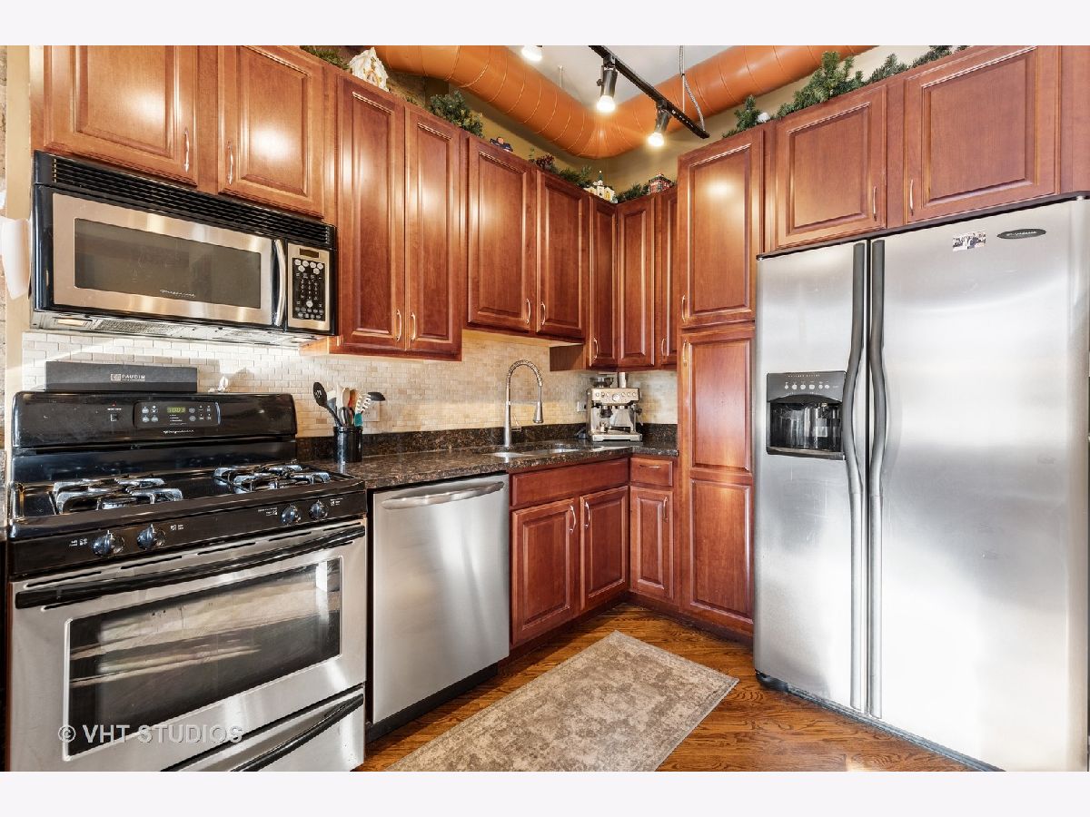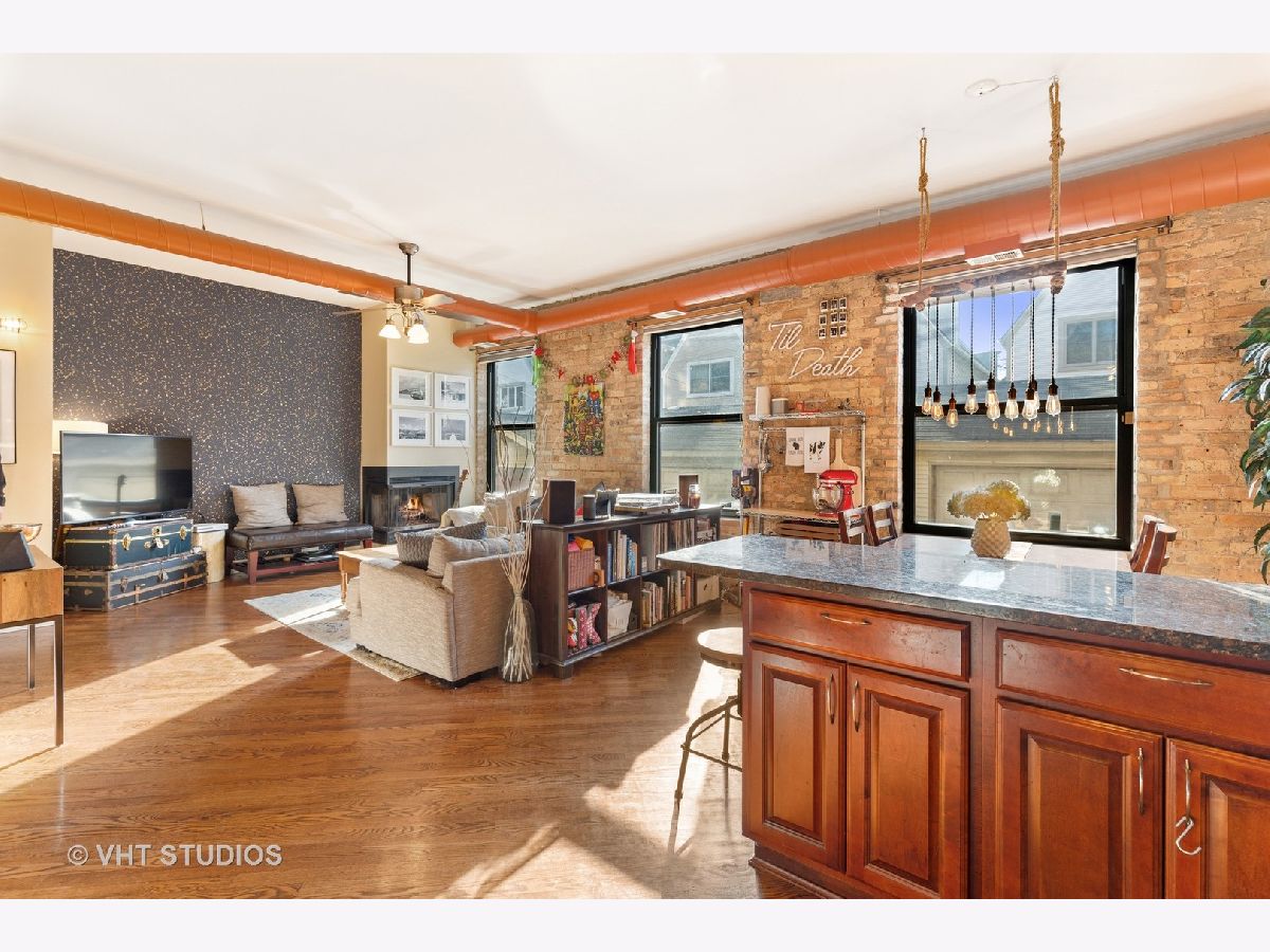 WHAT A LOCATION AND ACROSS FROM BEAUTIFUL WALSH PARK AND THE MAIN ENTRANCE TO THE MUCH SOUGHT AFTER CITY PARK CALLED THE 606 TRAIL! THIS RARELY AVAILABLE TWO STORY TOWNHOME HAS SO MUCH CHARACTER & CHARM YOU WILL BE EXCITED TO SEE IT. WHEN YOU STEP INTO THIS HOME LOTS OF NATURAL LIGHT FLOWS THROUGH THE EXPANSIVE WINDOWS. THE UNIT ALSO HAS BEAUTIFUL HARDWOOD FLOORS, HIGH CEILINGS, EXPOSED BRICK. OPEN KITCHEN WITH CHERRY CABINETS, STAINLESS STEEL APPLIANCES & GRANITE. LARGE LIVING ROOM WITH FIREPLACE, SEPARATE DINING & POWDER ROOM FOR PERFECT ENTERTAINING. THE SECOND FLOOR FEATURES TWO BEDROOMS WITH UPDATED BATH FEATURING DOUBLE SINK & GRANITE. A SEPARATE LAUNDRY ROOM WITH FULL SIZE WASHER AND DRYER MAKES IT EVEN BETTER. TONS OF CLOSETS. NEXT, HEAD UP TO THE WONDERFUL ROOF DECK WITH SKYLINE VIEWS OF CHICAGO!! STORAGE, SECURE DEEDED PARKING THAT IS DIRECTLY IN FRONT OF TOWNHOME. WALK OUT THE DOOR TO METRA AND OTHER PUBLIC TRANSPORTATION. THE BEST OF BUCKTOWN IS WAITING FOR YOU WITH FANTASTIC RESTAURANTS AND SHOPS ALL WITH WALK OUT THE DOOR EASE! PARKING INCLUDED IN PRICE.