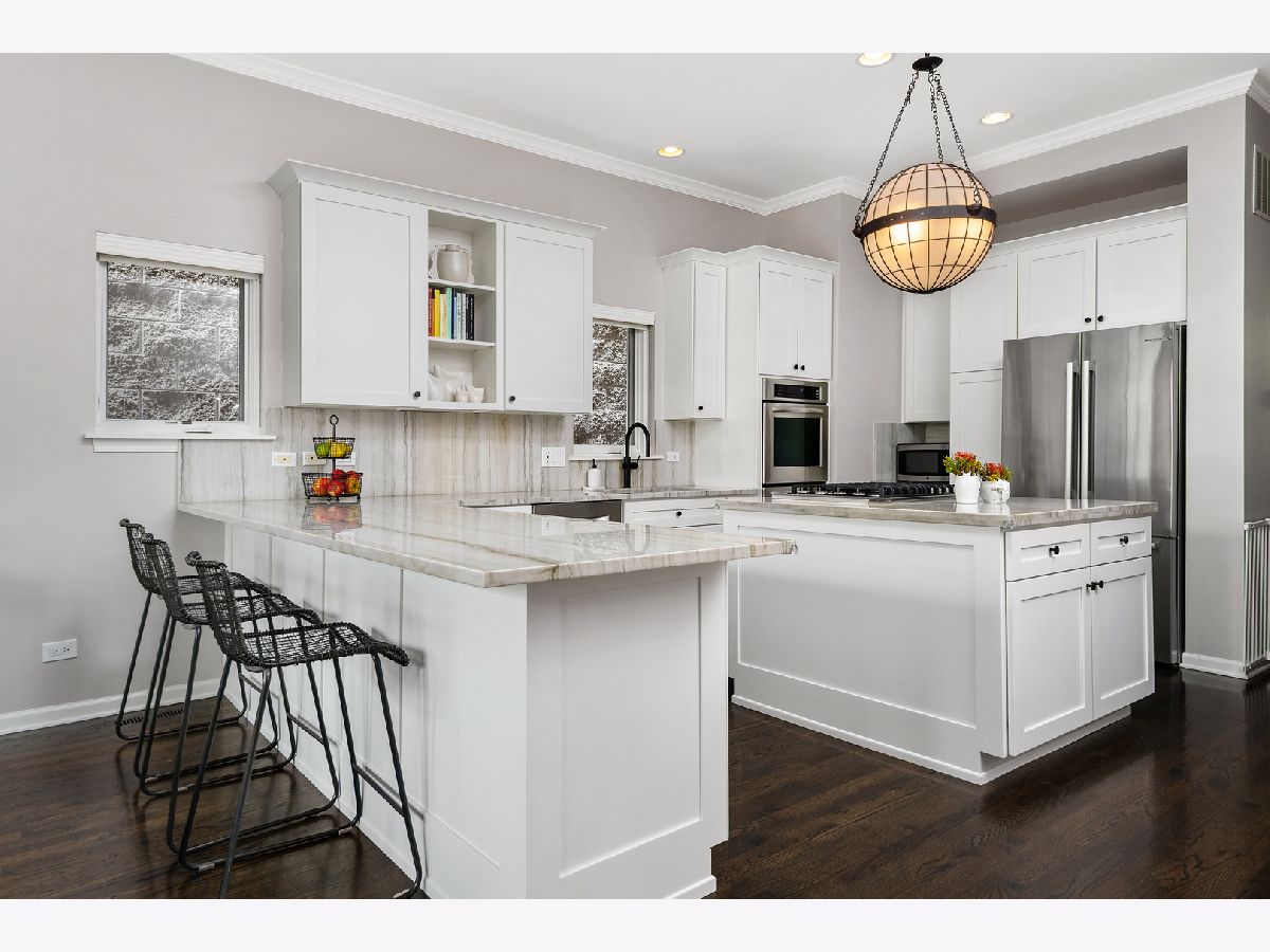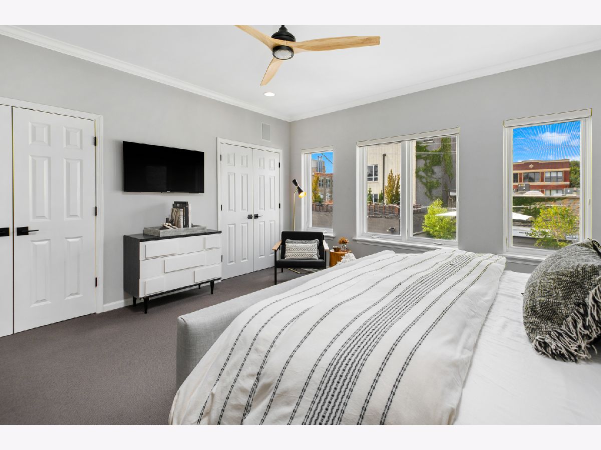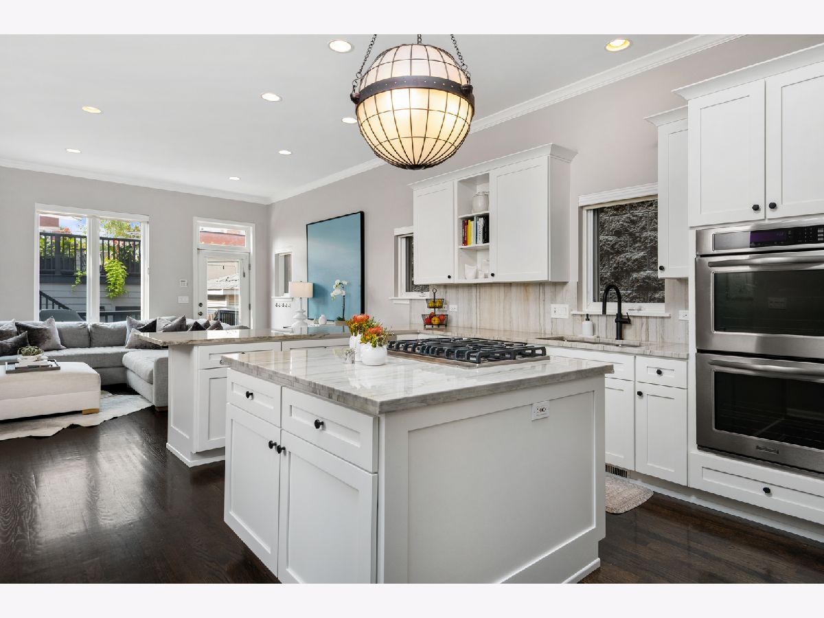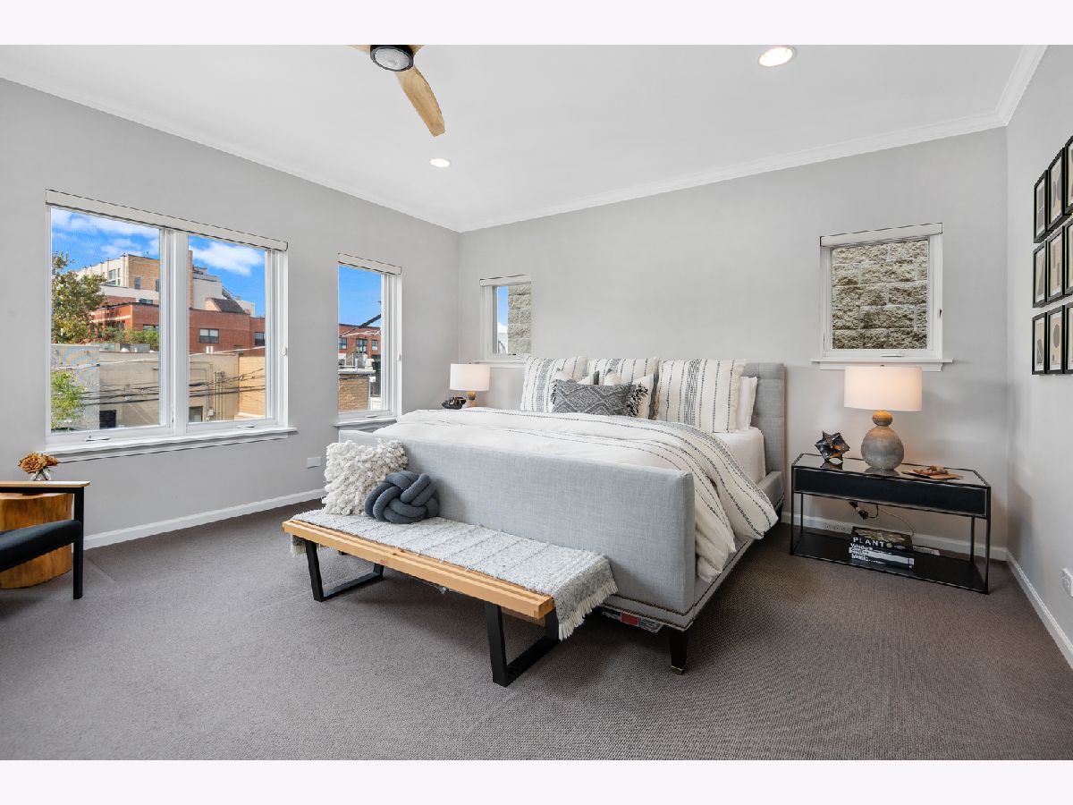 Stunning renovation of this meticulously maintained and highly upgraded home on one of the most sought-after blocks in Bucktown. Main level features high ceilings, 2 gas fireplaces, and ideal layout with formal living/dining room and sunny west facing great room. Stylish eat-in kitchen with brand new commercial grade stainless steel appliances, thick quartzite countertops, and large breakfast bar plus island. Magazine-worthy marble powder room with designer wallpaper sure to impress your guests. 2nd level features generously sized primary suite with walk-in closet and gorgeous new bathroom designed to perfection with Restoration Hardware and Kohler fixtures plus two additional bedrooms and hall bathroom. Lower level features a spacious family room with brand new custom wet bar, huge guest bedroom which doubles as office or exercise room, full bath, laundry room, and large additional storage room. Impressive outdoor space boasts professionally landscaped front yard with electronic gate, Trex deck off the family room, sizeable backyard with synthetic turf, and fabulous garage roof deck with Trex decking above the 2 car garage. Other recent upgrades include a new roof in 2021 and tuckpointing/sealing and a new furnace in 2019. Prime A+ location near Churchill Park, 606 Trail, Damen blue line, and all of the best shopping and dining in Bucktown.